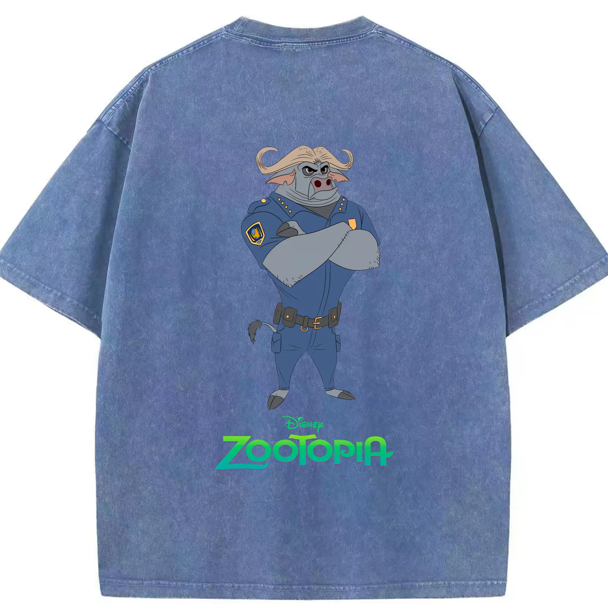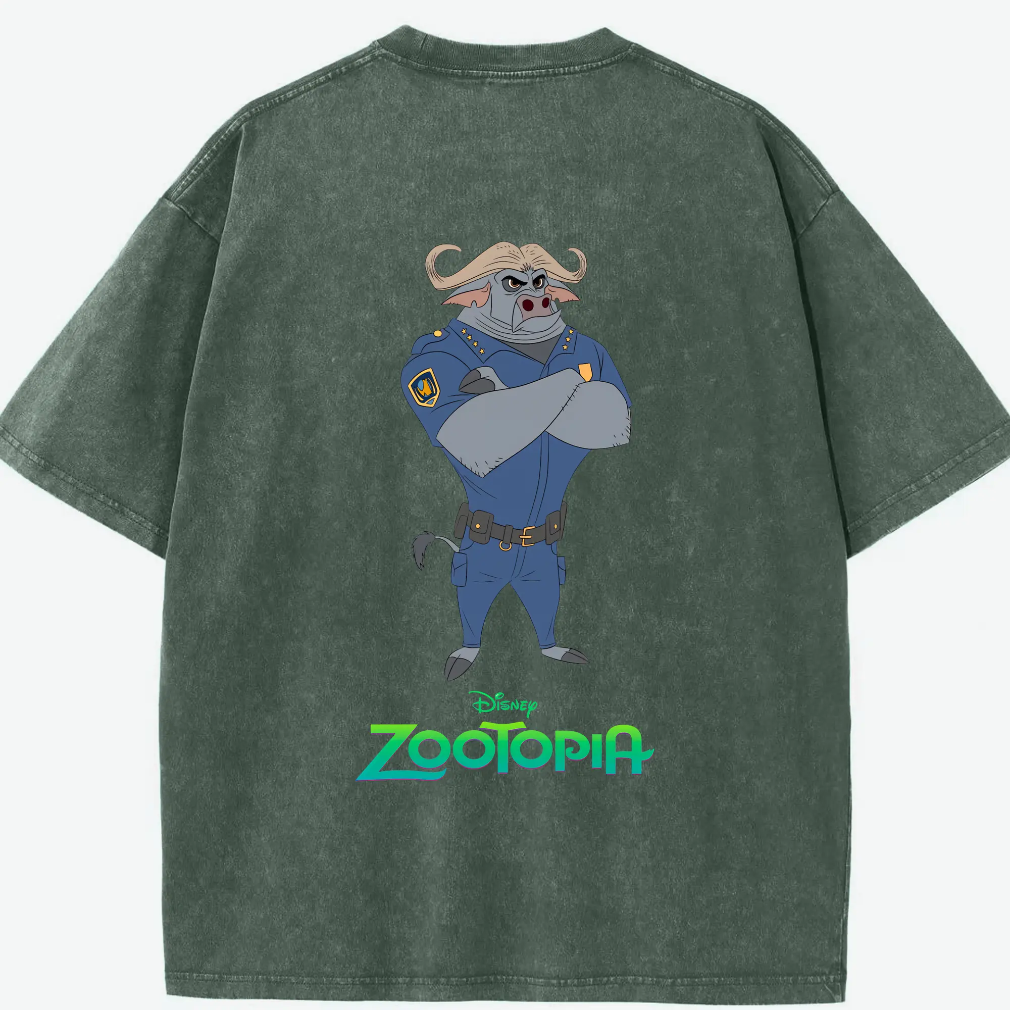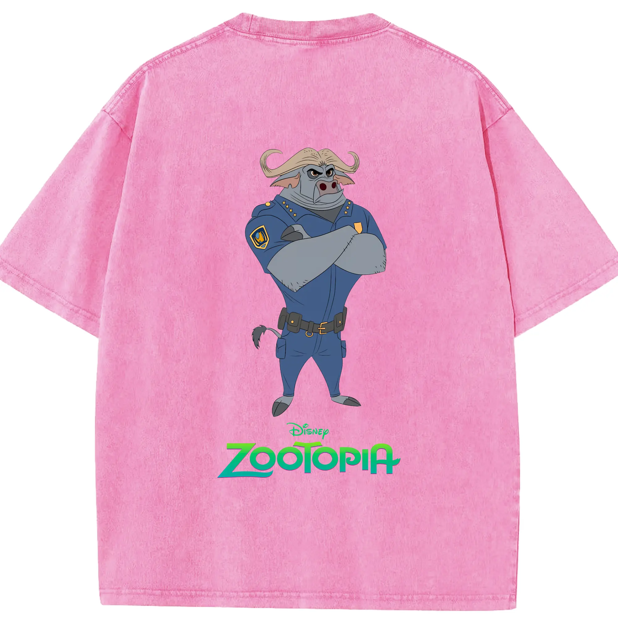 ズートピア グッズ,ボゴ署長 - 綿100% ヴィンテージ風 半袖Tシャツ ・ フロントプリント ・ 柔らか肌触り ・ 通気性 快適 ・ スポーツ カジュアル 外出用