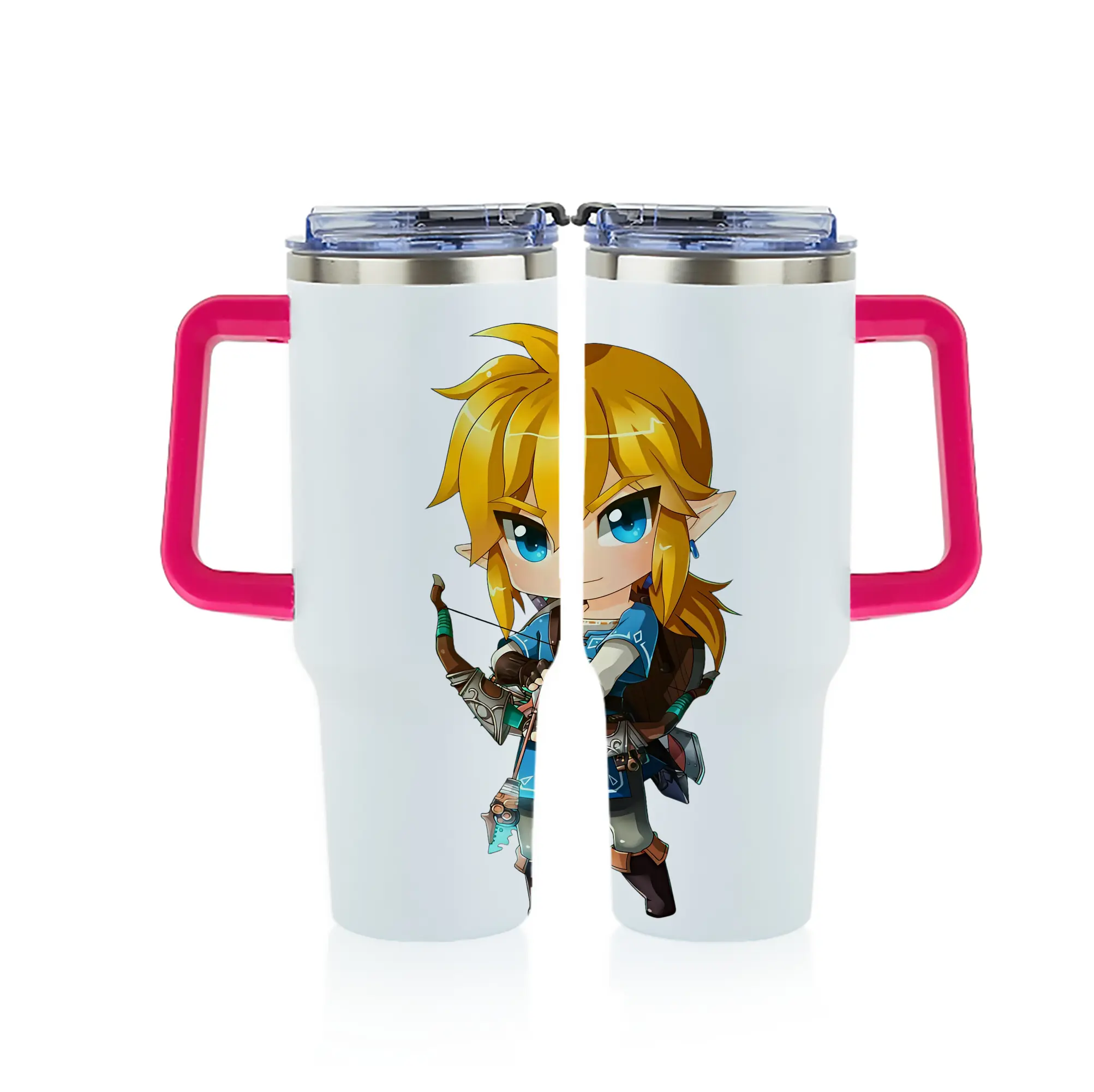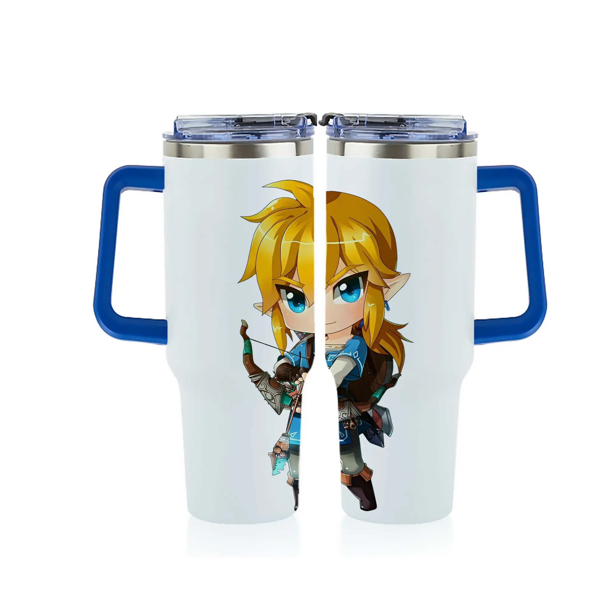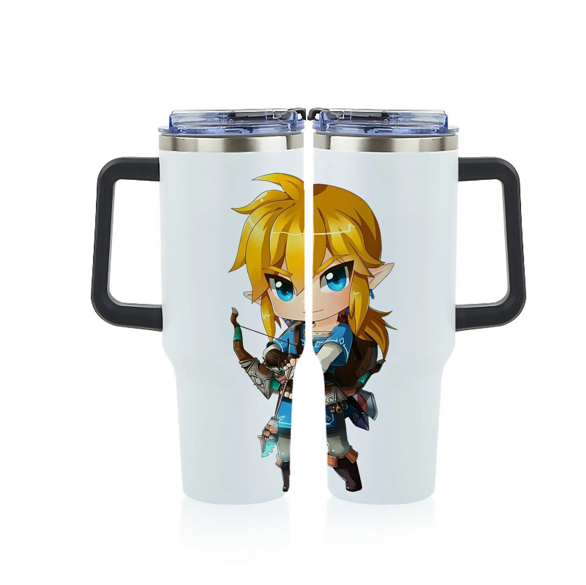 ゼルダの伝説 グッズ,リンク - 1200mL フルプリント車用タンブラー ・ 304ステンレス 内側 ・ 201ステンレス 外側 ・ 保温 保冷 ・ 通勤 ドライブ アウトドア用