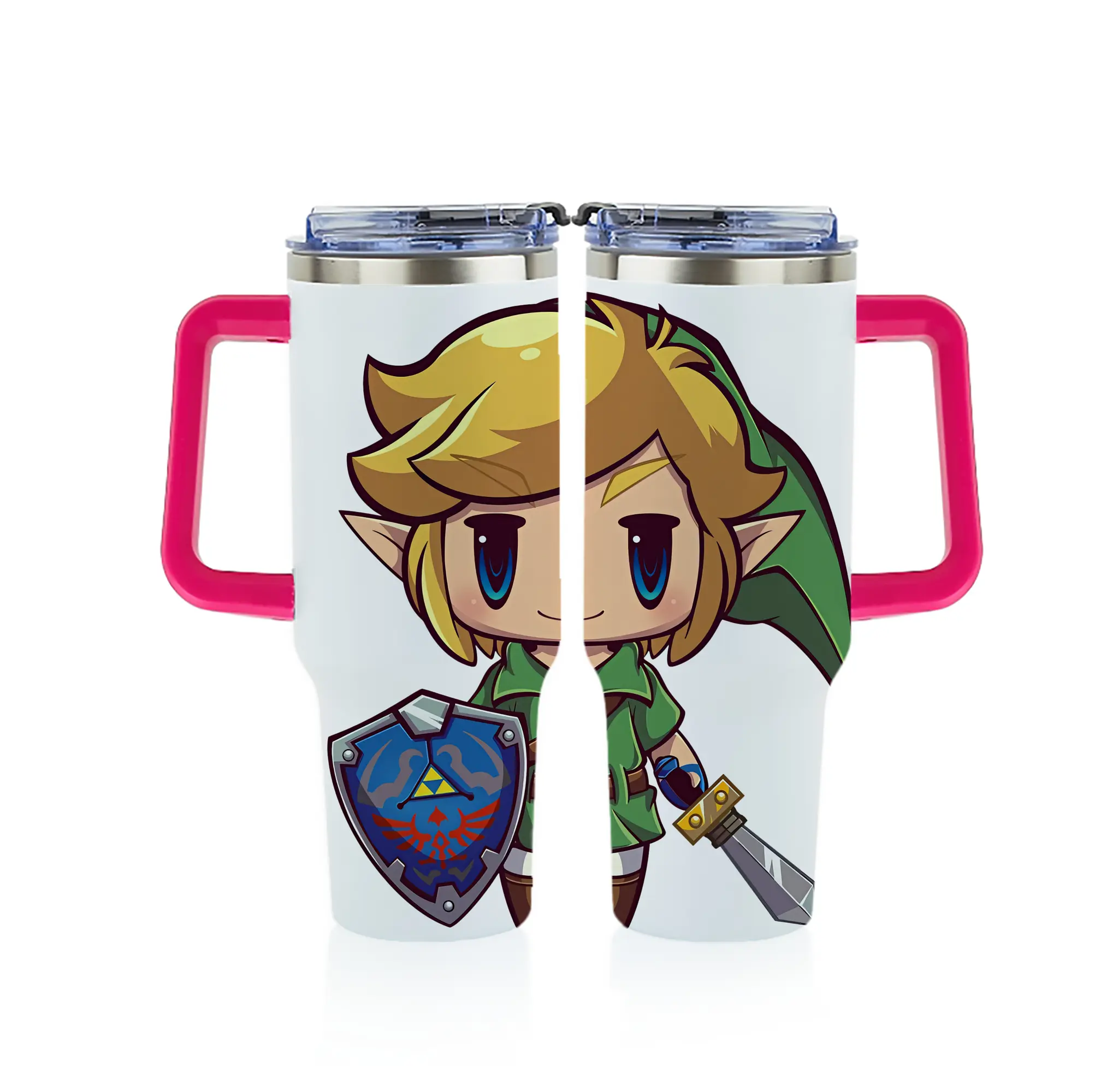 ゼルダの伝説 グッズ,リンク - 1200mL フルプリント車用タンブラー ・ 304ステンレス 内側 ・ 201ステンレス 外側 ・ 保温 保冷 ・ 通勤 ドライブ アウトドア用