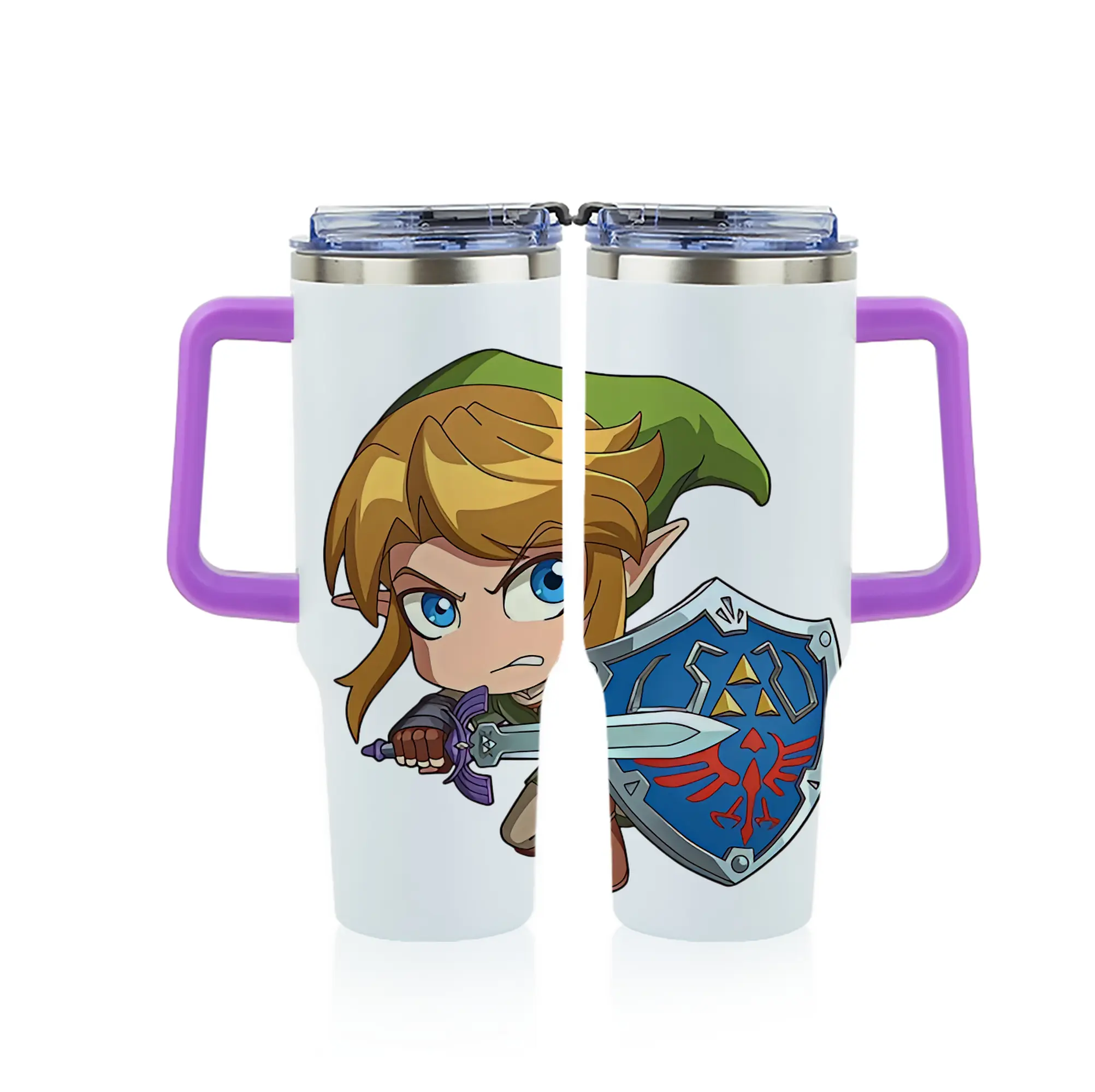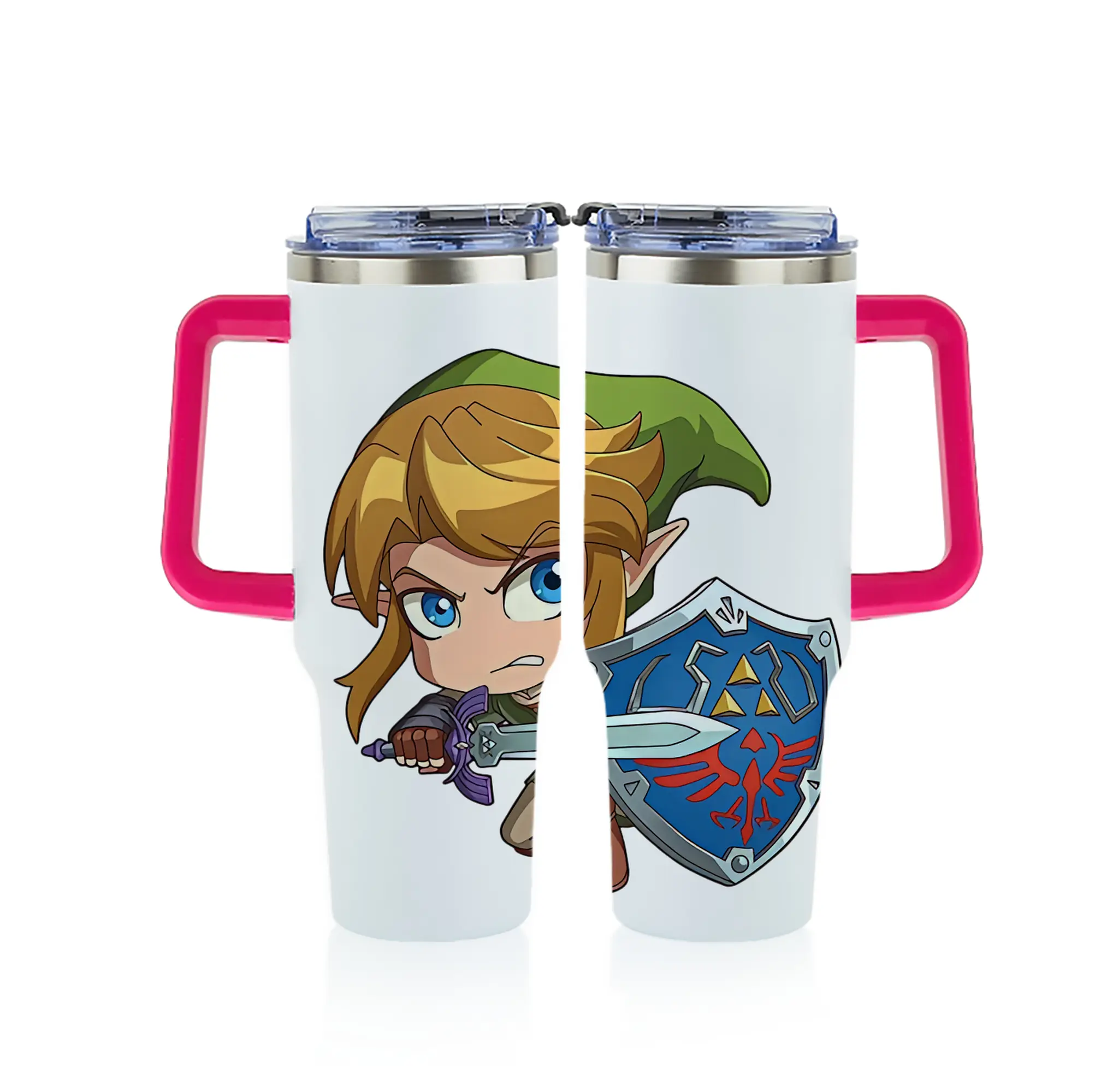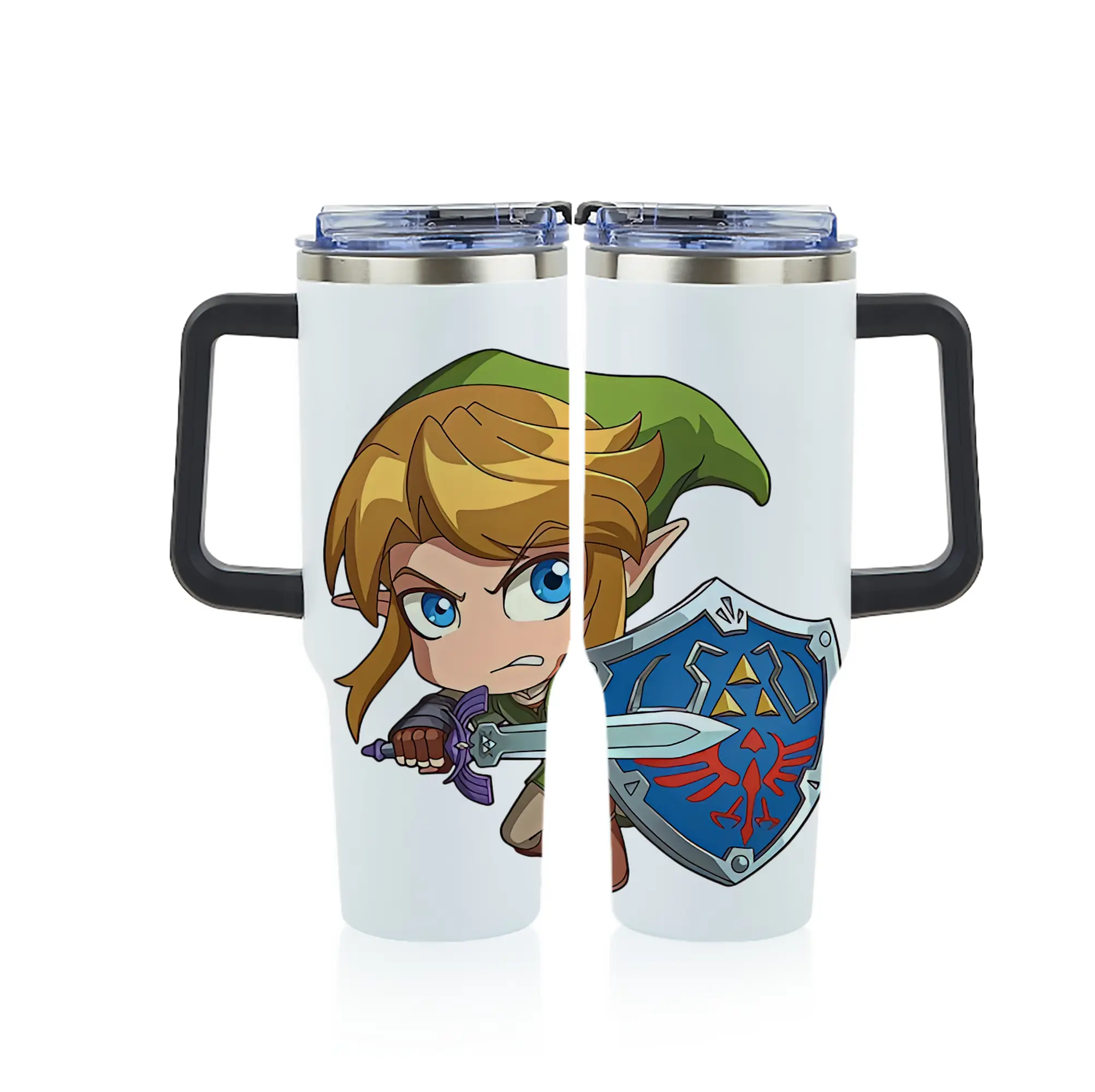 ゼルダの伝説 グッズ,リンク - 1200mL フルプリント車用タンブラー ・ 304ステンレス 内側 ・ 201ステンレス 外側 ・ 保温 保冷 ・ 通勤 ドライブ アウトドア用