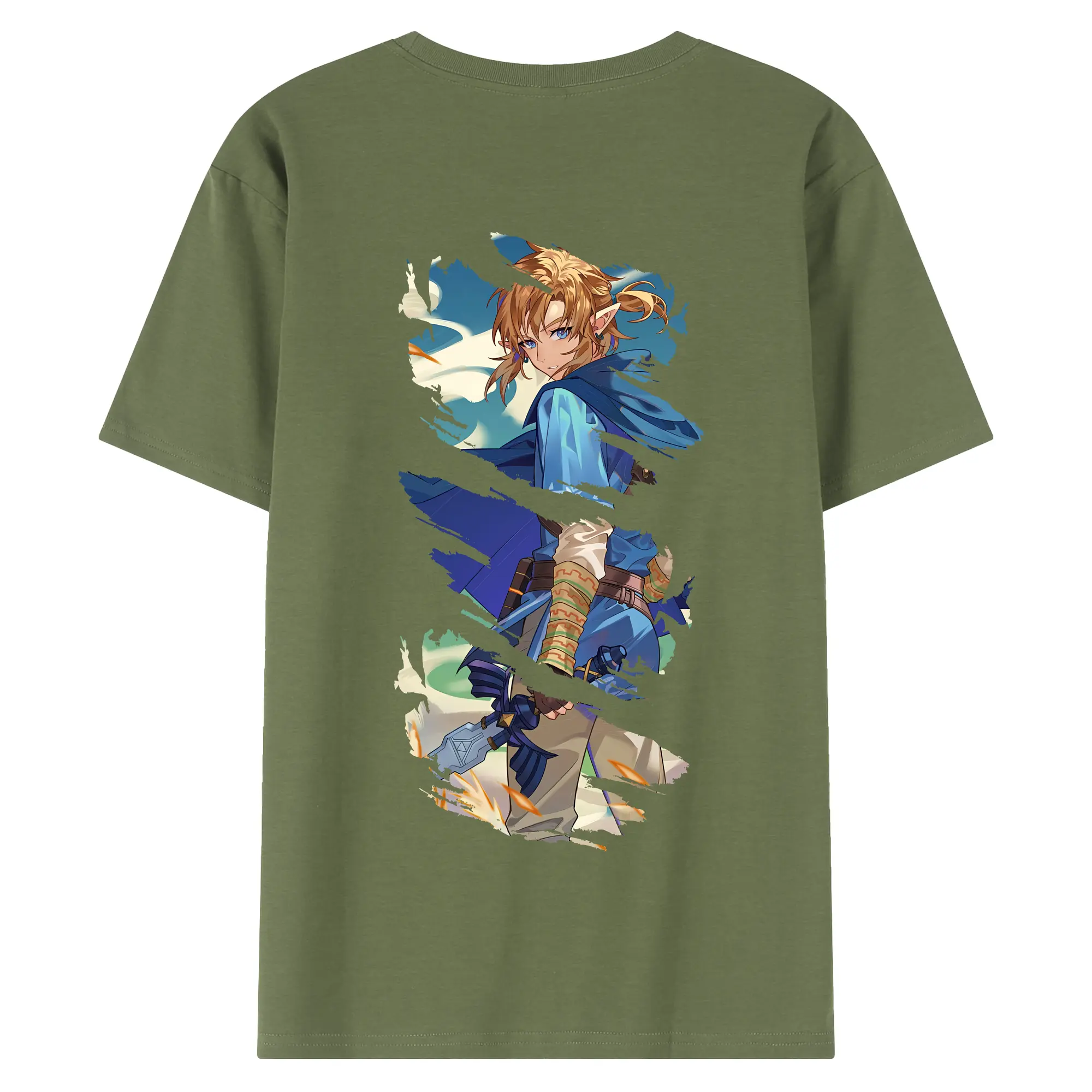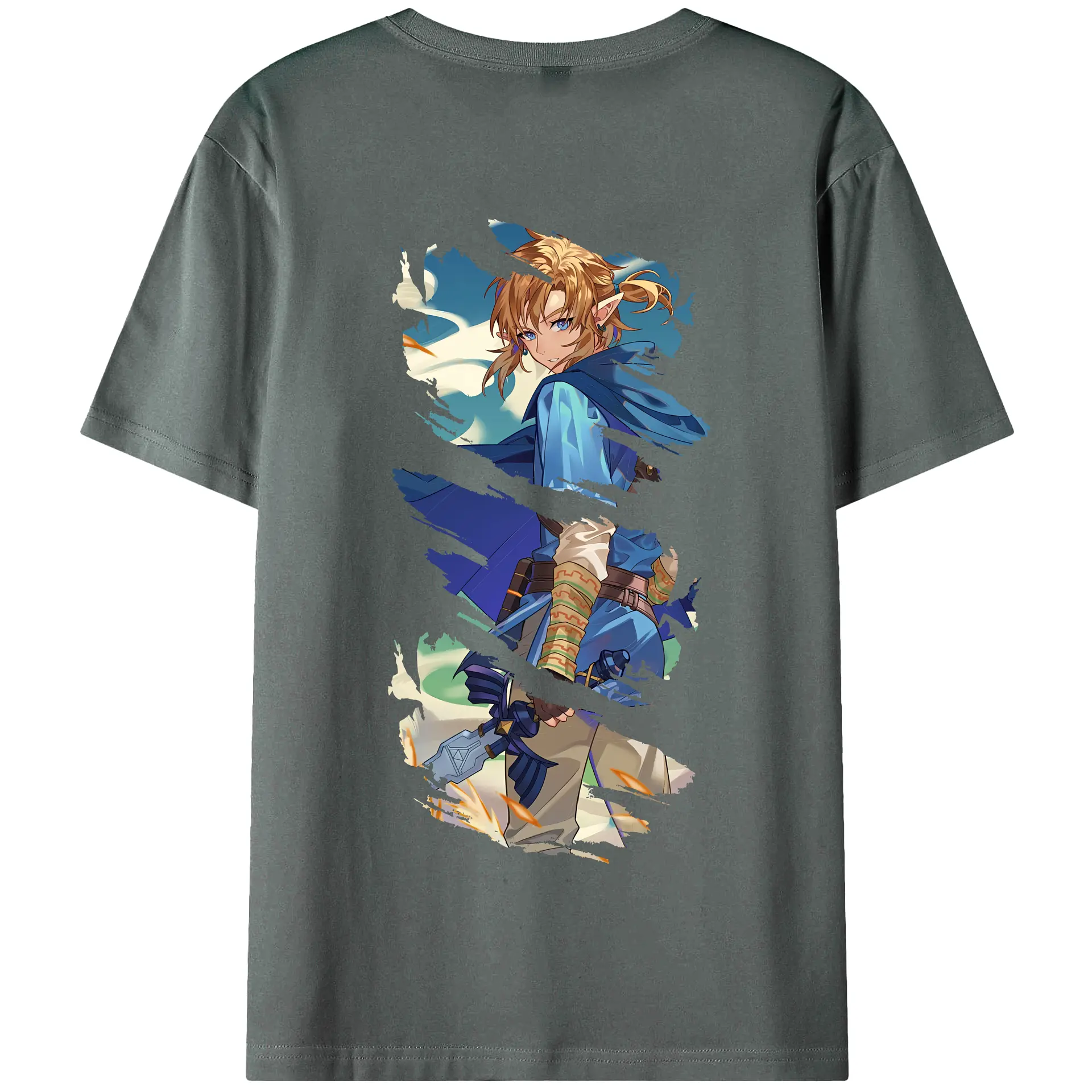 ゼルダの伝説 グッズ,リンク - 綿100% 半袖Tシャツ ・ フロントプリント ・ 快適 通気性 ・ 日常使い 散歩 スポーツ用