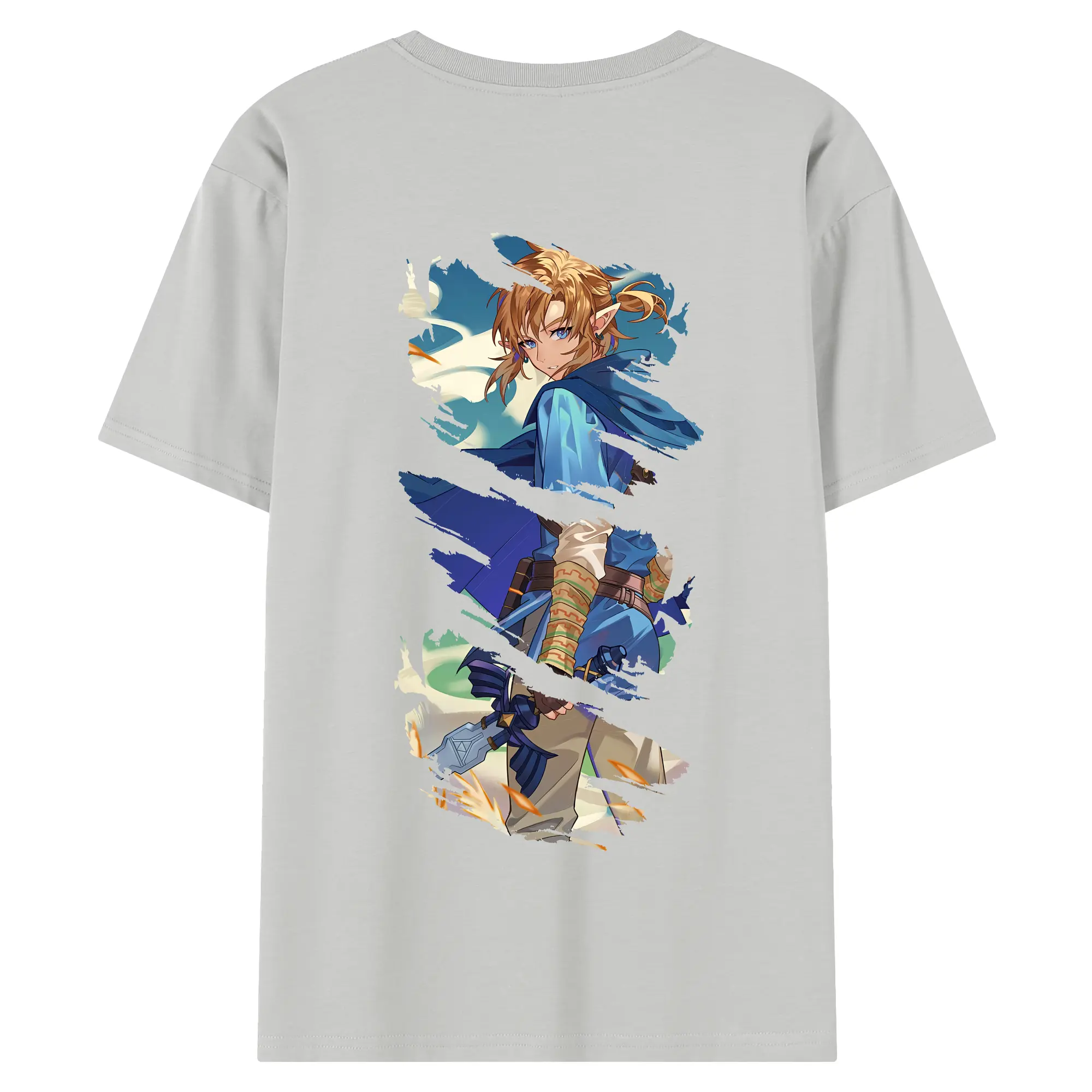 ゼルダの伝説 グッズ,リンク - 綿100% ヴィンテージ風 半袖Tシャツ ・ 背面プリント ・ 柔らか肌触り ・ 通気性 快適 ・ スポーツ カジュアル 外出用
