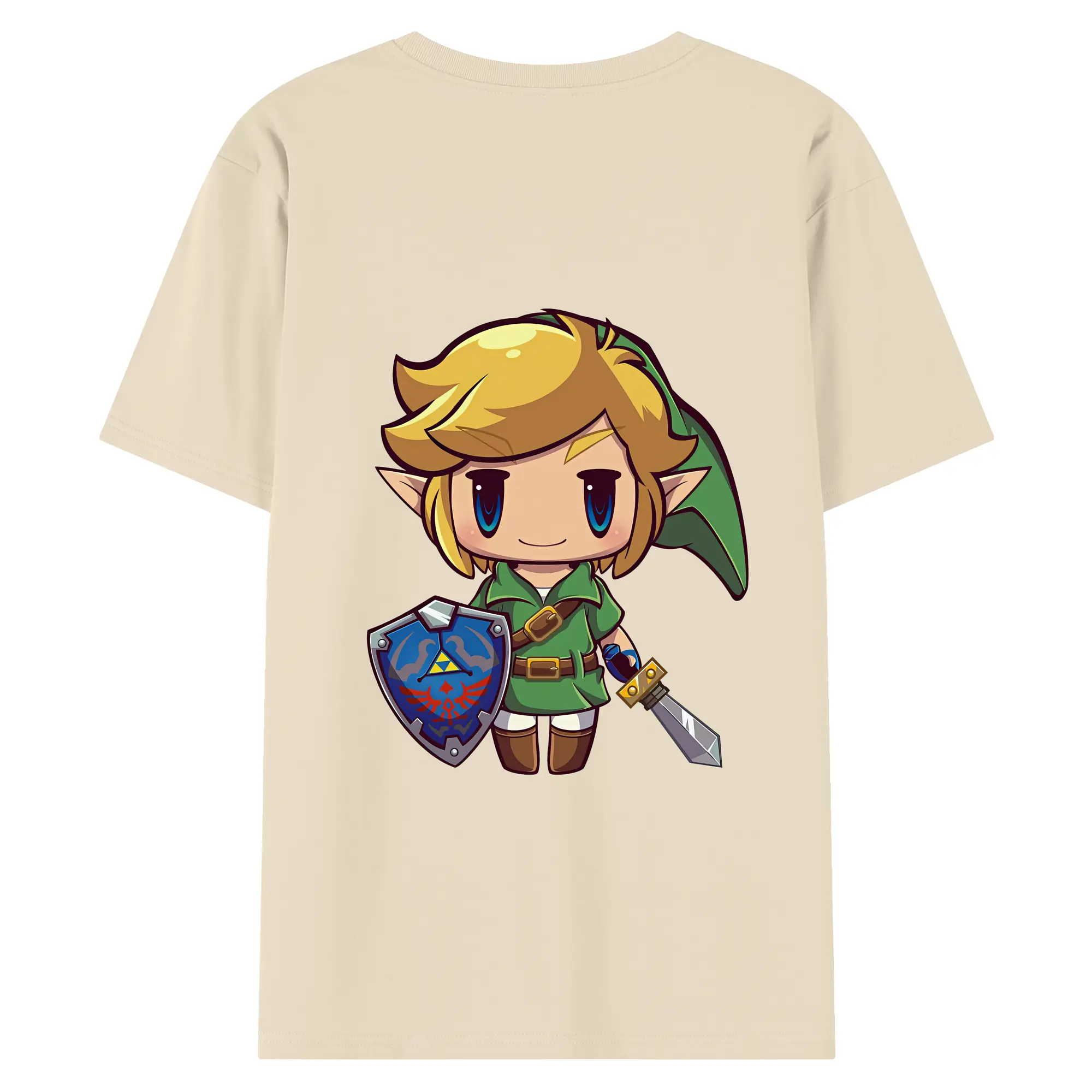 ゼルダの伝説 グッズ,リンク - 綿100% ヴィンテージ風 半袖Tシャツ ・ 背面プリント ・ 柔らか肌触り ・ 通気性 快適 ・ スポーツ カジュアル 外出用