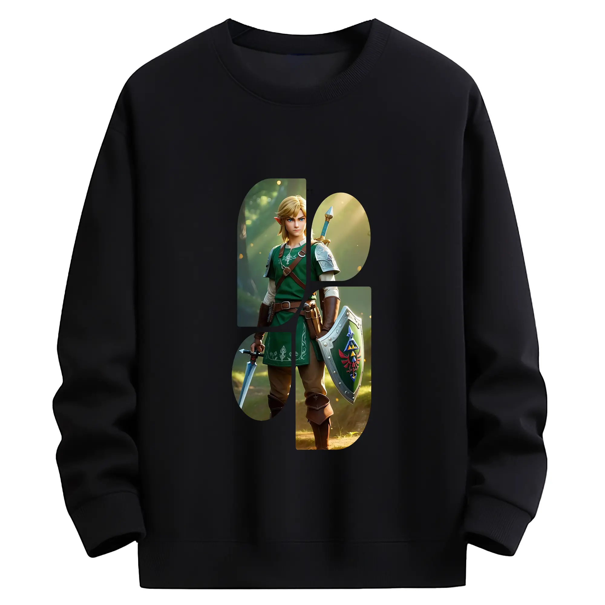 ゼルダの伝説 グッズ,リンク - 高品質 クルーネック スウェット ・ コットン59% ポリエステル41% ・ ユニセックス 長袖 トレーナー ・ カジュアル デイリー スポーツ 散歩用