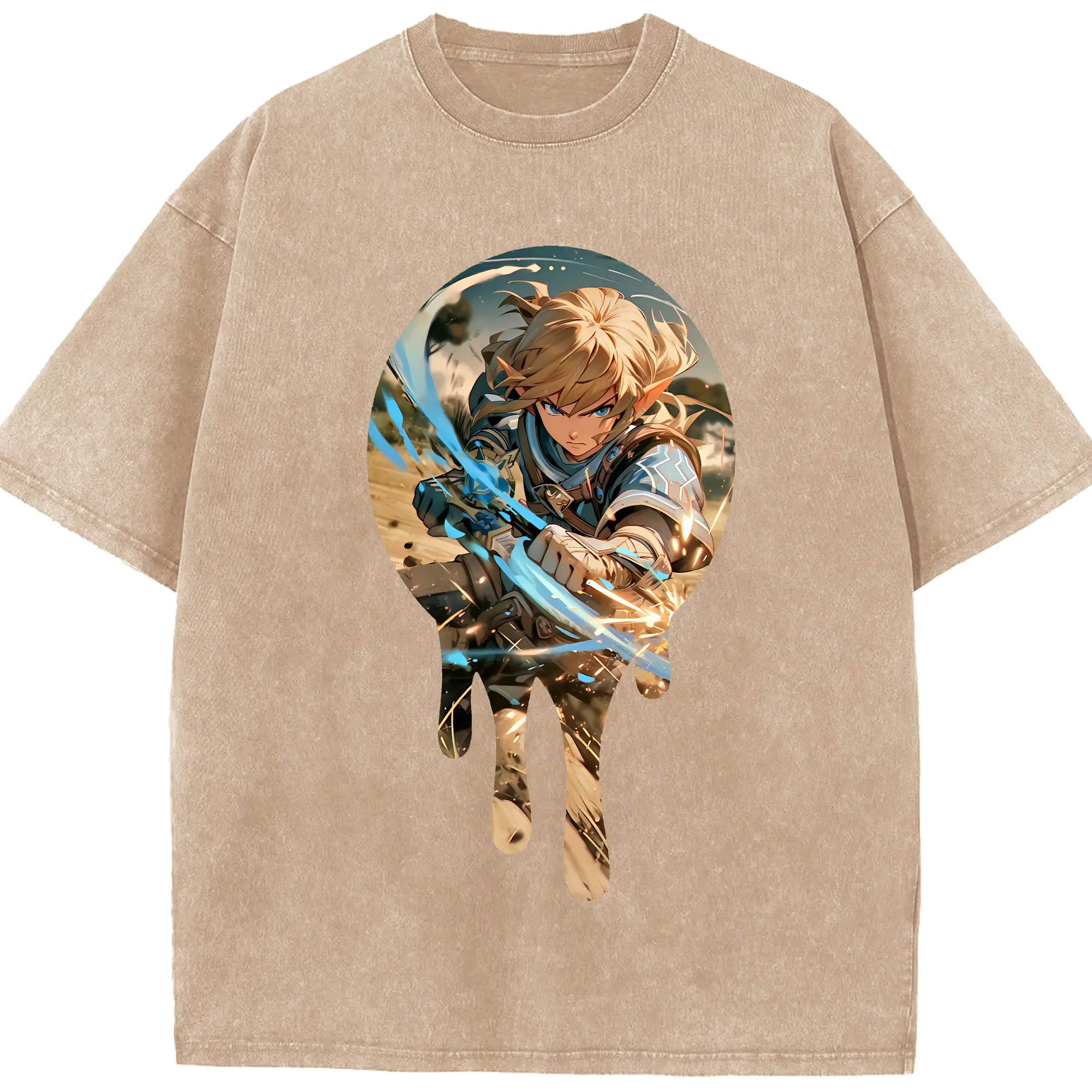 ゼルダの伝説 グッズ,リンク - 綿100% ヴィンテージ風 半袖Tシャツ ・ 背面プリント ・ 柔らか肌触り ・ 通気性 快適 ・ スポーツ カジュアル 外出用