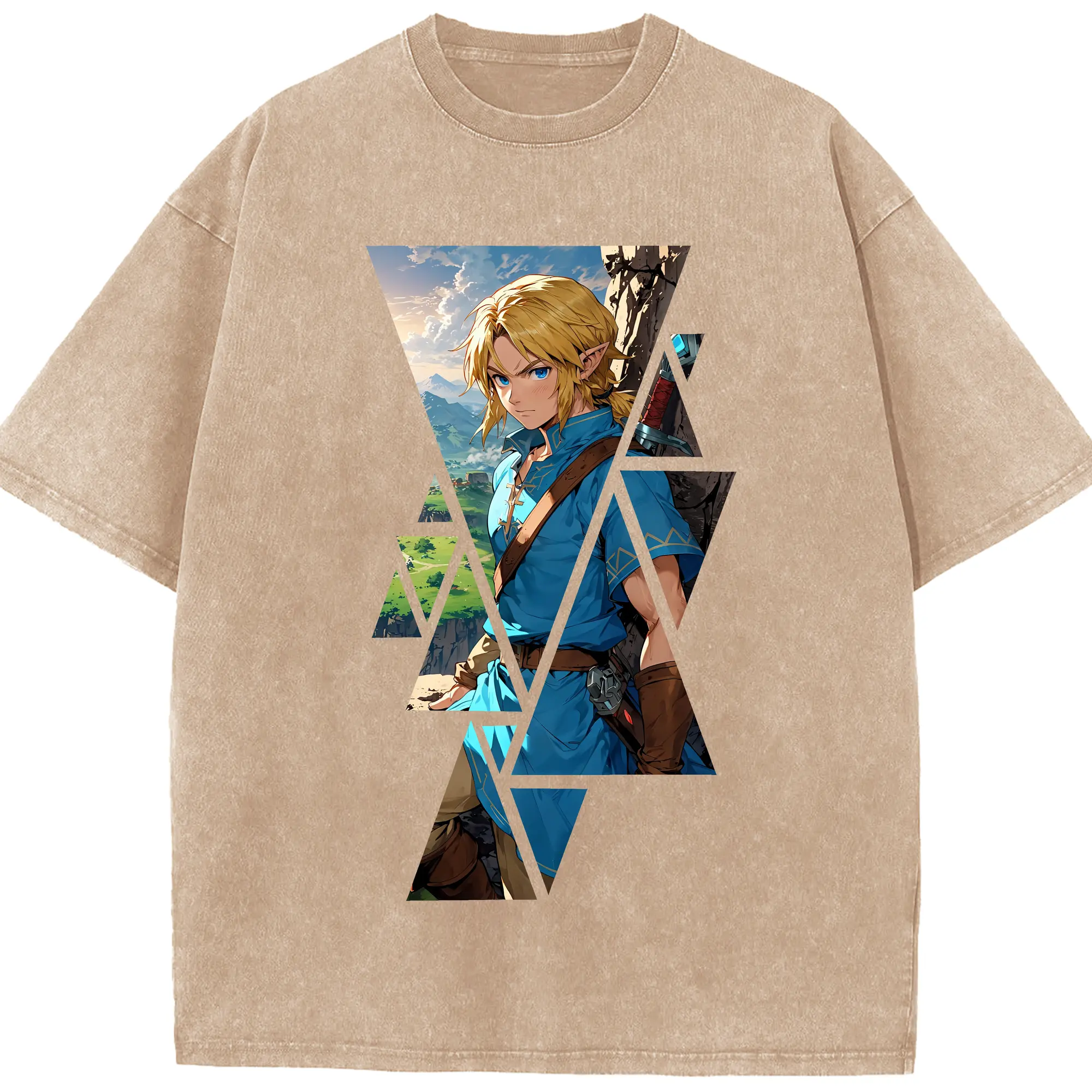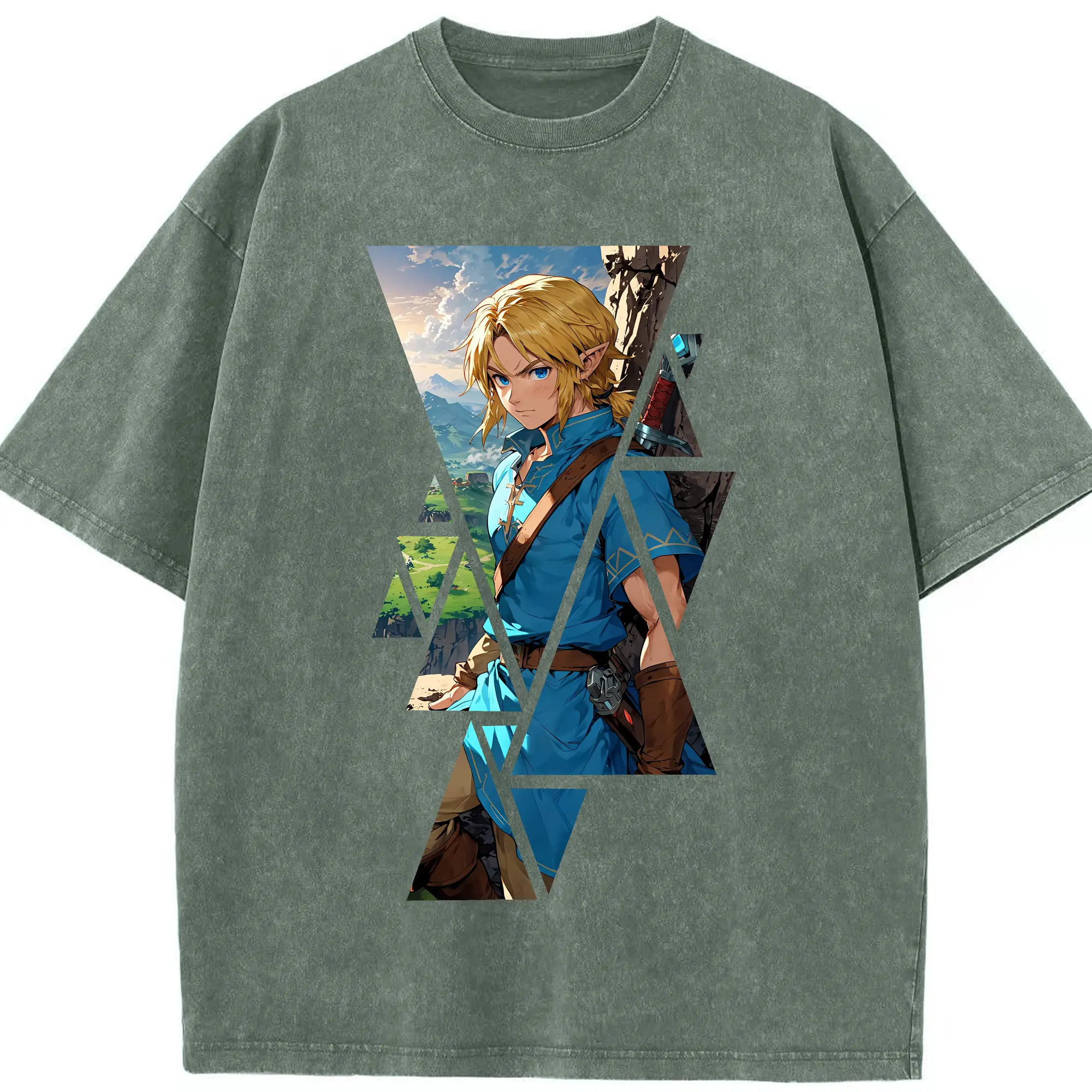 ゼルダの伝説 グッズ,リンク - 綿100% ヴィンテージ風 半袖Tシャツ ・ 背面プリント ・ 柔らか肌触り ・ 通気性 快適 ・ スポーツ カジュアル 外出用