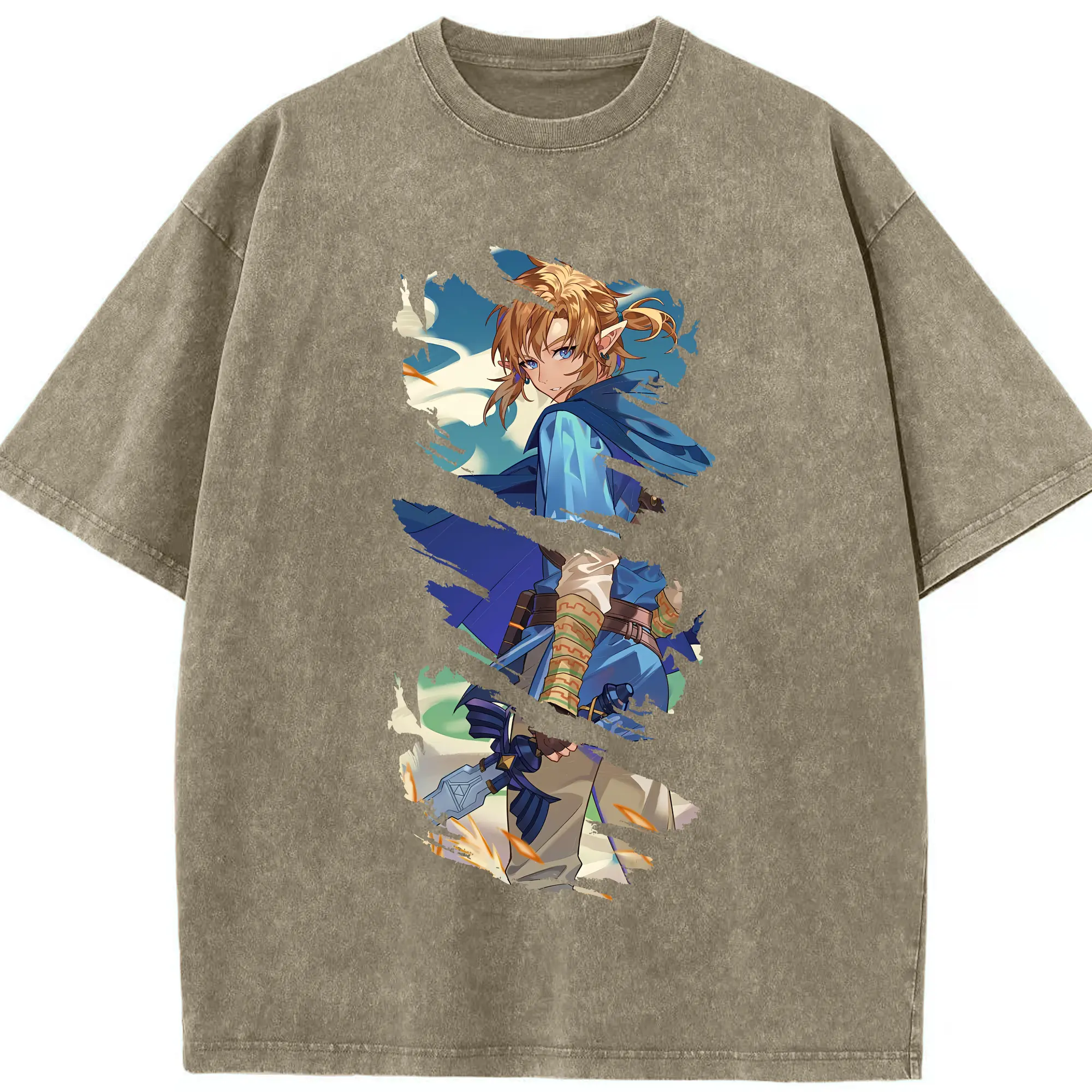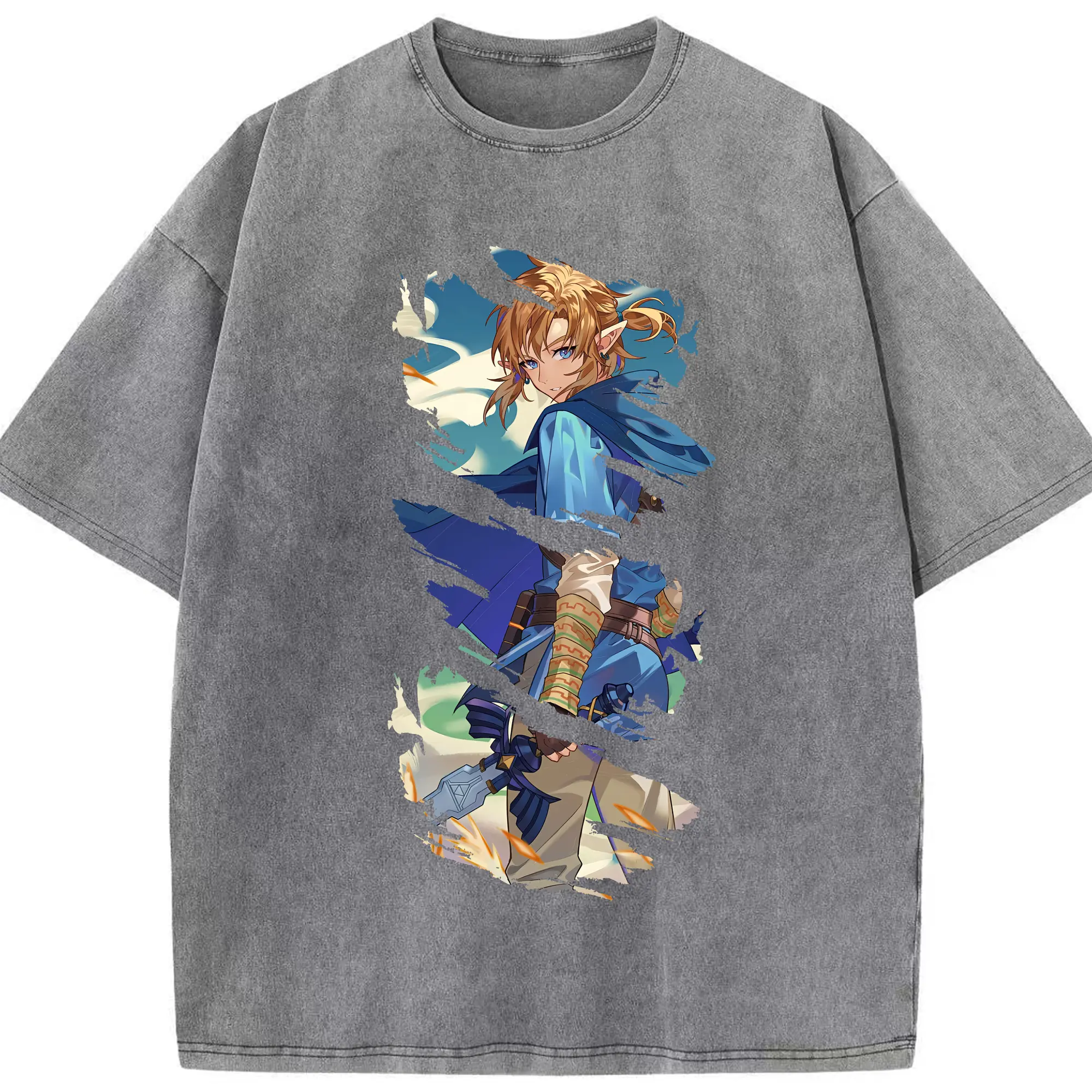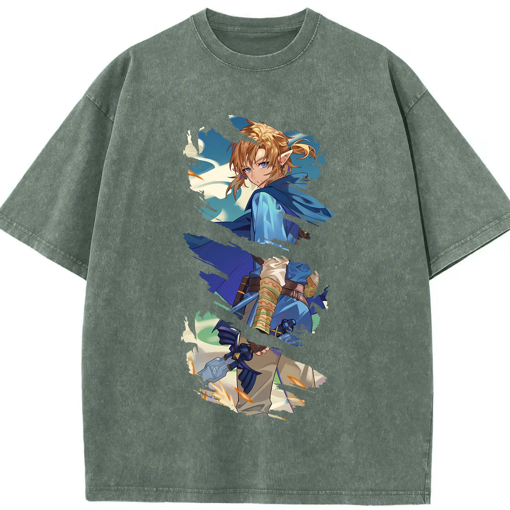 ゼルダの伝説 グッズ,リンク - 綿100% ヴィンテージ風 半袖Tシャツ ・ 背面プリント ・ 柔らか肌触り ・ 通気性 快適 ・ スポーツ カジュアル 外出用
