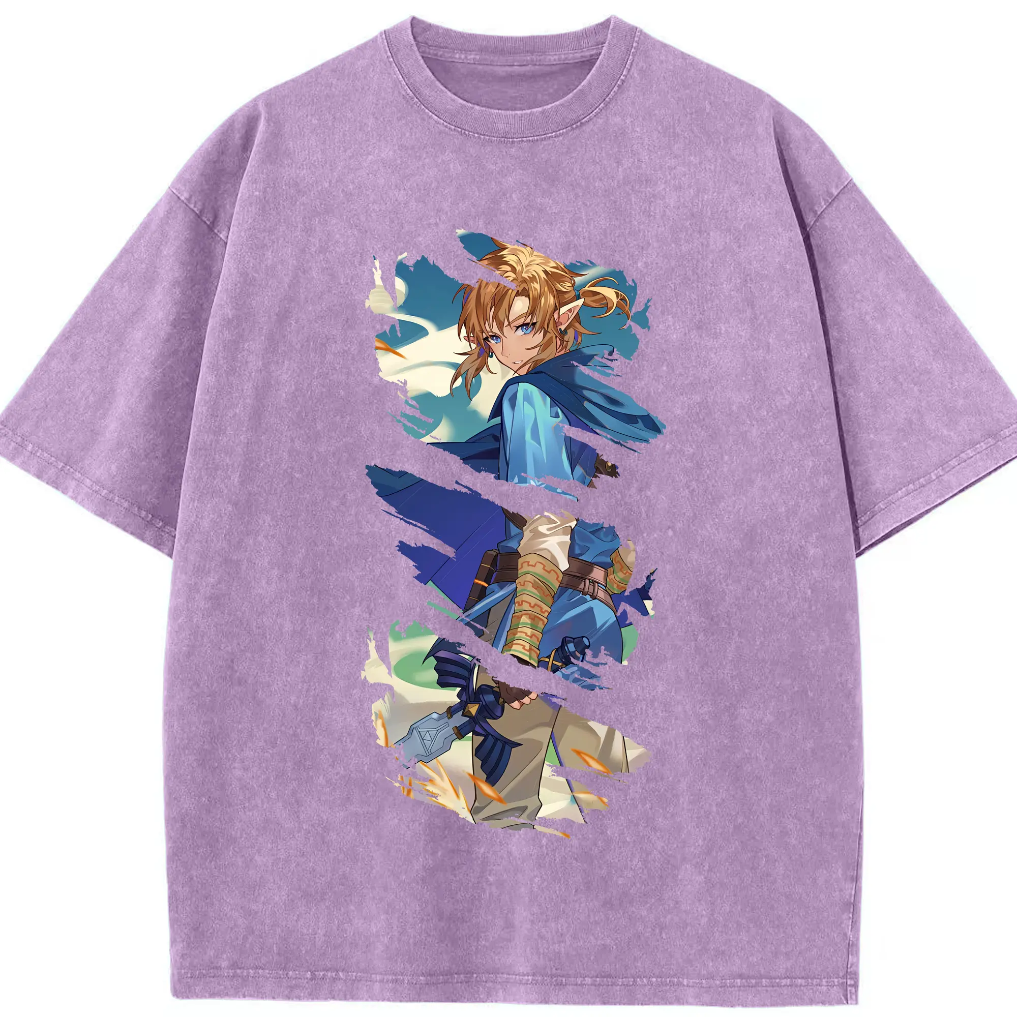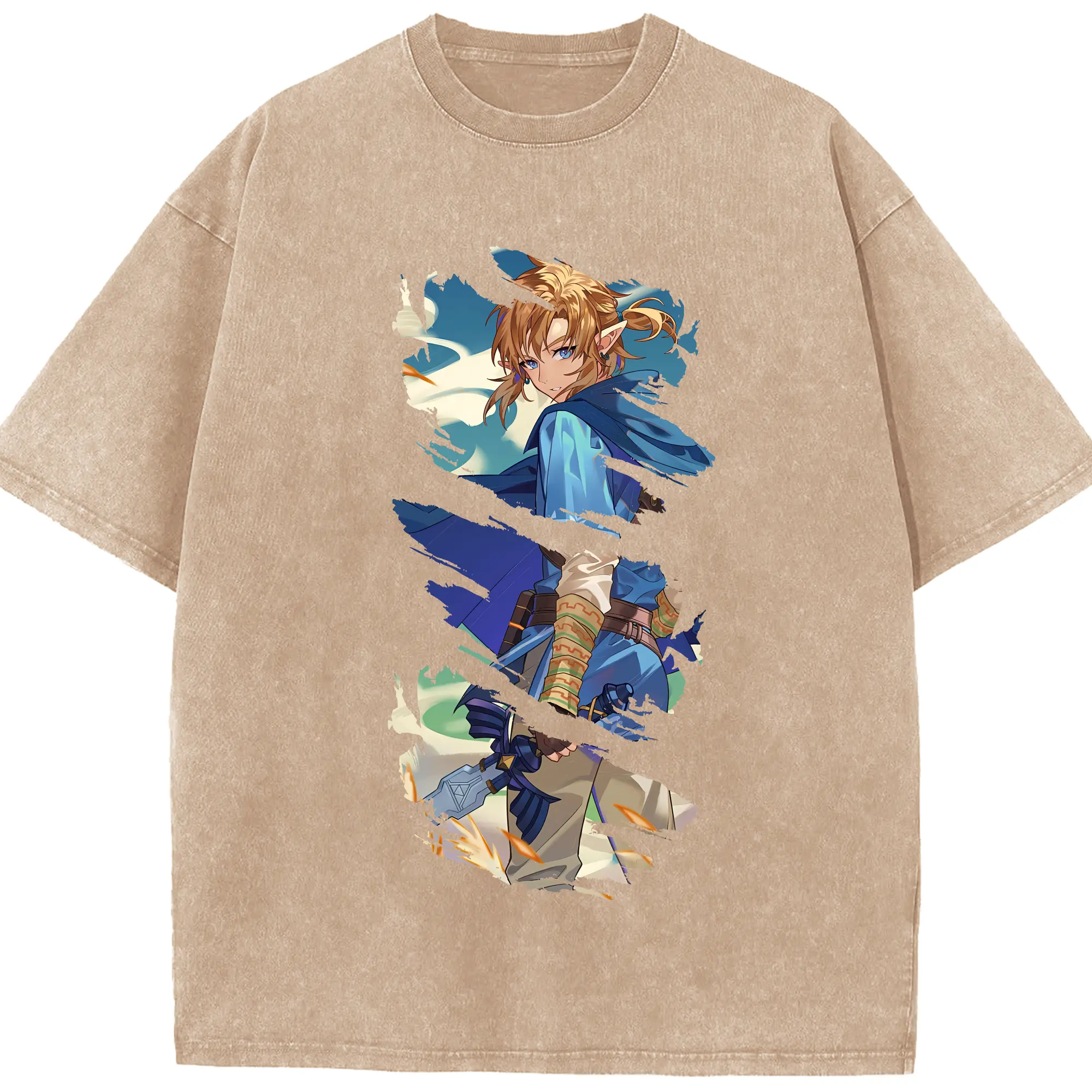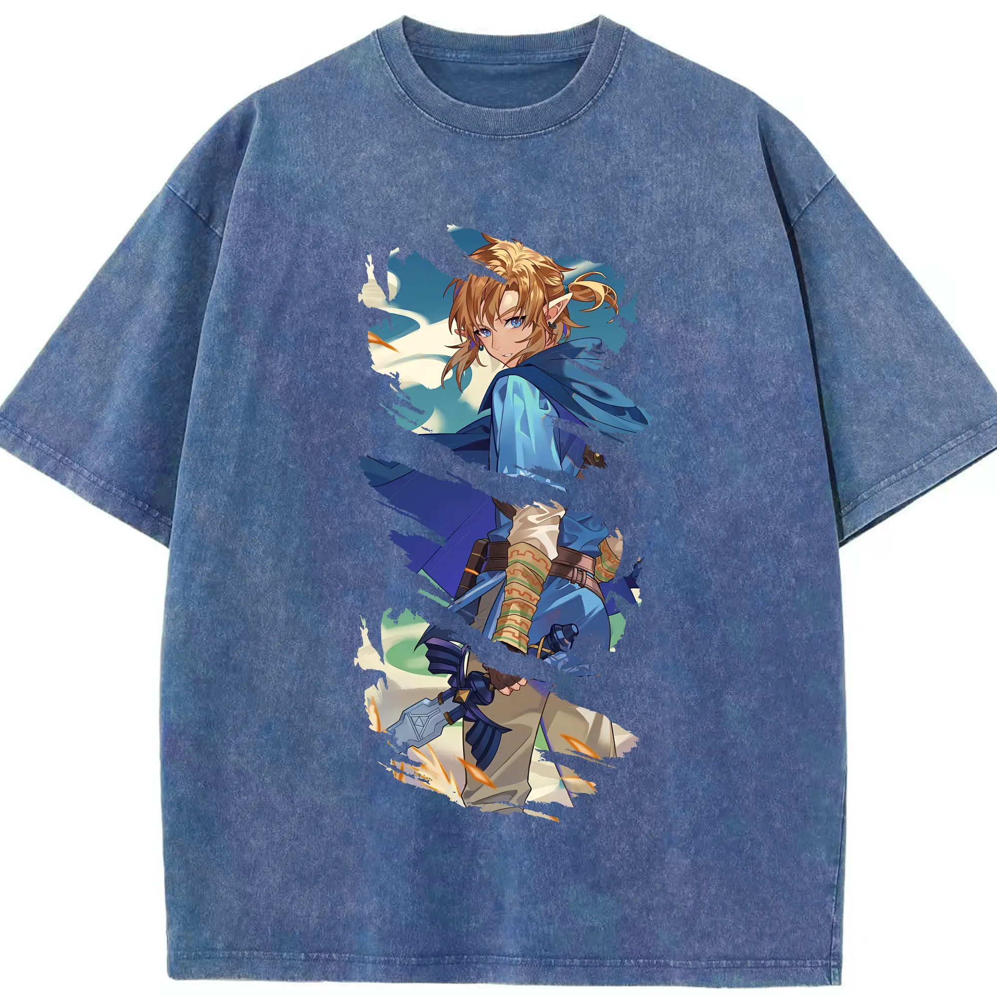 ゼルダの伝説 グッズ,リンク - 綿100% ヴィンテージ風 半袖Tシャツ ・ 背面プリント ・ 柔らか肌触り ・ 通気性 快適 ・ スポーツ カジュアル 外出用