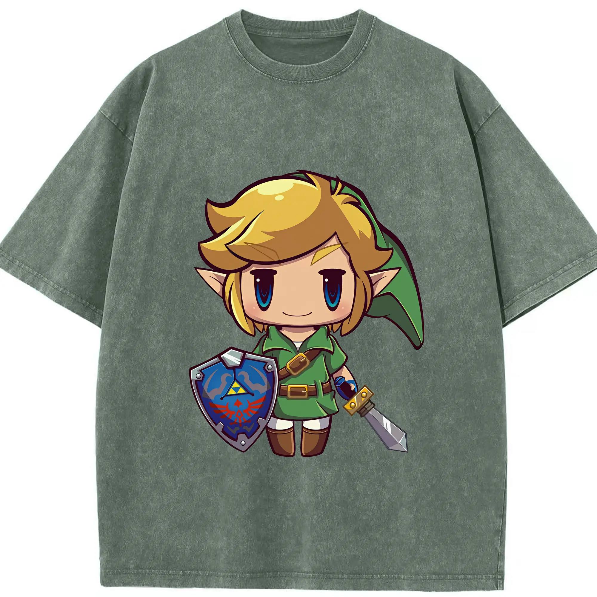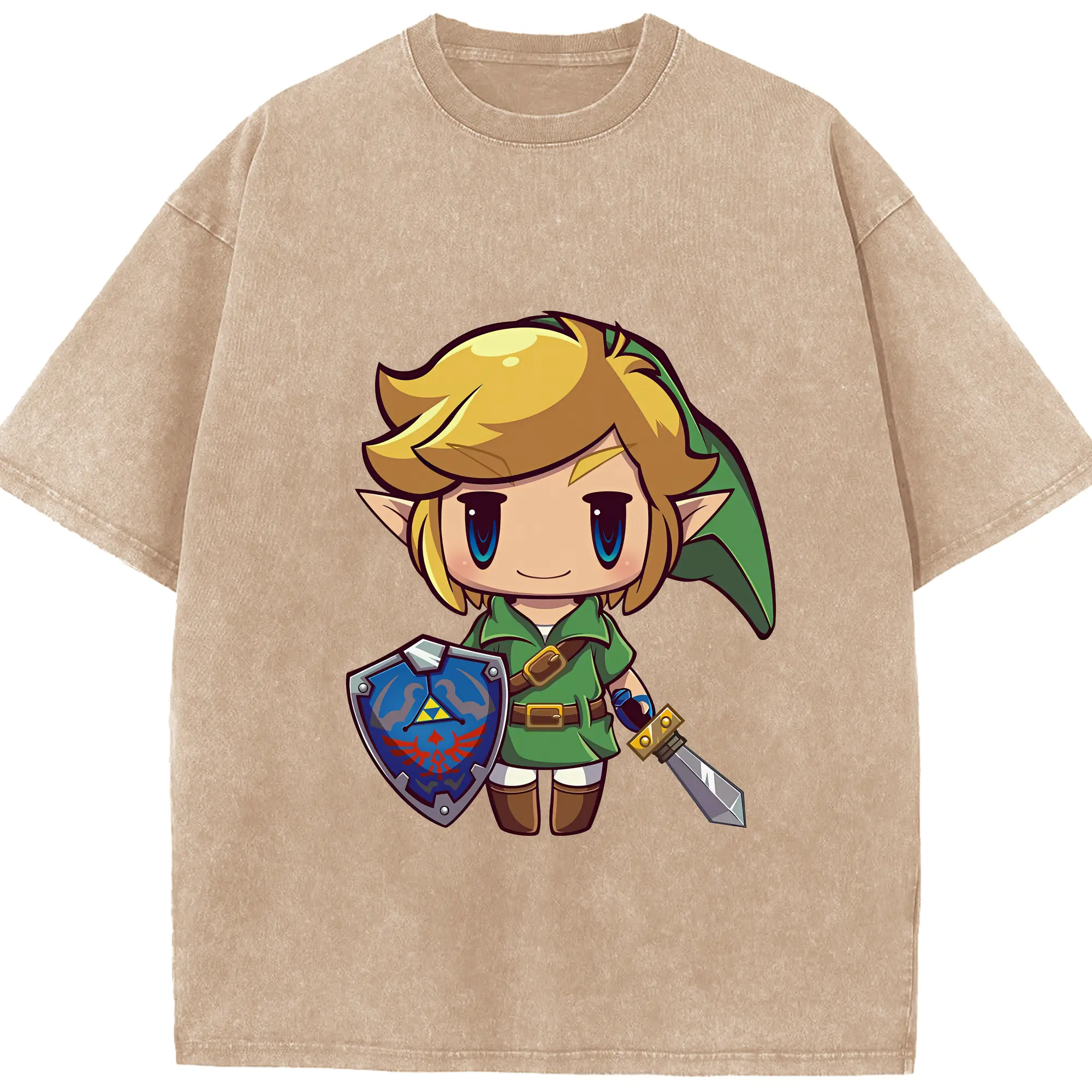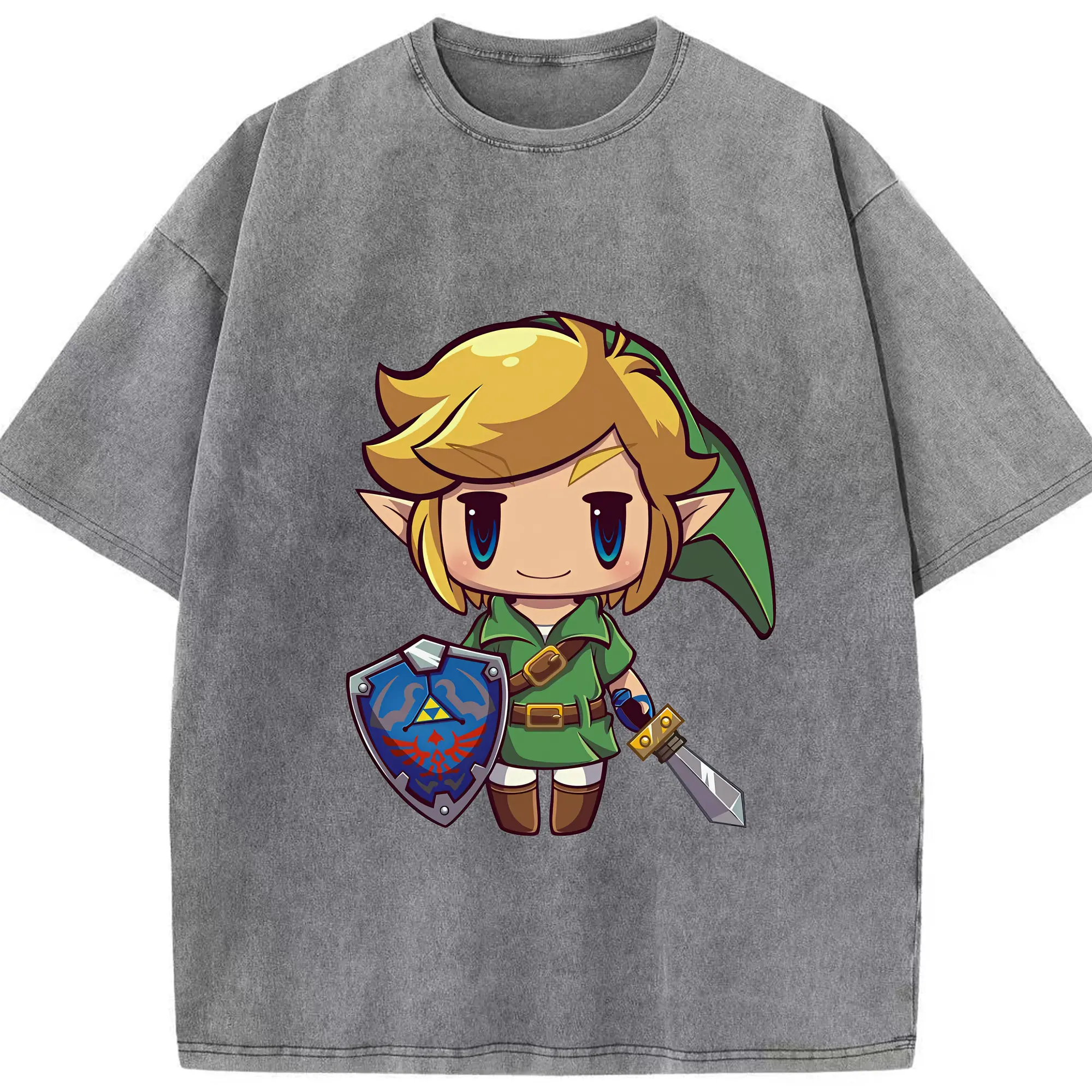 ゼルダの伝説 グッズ,リンク - 綿100% ヴィンテージ風 半袖Tシャツ ・ 背面プリント ・ 柔らか肌触り ・ 通気性 快適 ・ スポーツ カジュアル 外出用