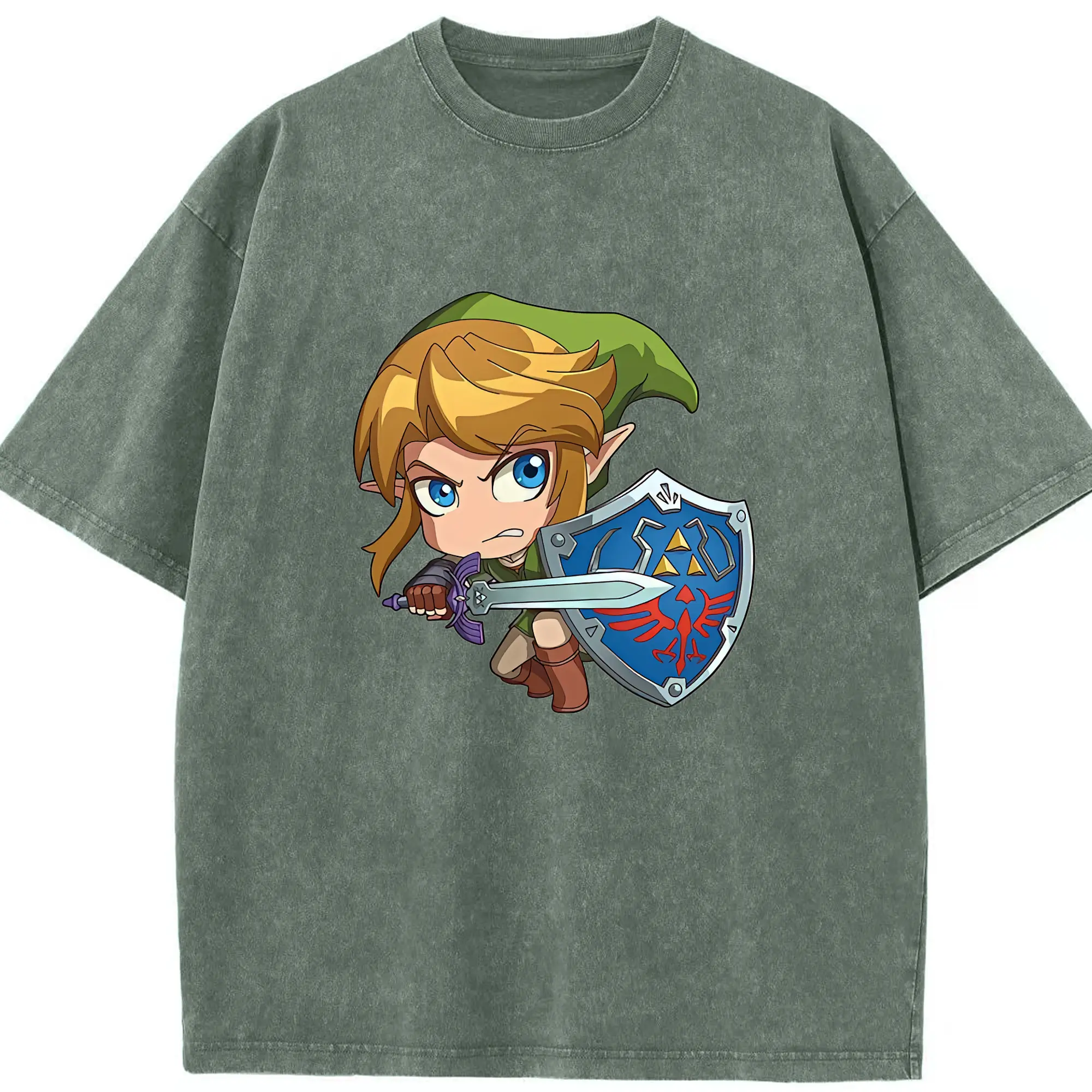 ゼルダの伝説 グッズ,リンク - 綿100% ヴィンテージ風 半袖Tシャツ ・ 背面プリント ・ 柔らか肌触り ・ 通気性 快適 ・ スポーツ カジュアル 外出用