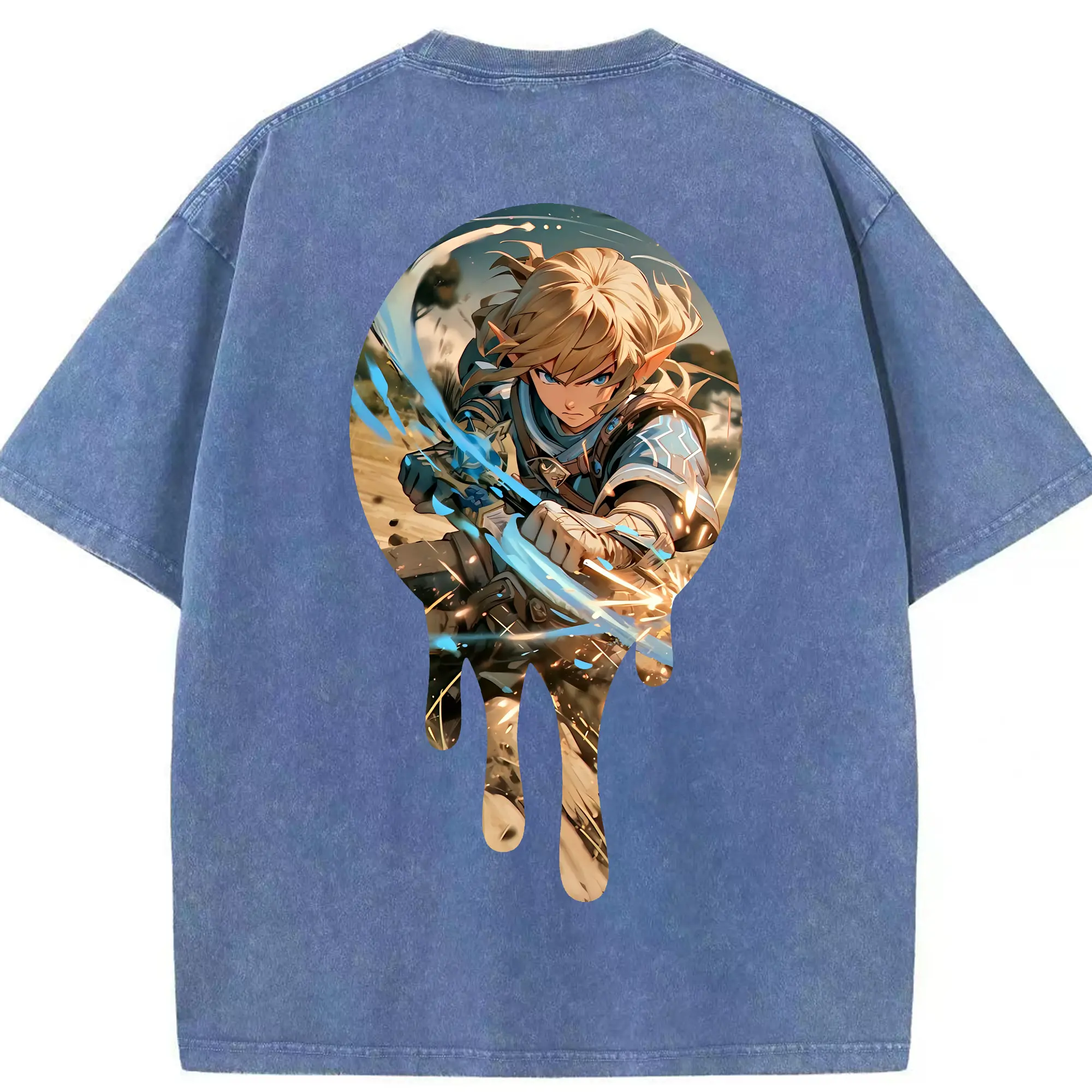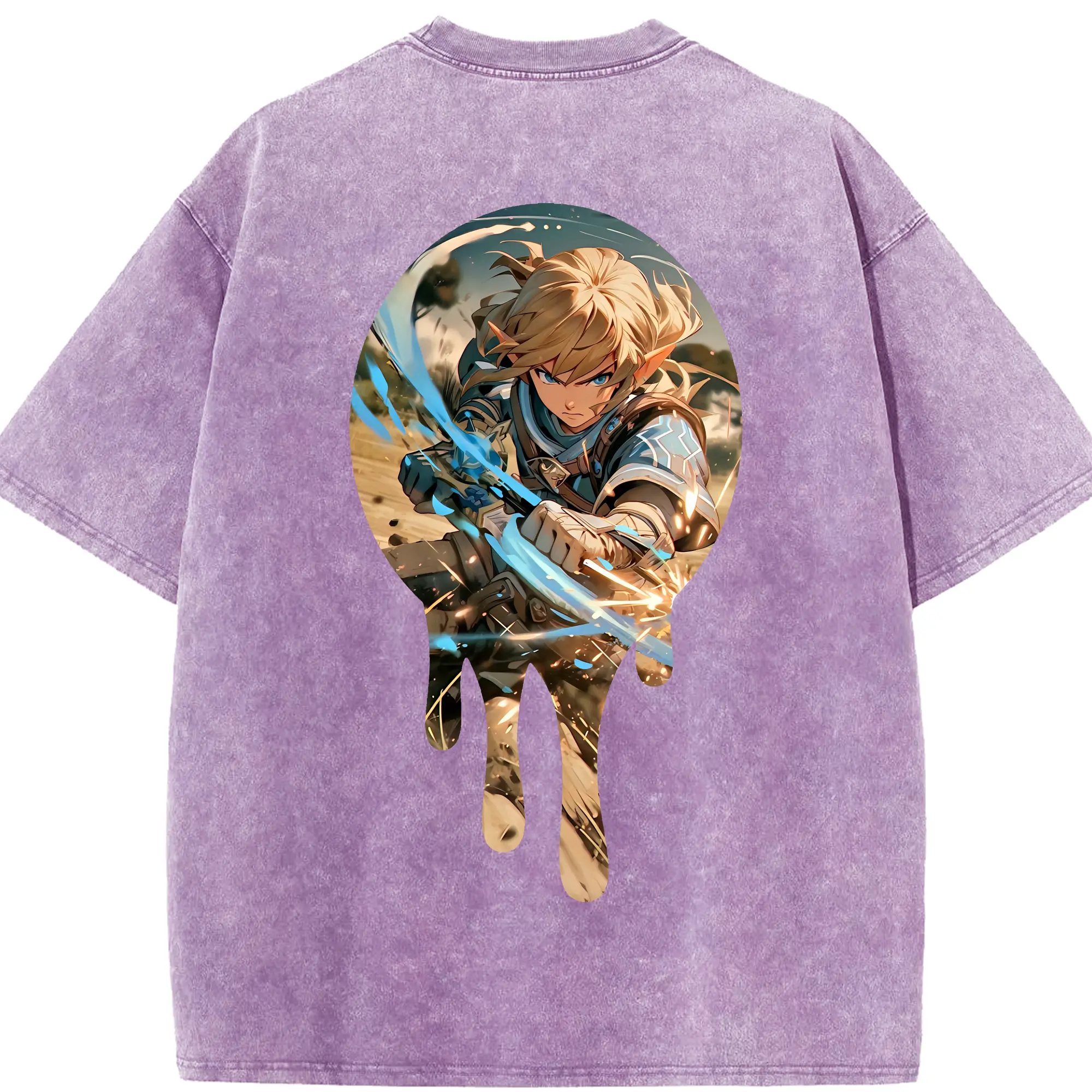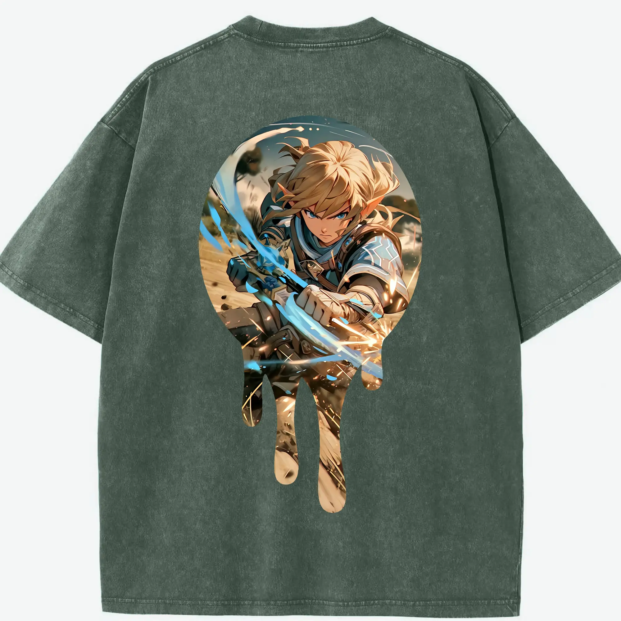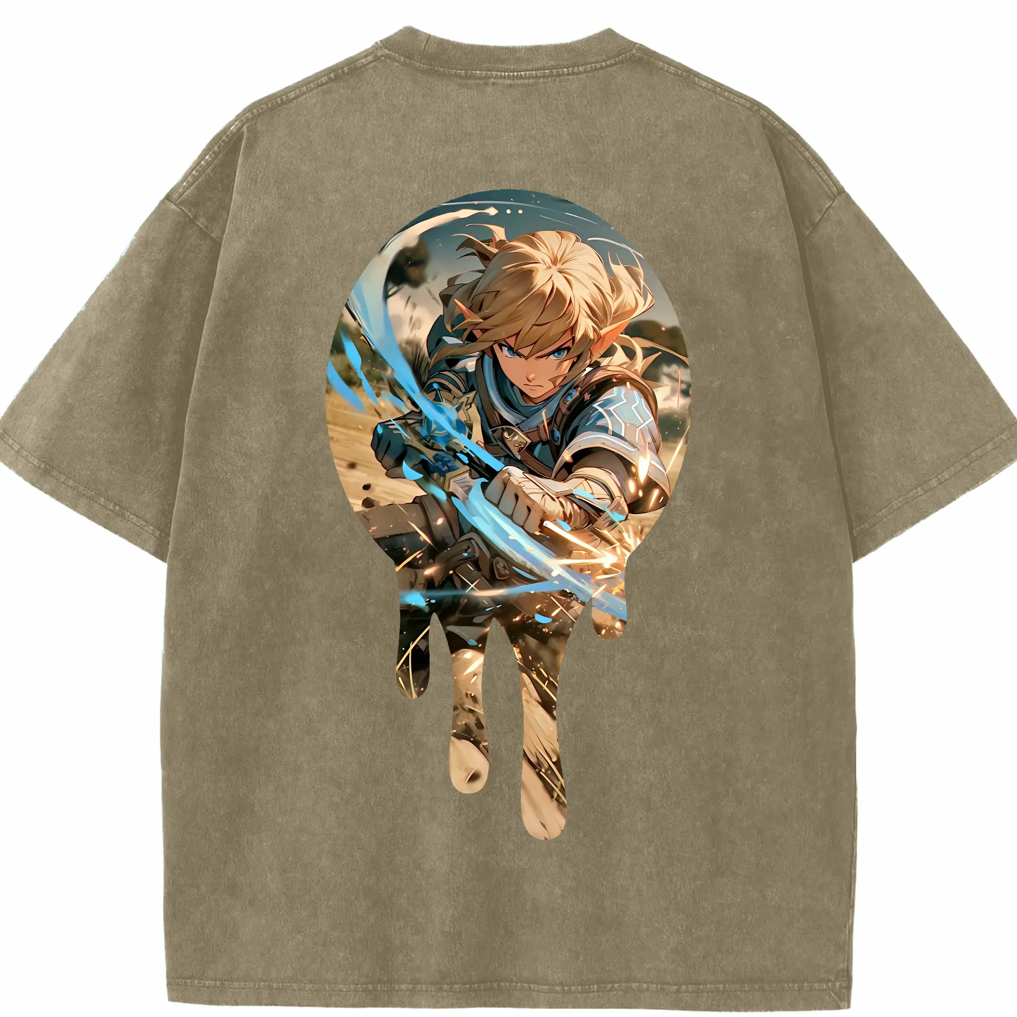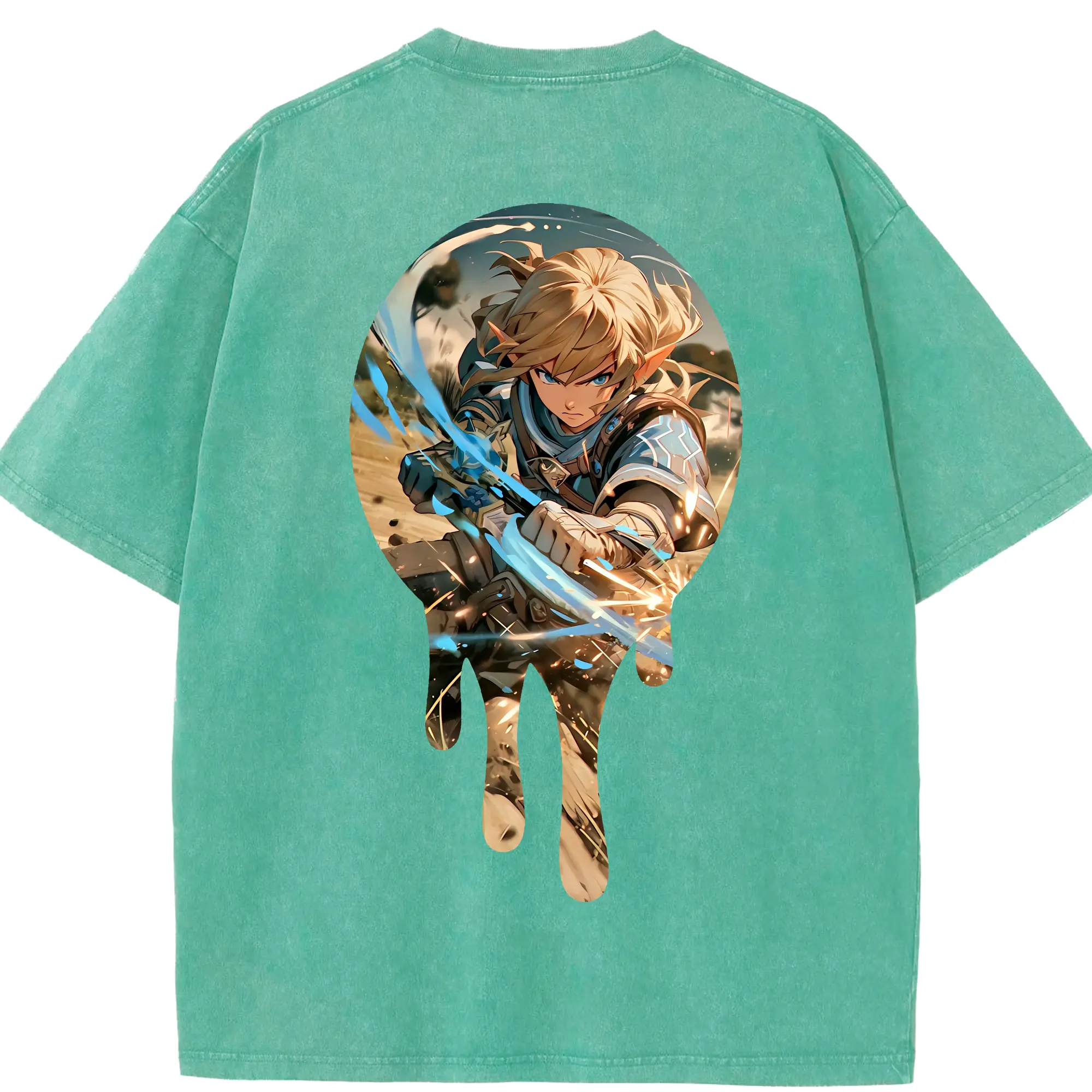 ゼルダの伝説 グッズ,リンク - 綿100% ヴィンテージ風 半袖Tシャツ ・ フロントプリント ・ 柔らか肌触り ・ 通気性 快適 ・ スポーツ カジュアル 外出用
