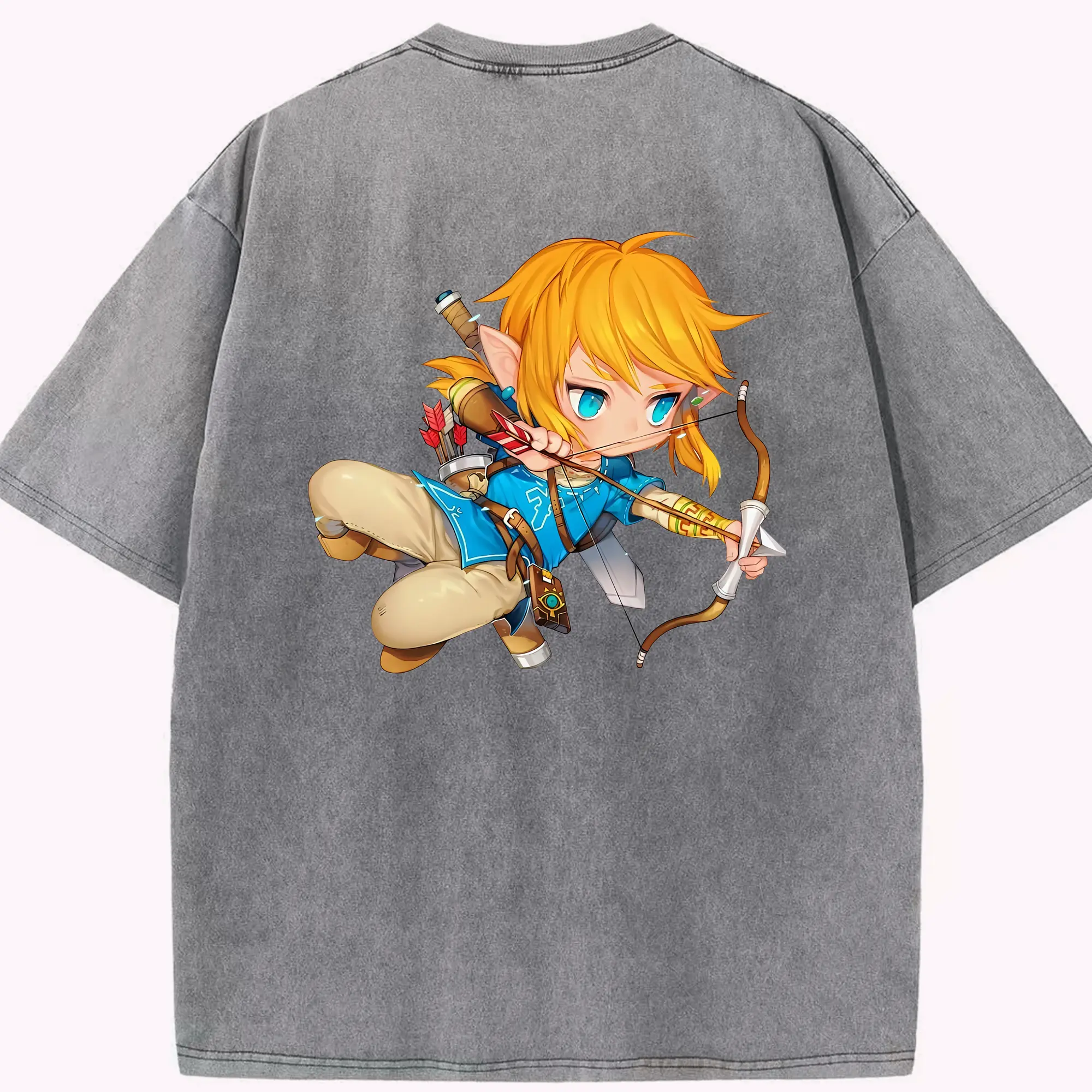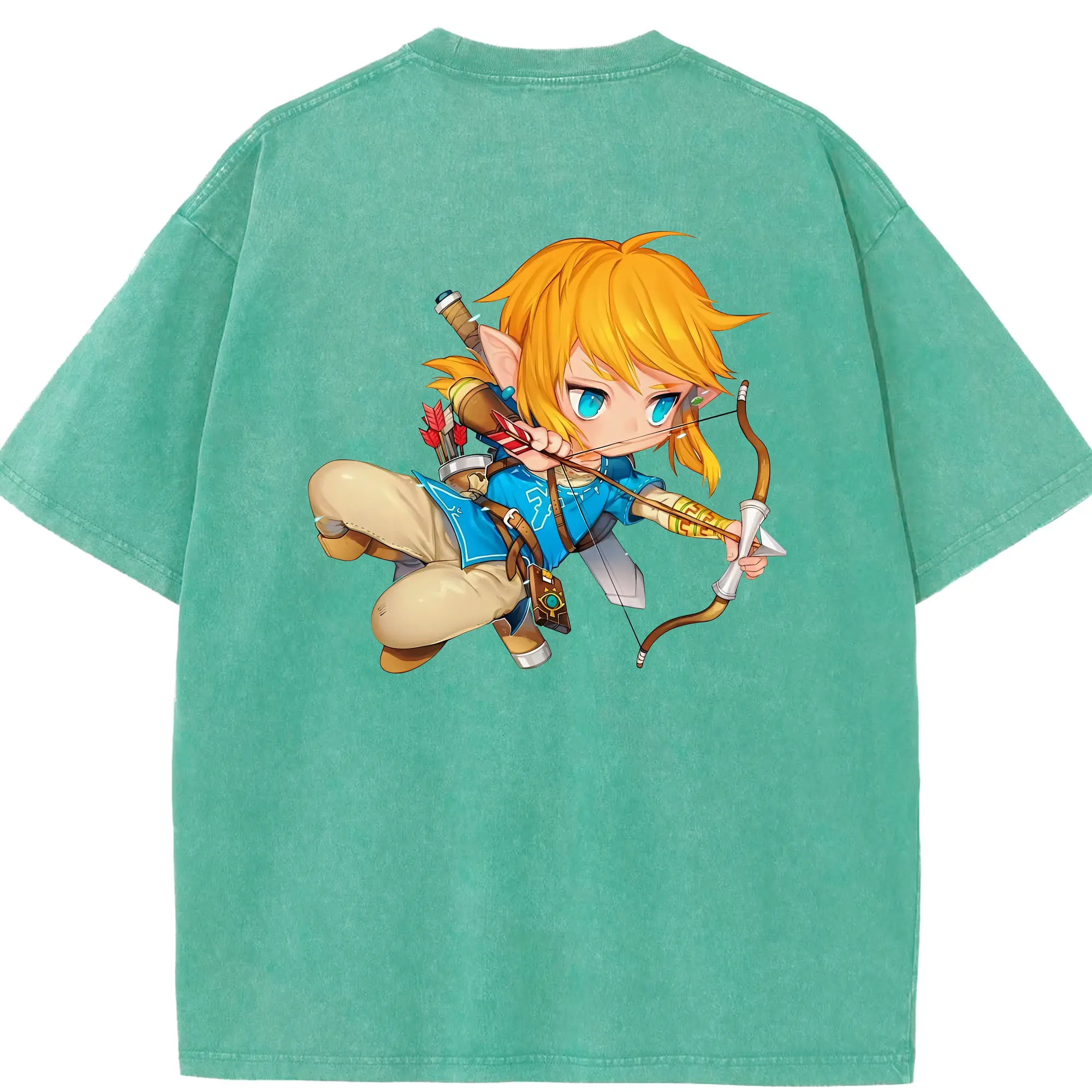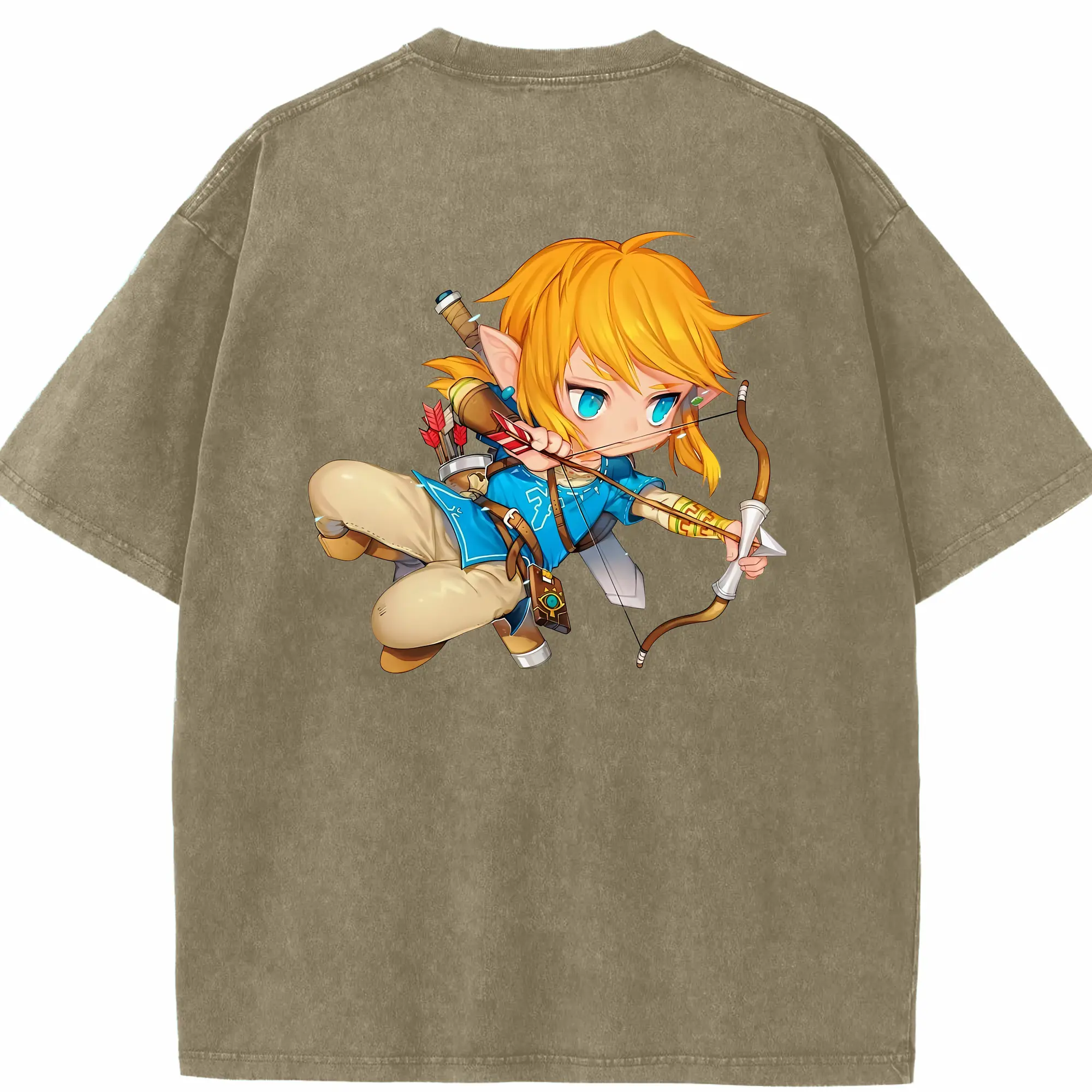 ゼルダの伝説 グッズ,リンク - 綿100% ヴィンテージ風 半袖Tシャツ ・ フロントプリント ・ 柔らか肌触り ・ 通気性 快適 ・ スポーツ カジュアル 外出用