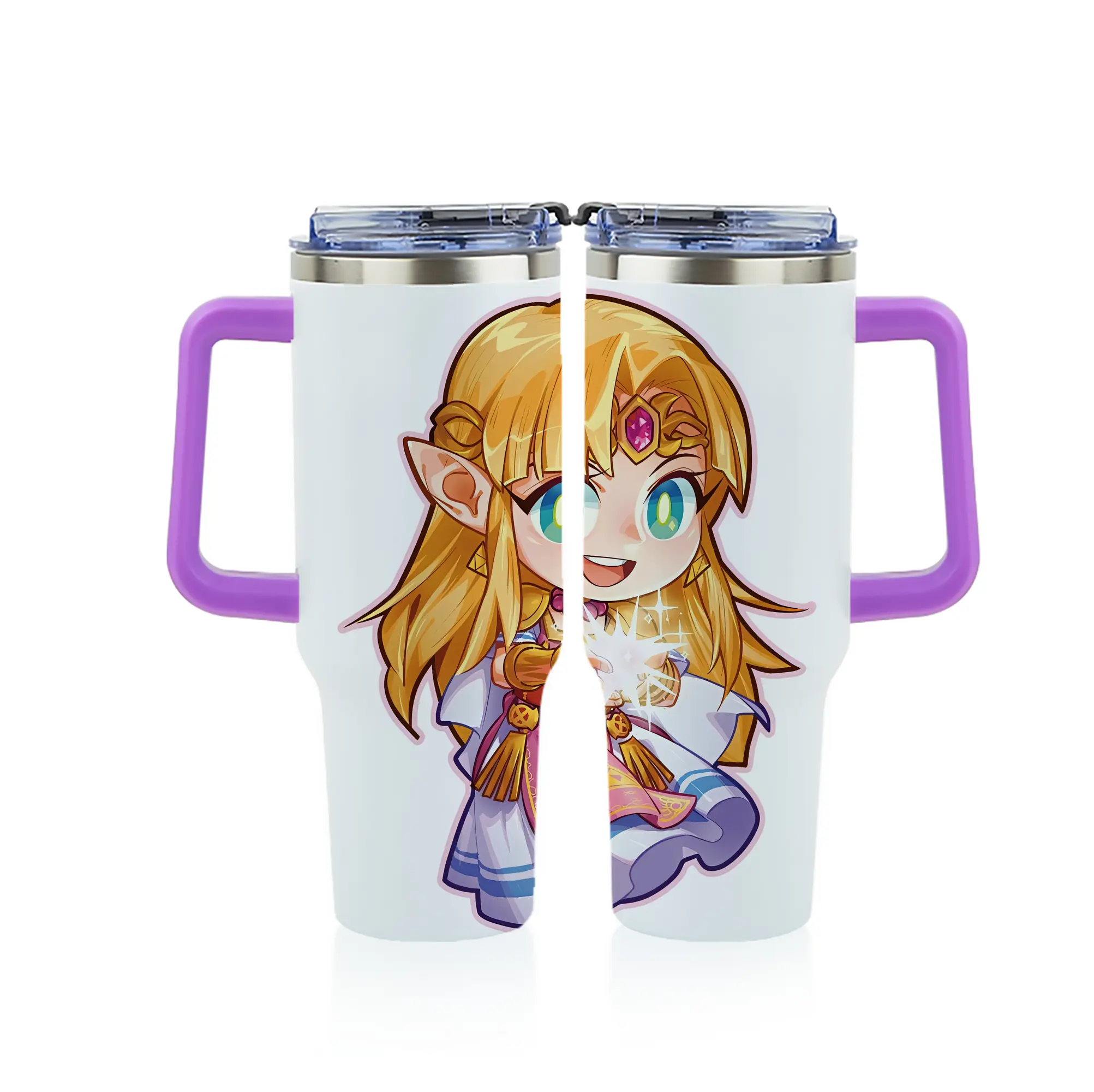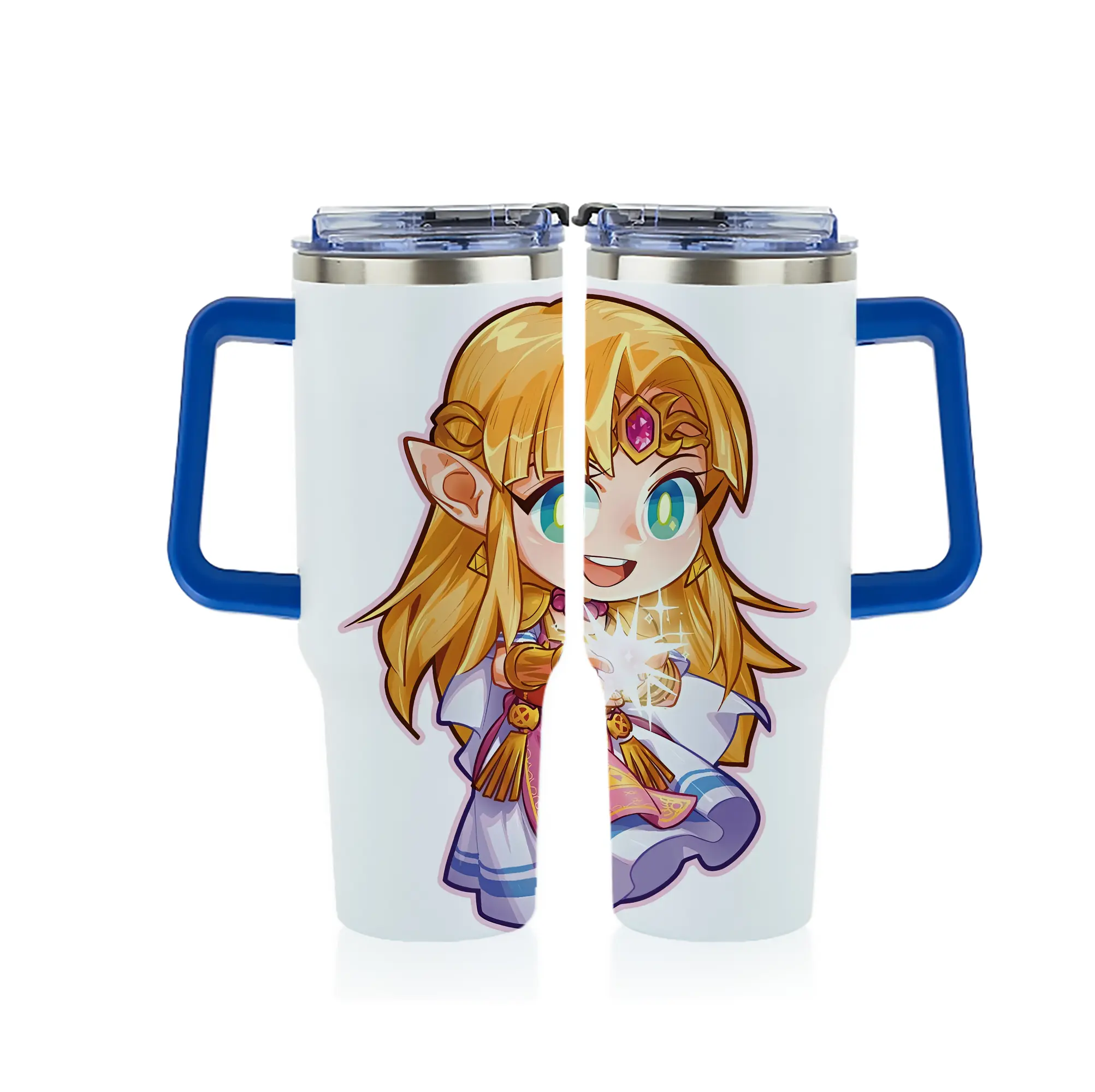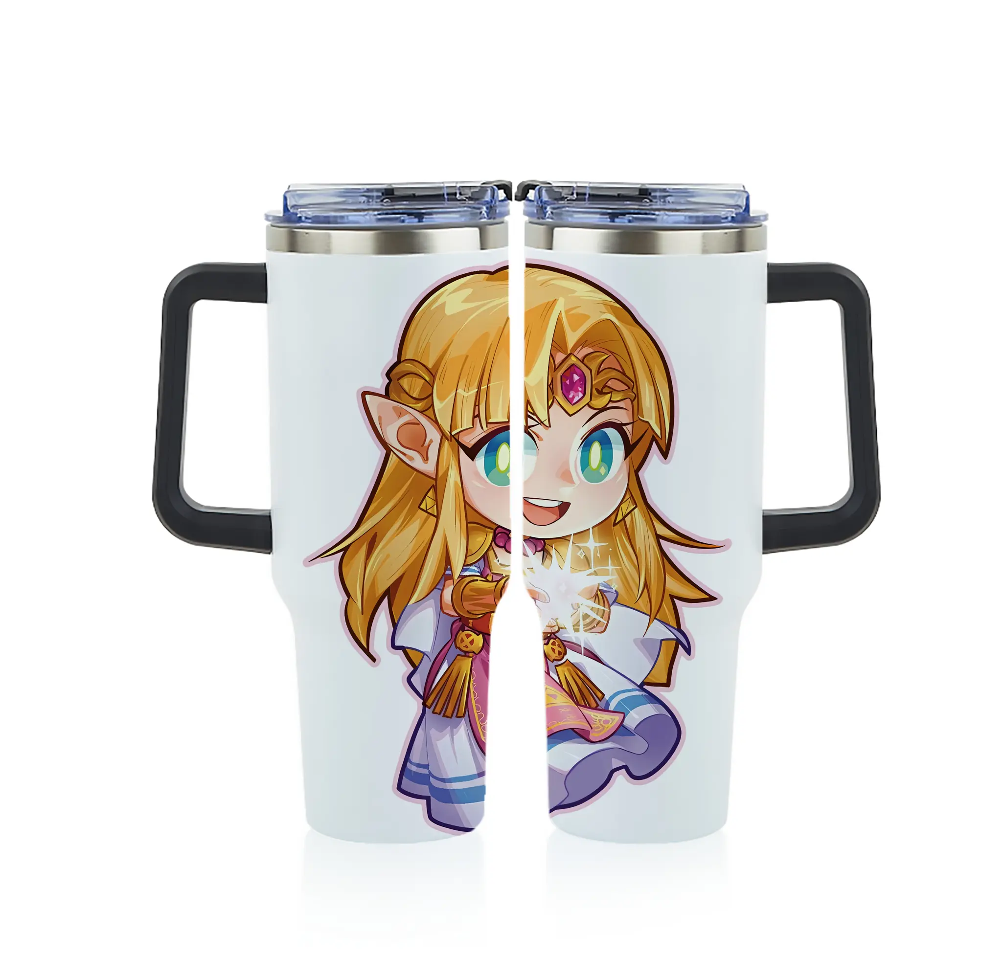 ゼルダの伝説 グッズ,ゼルダ姫 - 1200mL フルプリント車用タンブラー ・ 304ステンレス 内側 ・ 201ステンレス 外側 ・ 保温 保冷 ・ 通勤 ドライブ アウトドア用