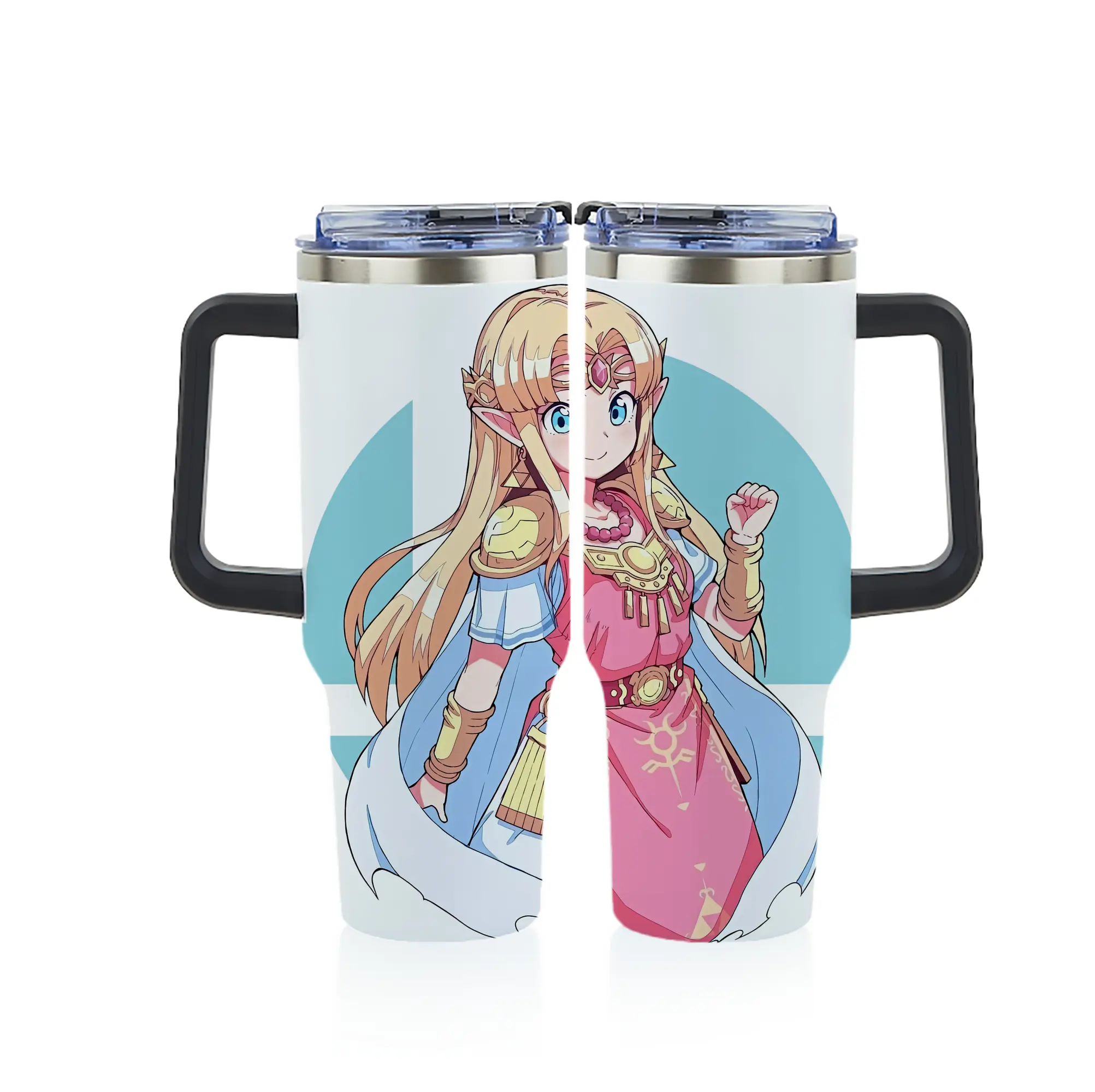 ゼルダの伝説 グッズ,ゼルダ姫 - 1200mL フルプリント車用タンブラー ・ 304ステンレス 内側 ・ 201ステンレス 外側 ・ 保温 保冷 ・ 通勤 ドライブ アウトドア用