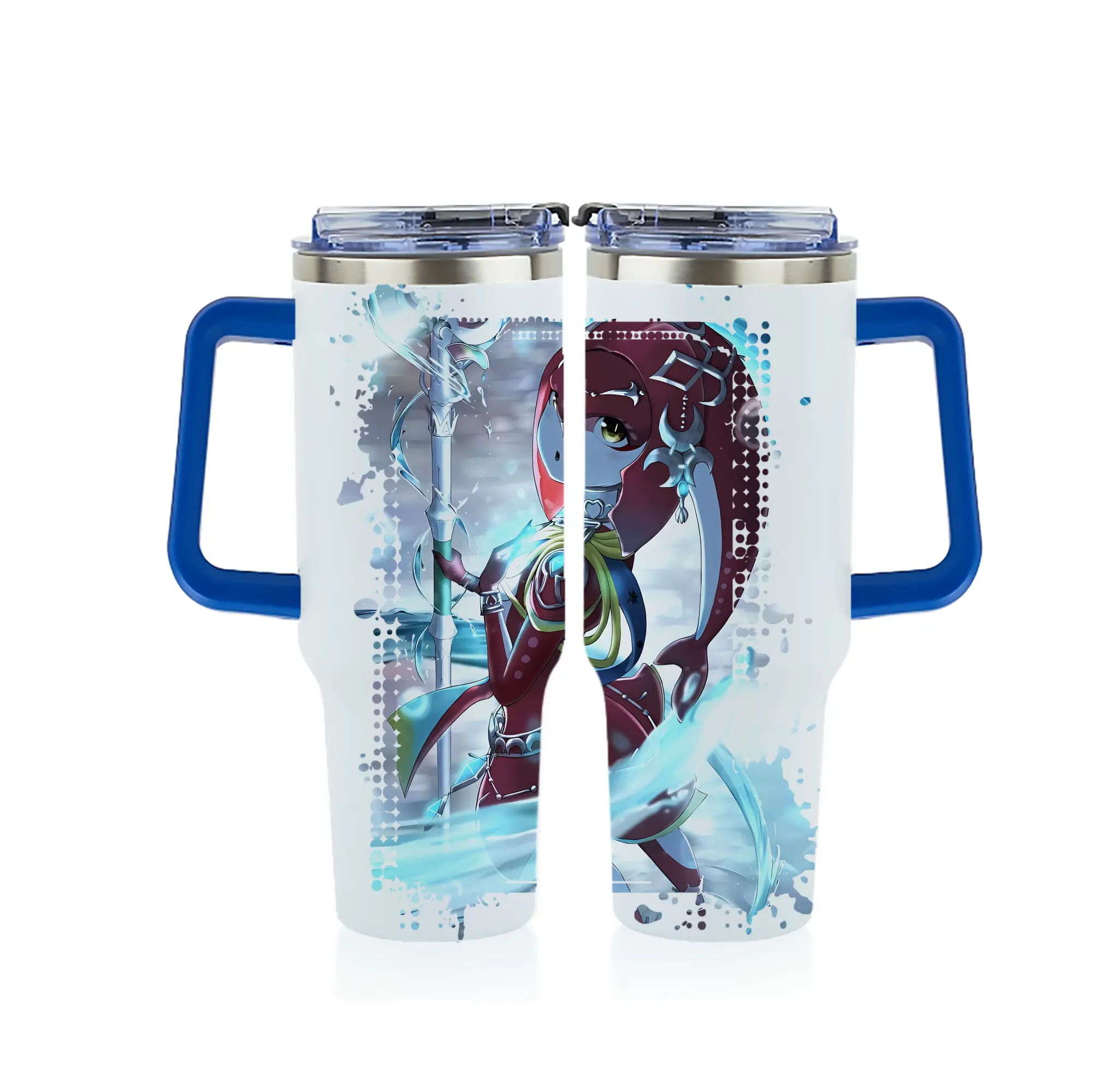 ゼルダの伝説 グッズ,Mipha - 1200mL フルプリント車用タンブラー ・ 304ステンレス 内側 ・ 201ステンレス 外側 ・ 保温 保冷 ・ 通勤 ドライブ アウトドア用