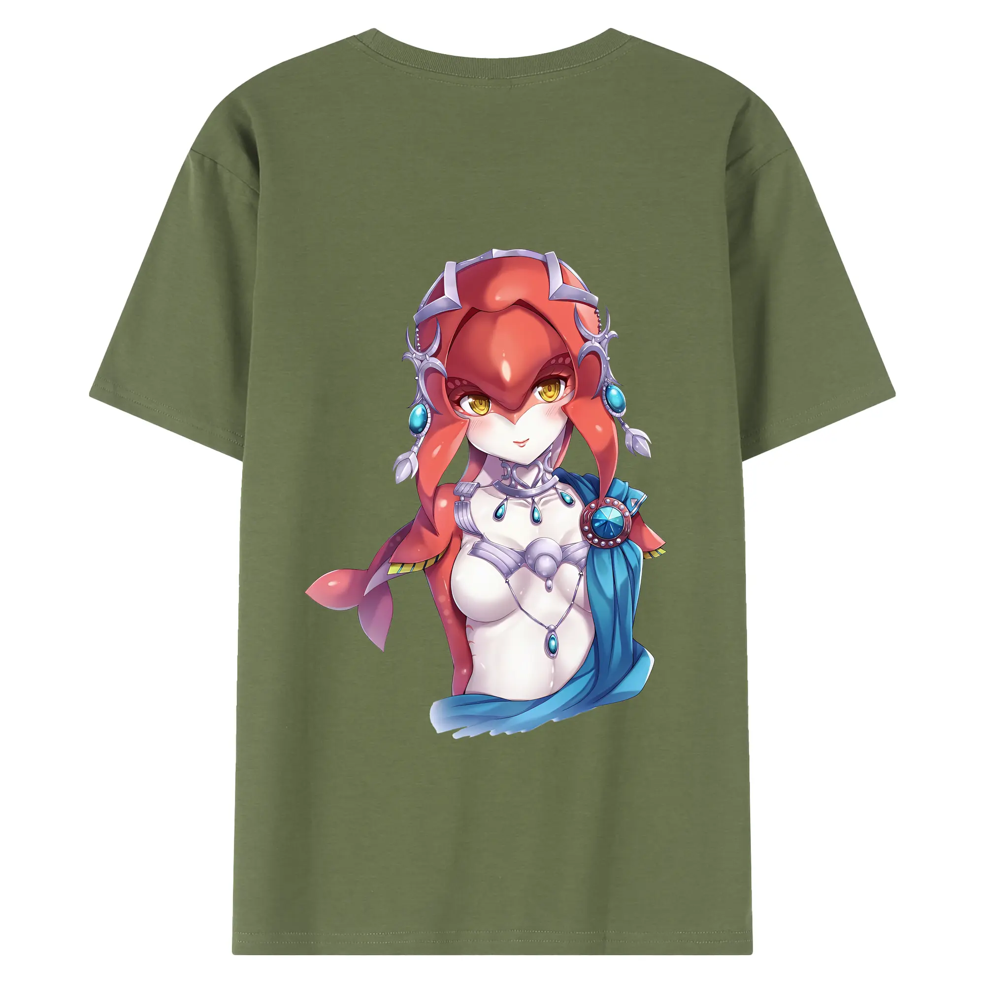 ゼルダの伝説 グッズ,Mipha - 綿100% 半袖Tシャツ ・ フロントプリント ・ 快適 通気性 ・ 日常使い 散歩 スポーツ用