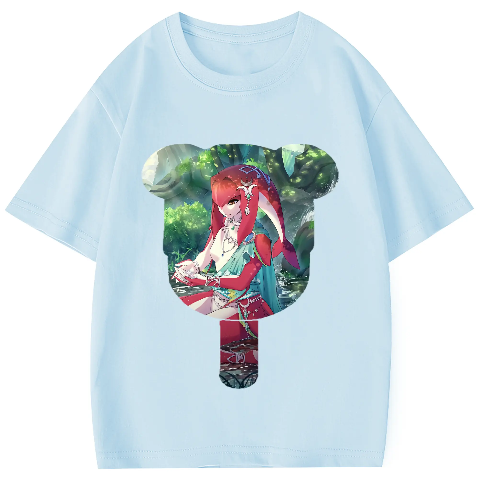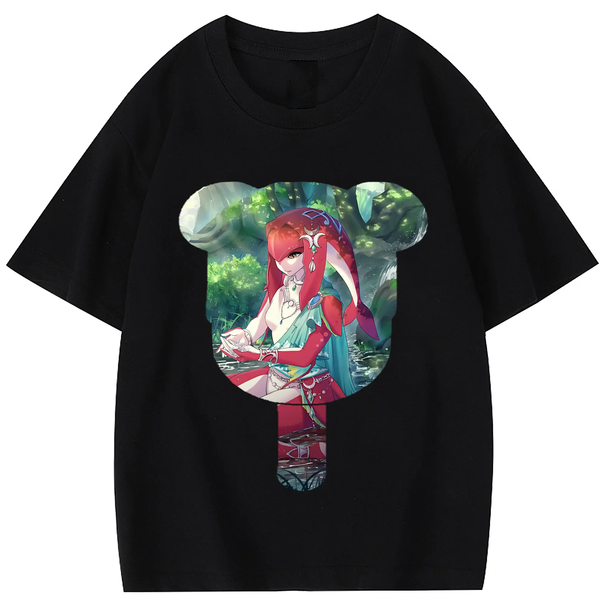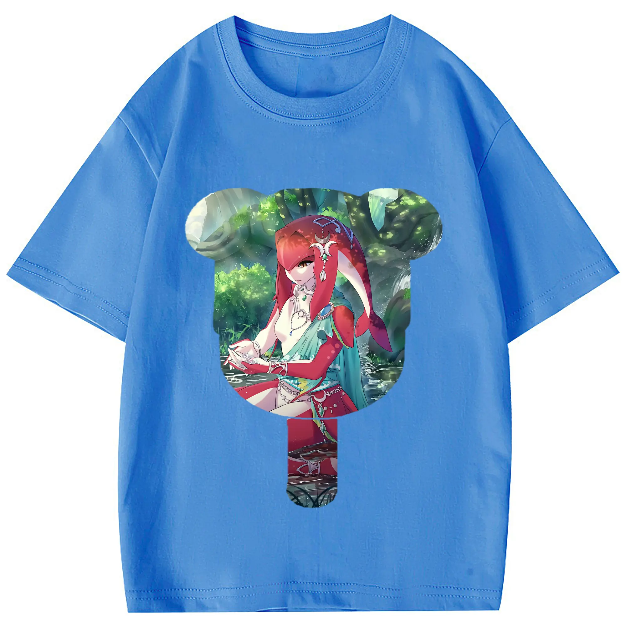 ゼルダの伝説 グッズ,Mipha - 綿100% 半袖Tシャツ ・ フロントプリント ・ 快適 通気性 ・ 日常使い 散歩 スポーツ用