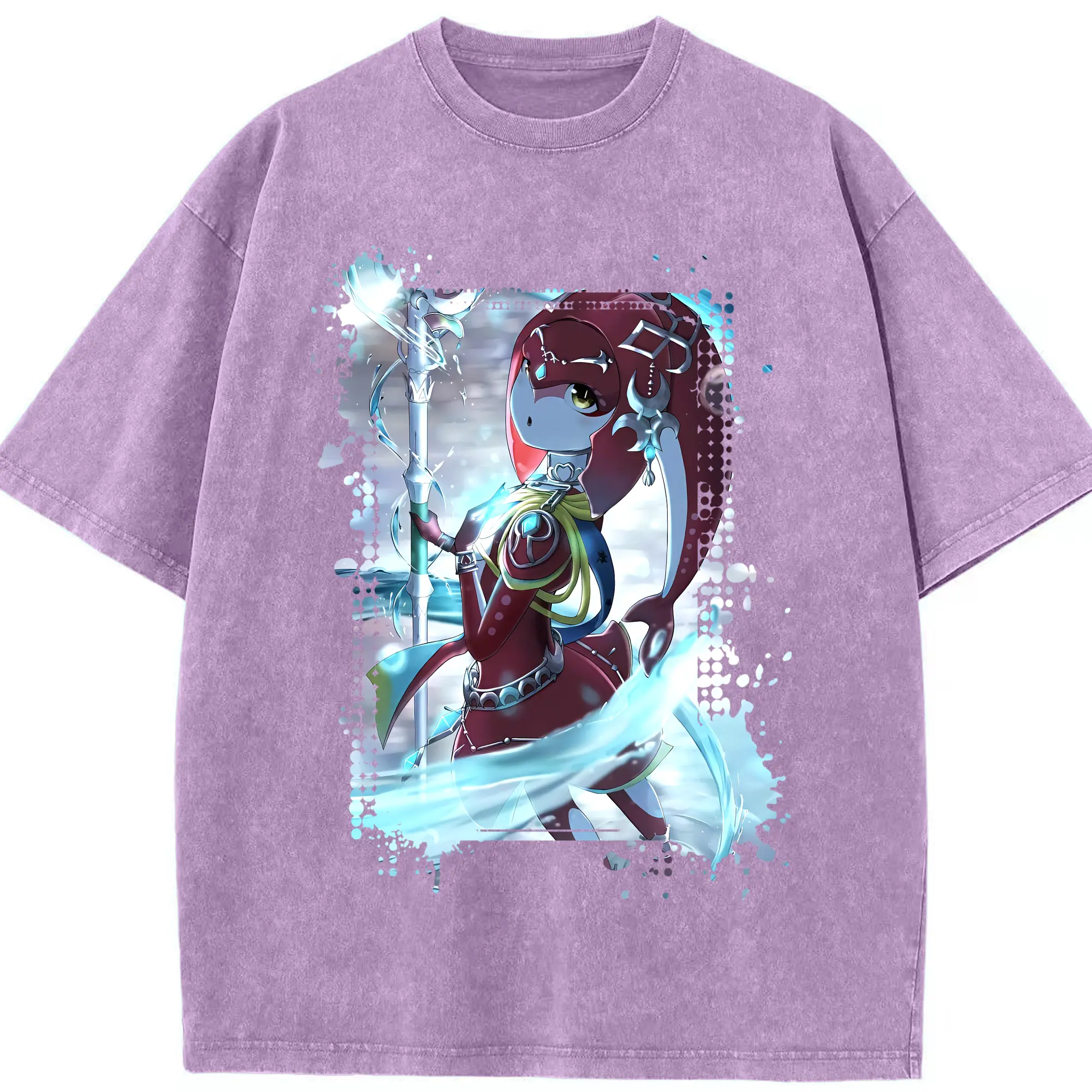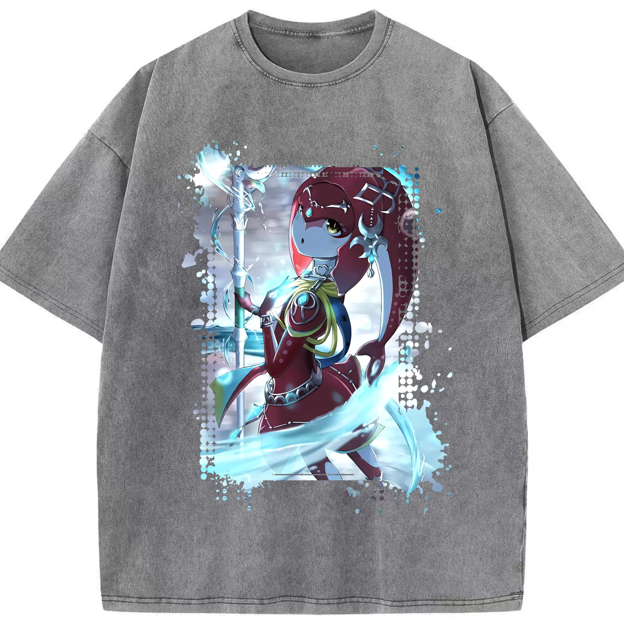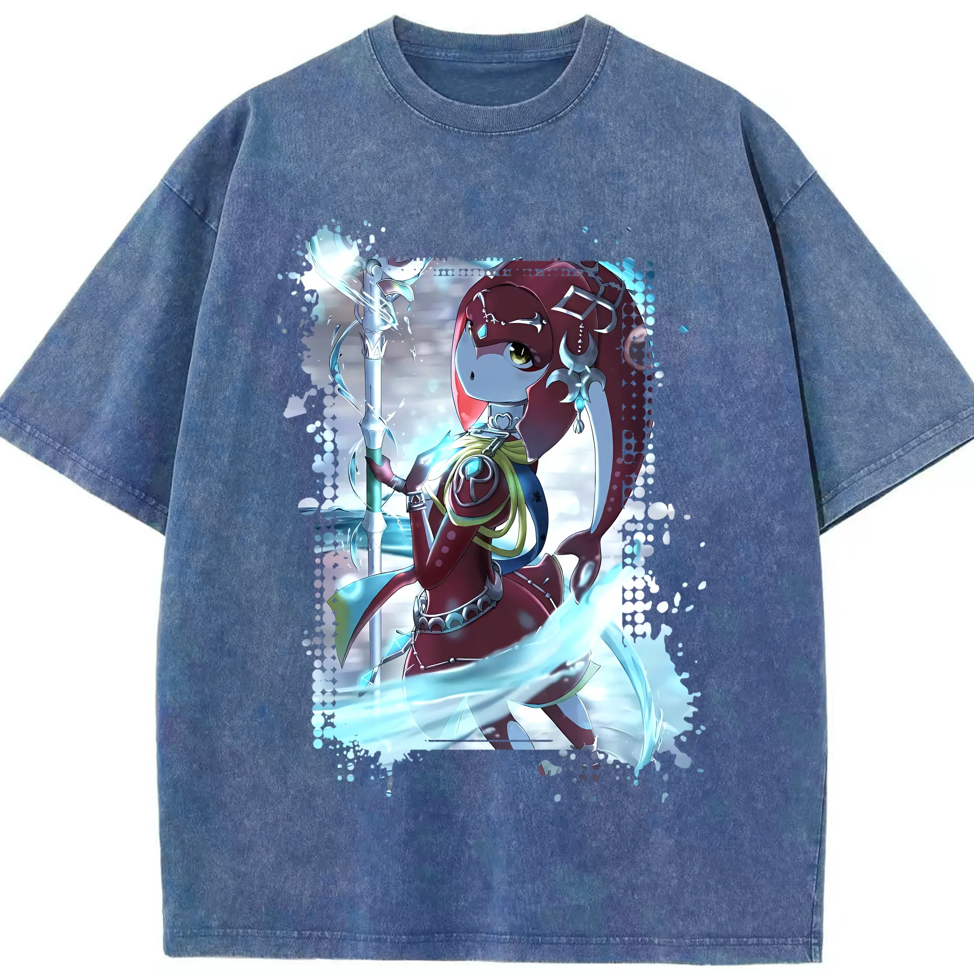 ゼルダの伝説 グッズ,Mipha - 綿100% ヴィンテージ風 半袖Tシャツ ・ 背面プリント ・ 柔らか肌触り ・ 通気性 快適 ・ スポーツ カジュアル 外出用