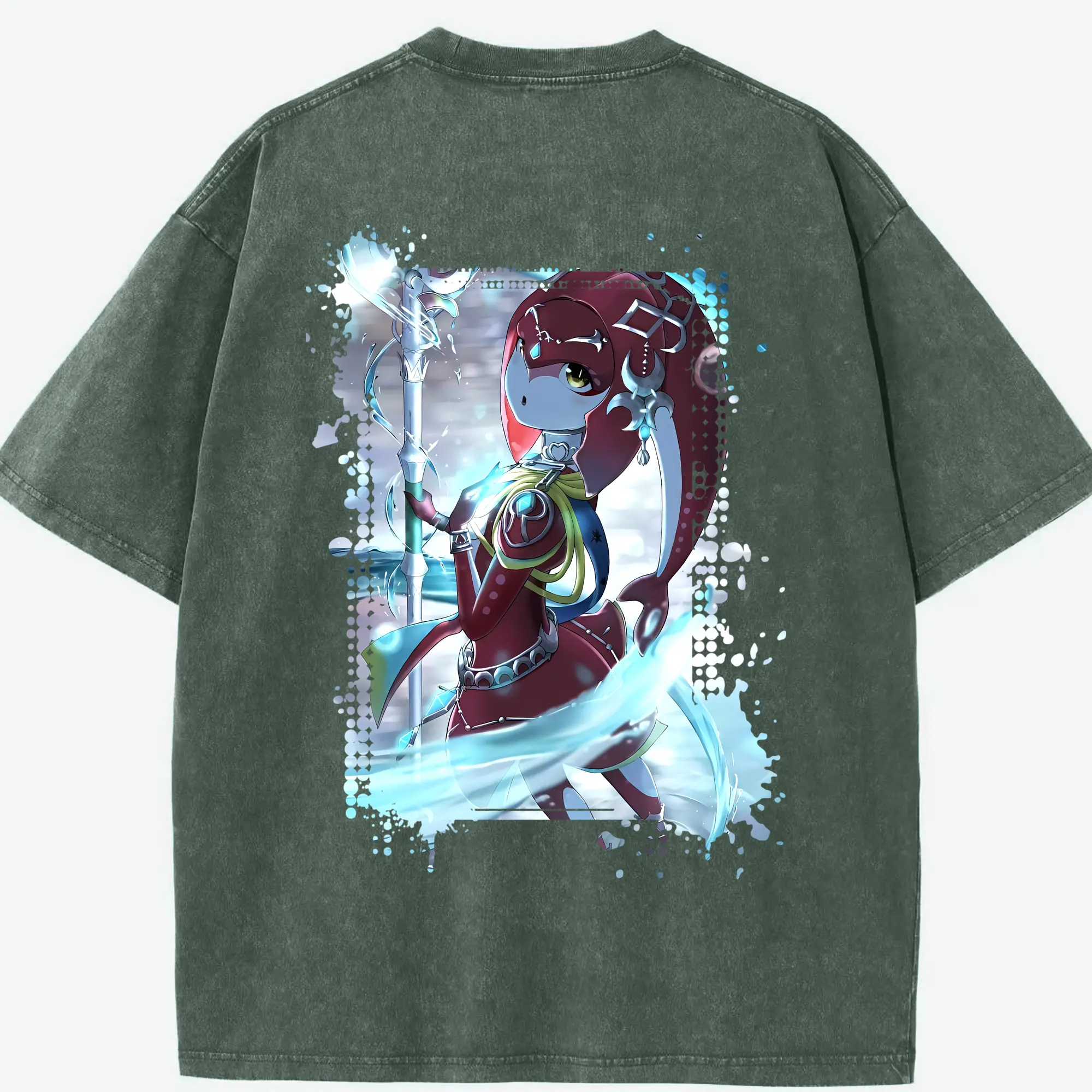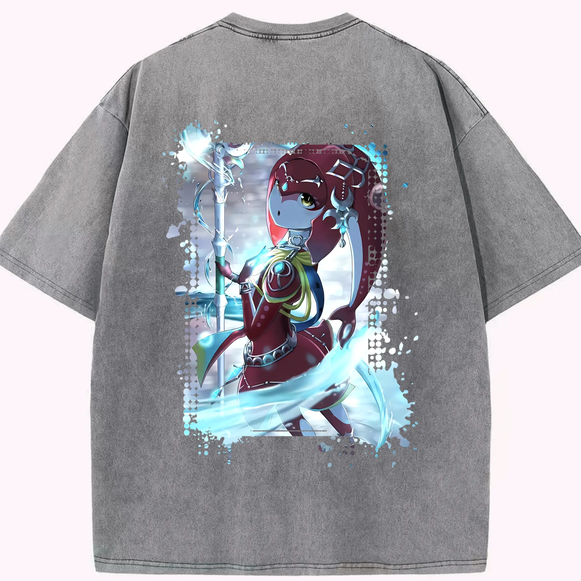 ゼルダの伝説 グッズ,Mipha - 綿100% ヴィンテージ風 半袖Tシャツ ・ フロントプリント ・ 柔らか肌触り ・ 通気性 快適 ・ スポーツ カジュアル 外出用