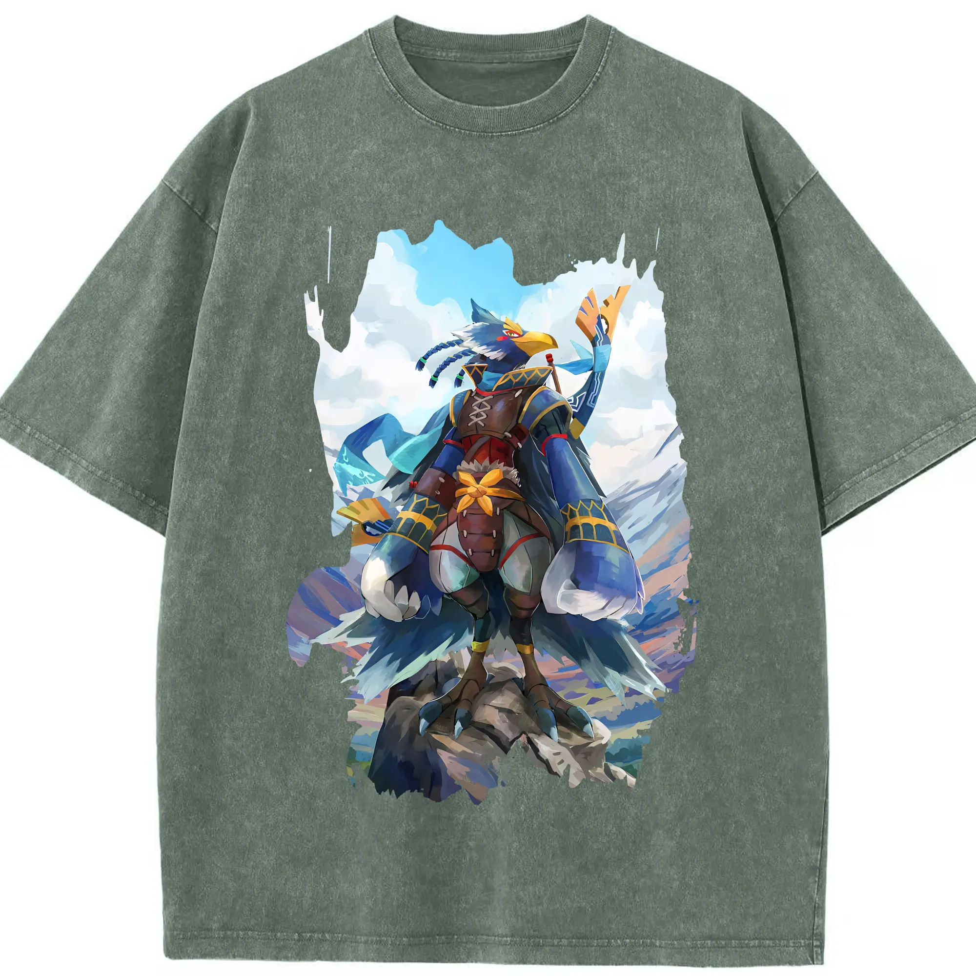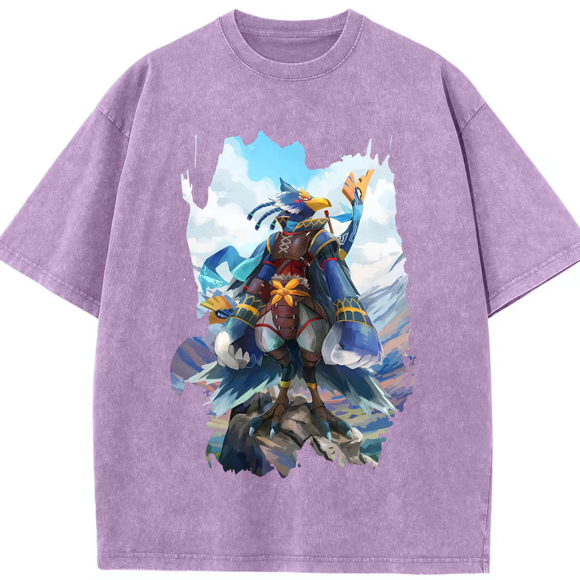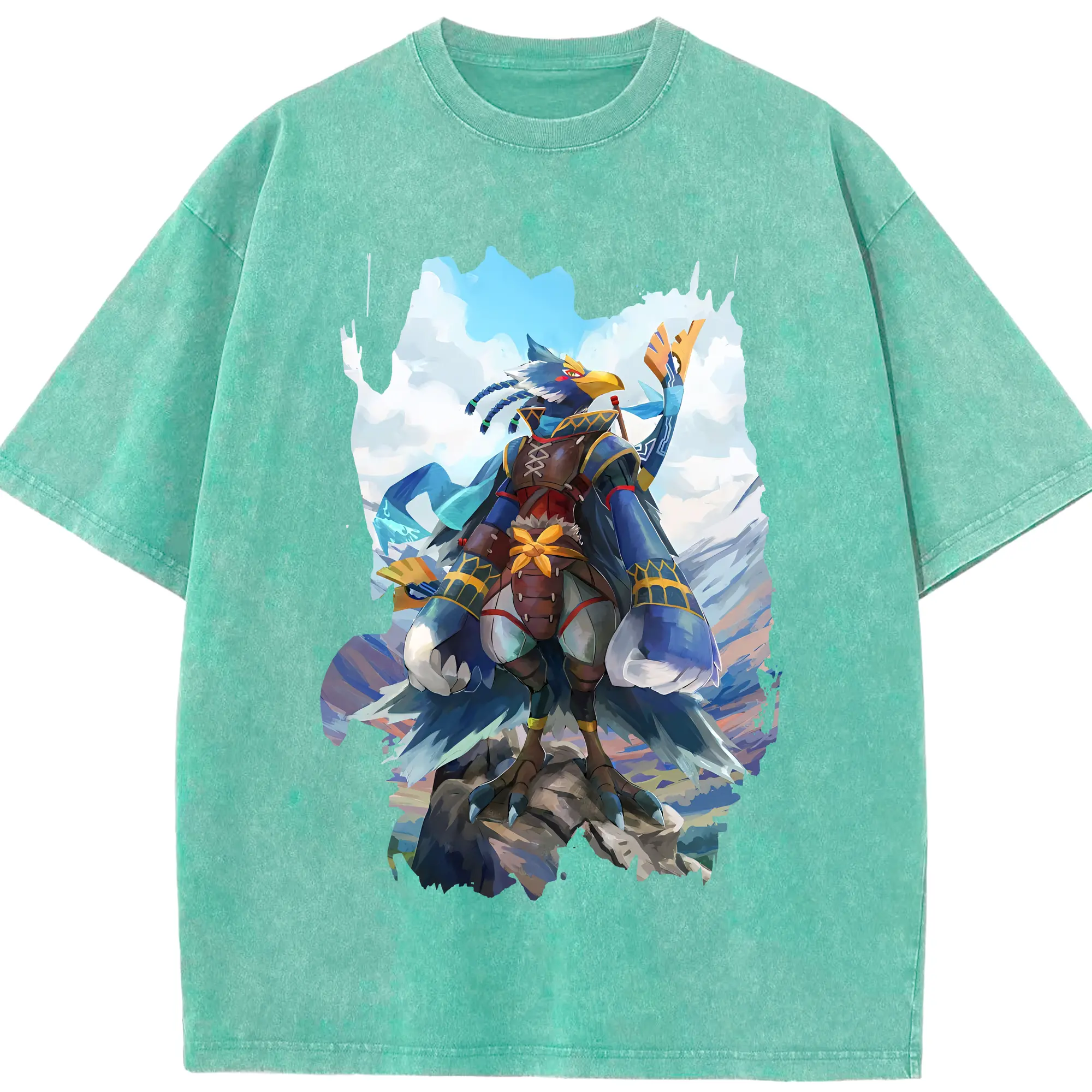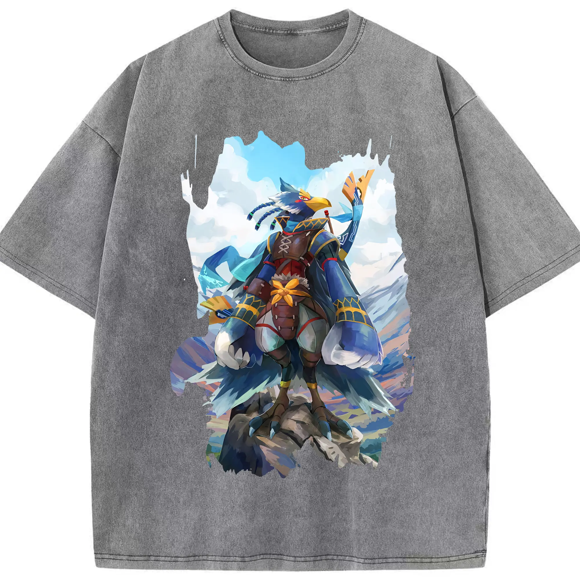 ゼルダの伝説 グッズ,Revali - 綿100% ヴィンテージ風 半袖Tシャツ ・ 背面プリント ・ 柔らか肌触り ・ 通気性 快適 ・ スポーツ カジュアル 外出用