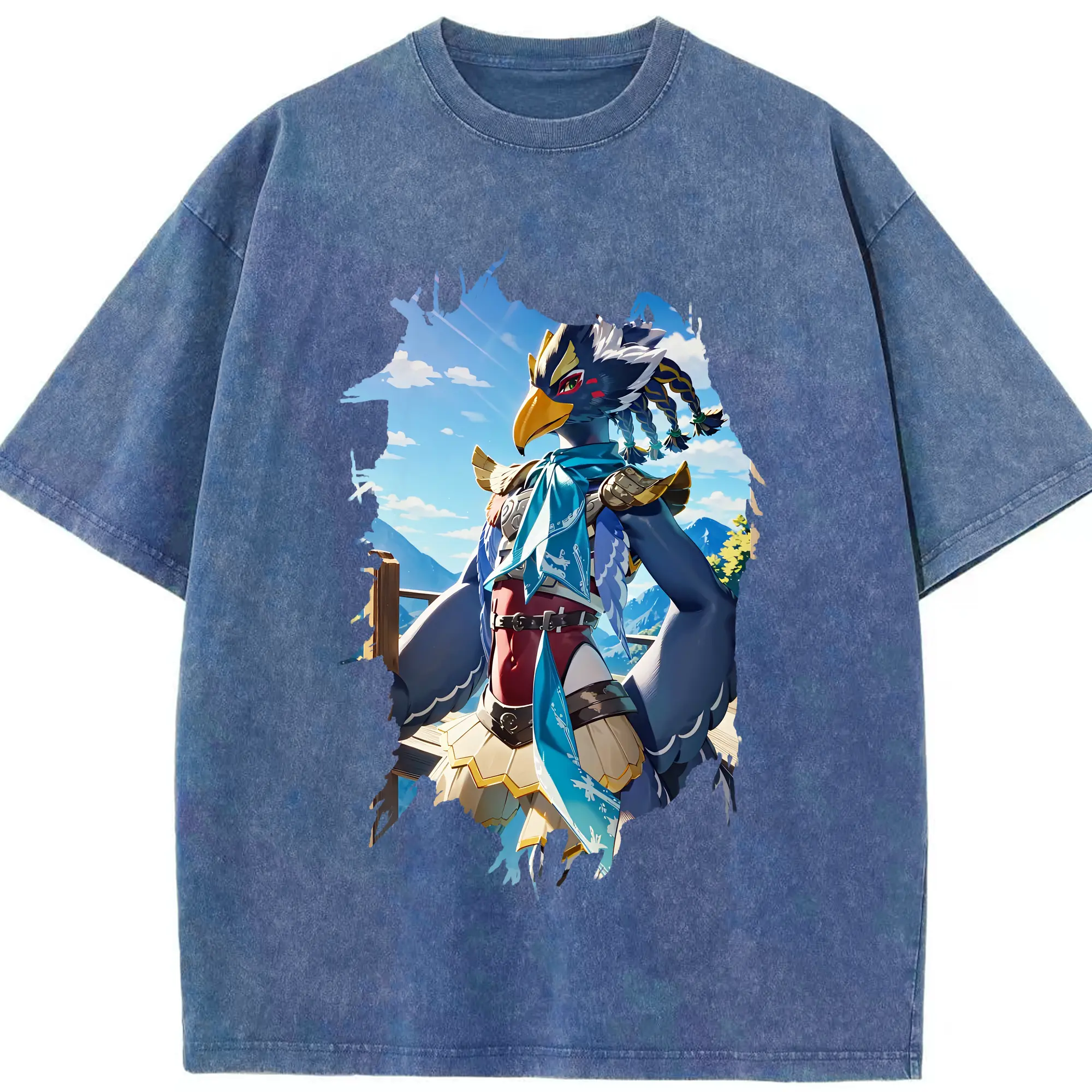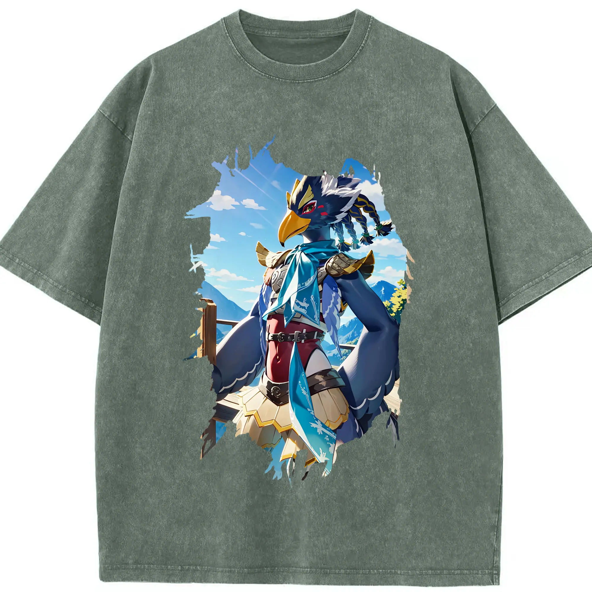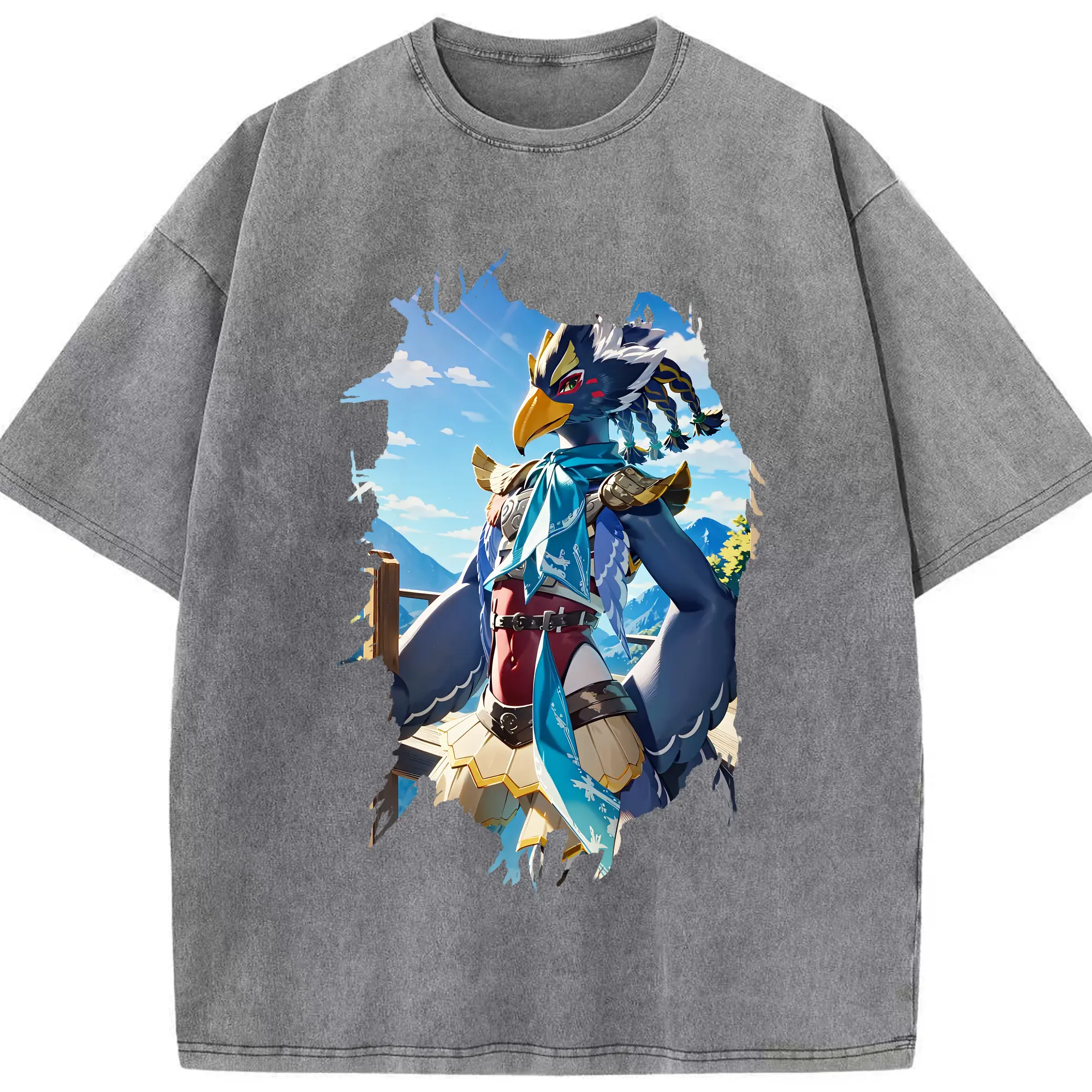 ゼルダの伝説 グッズ,Revali - 綿100% ヴィンテージ風 半袖Tシャツ ・ 背面プリント ・ 柔らか肌触り ・ 通気性 快適 ・ スポーツ カジュアル 外出用