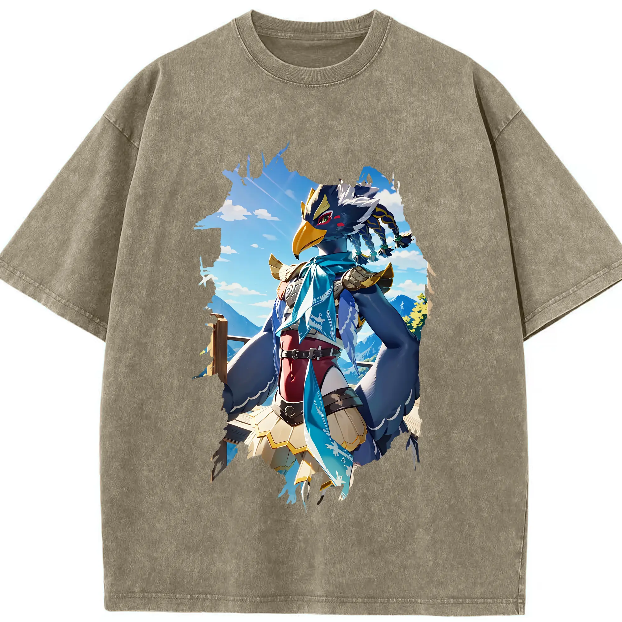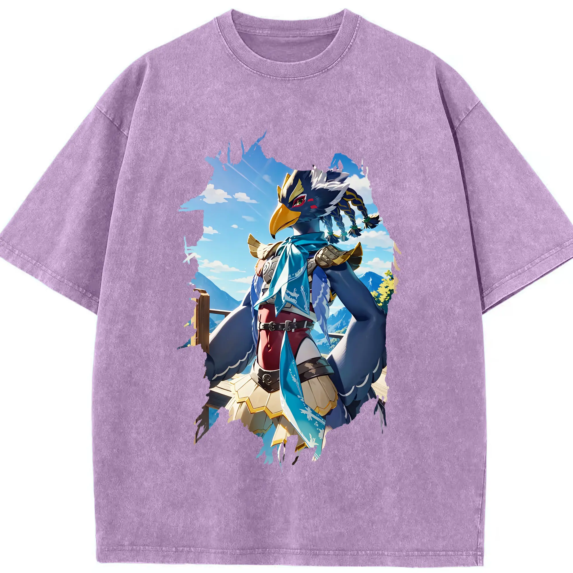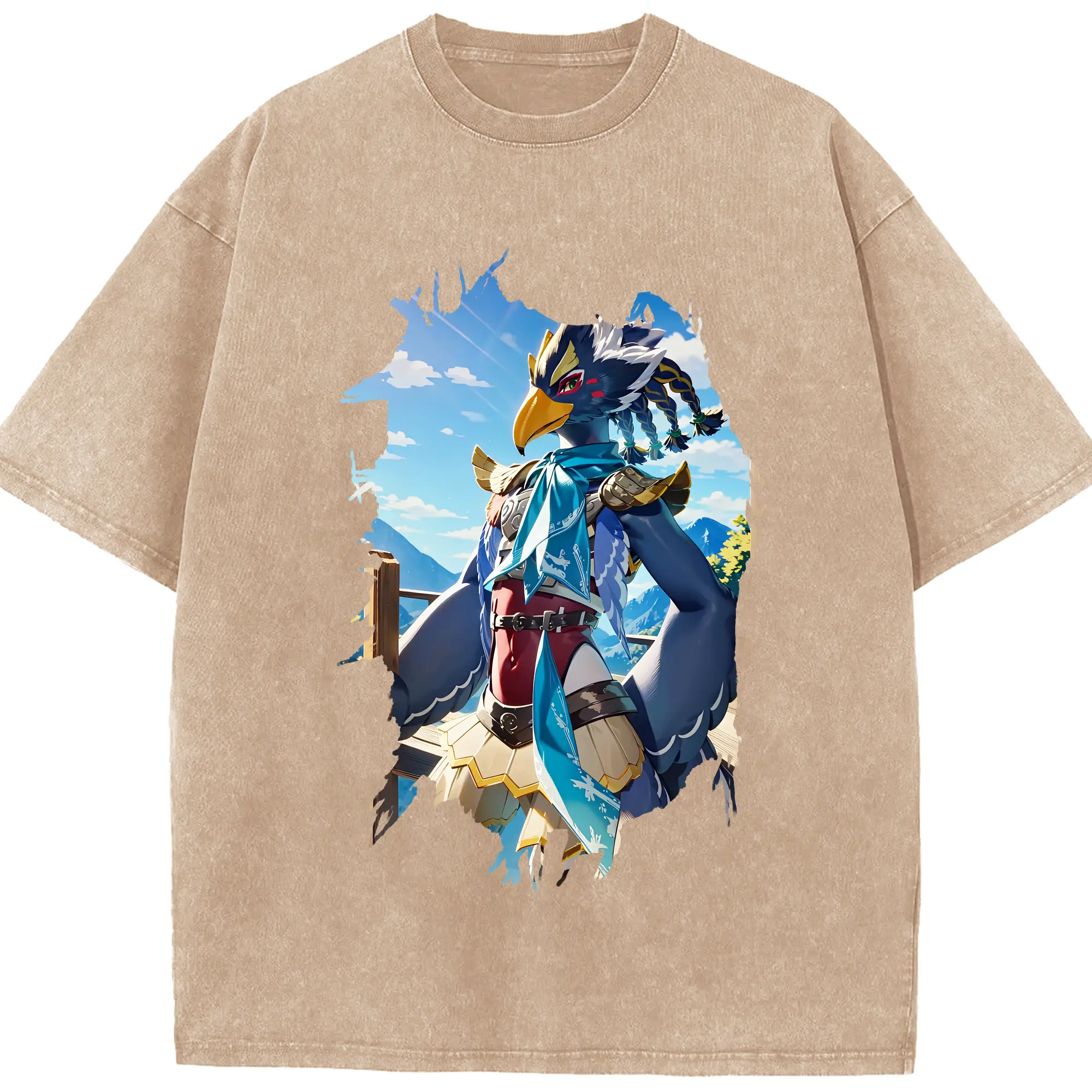 ゼルダの伝説 グッズ,Revali - 綿100% ヴィンテージ風 半袖Tシャツ ・ 背面プリント ・ 柔らか肌触り ・ 通気性 快適 ・ スポーツ カジュアル 外出用