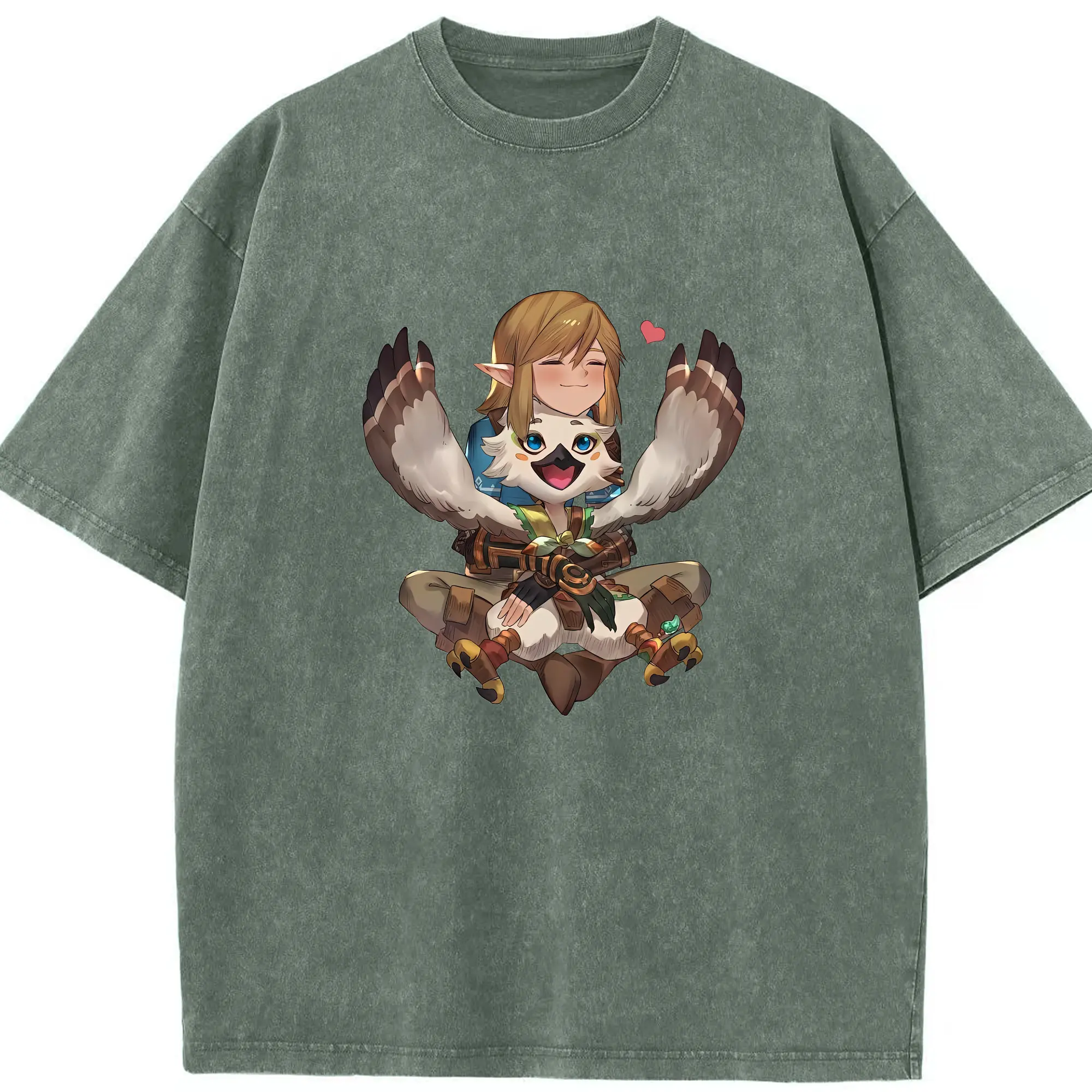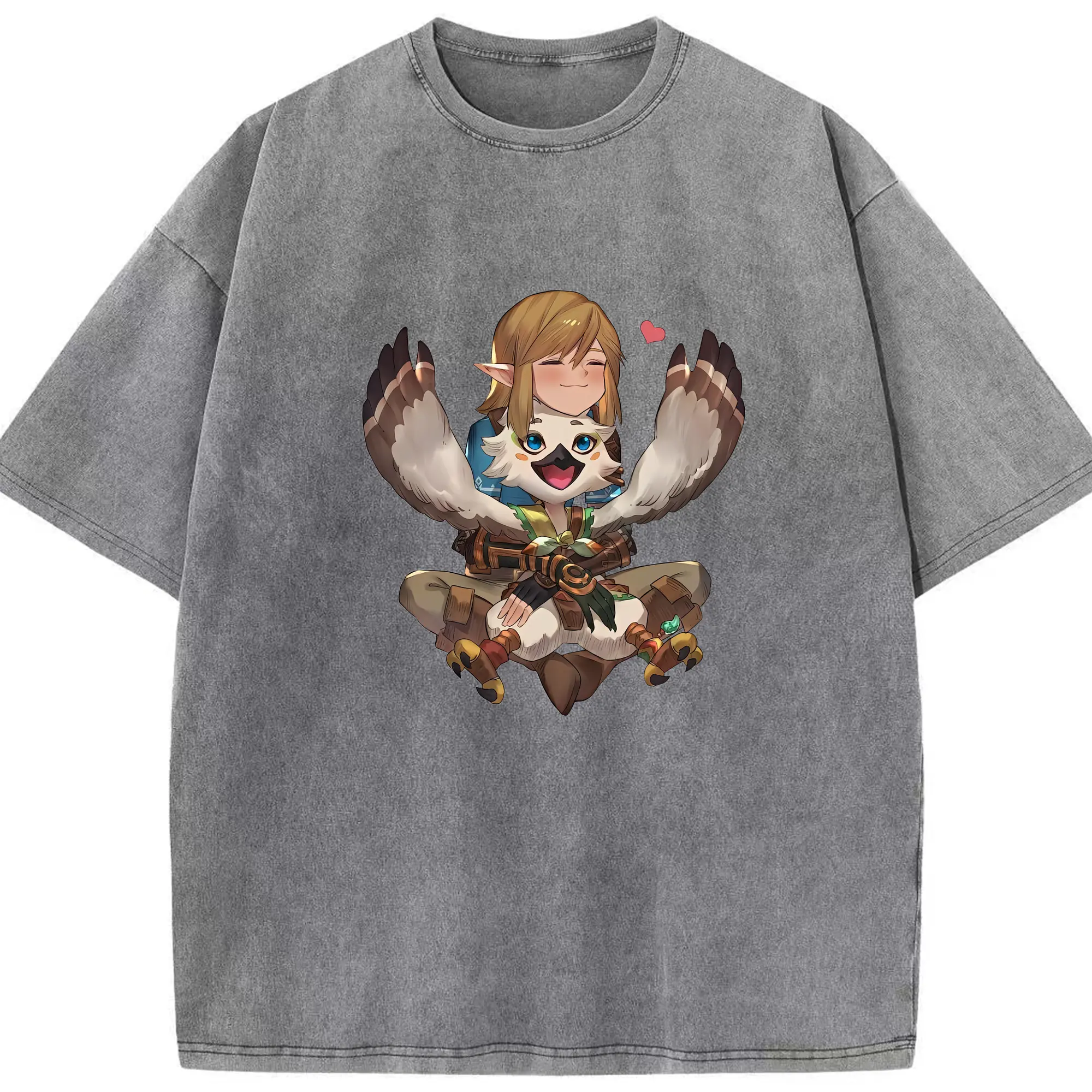 ゼルダの伝説 グッズ,Revali - 綿100% ヴィンテージ風 半袖Tシャツ ・ 背面プリント ・ 柔らか肌触り ・ 通気性 快適 ・ スポーツ カジュアル 外出用
