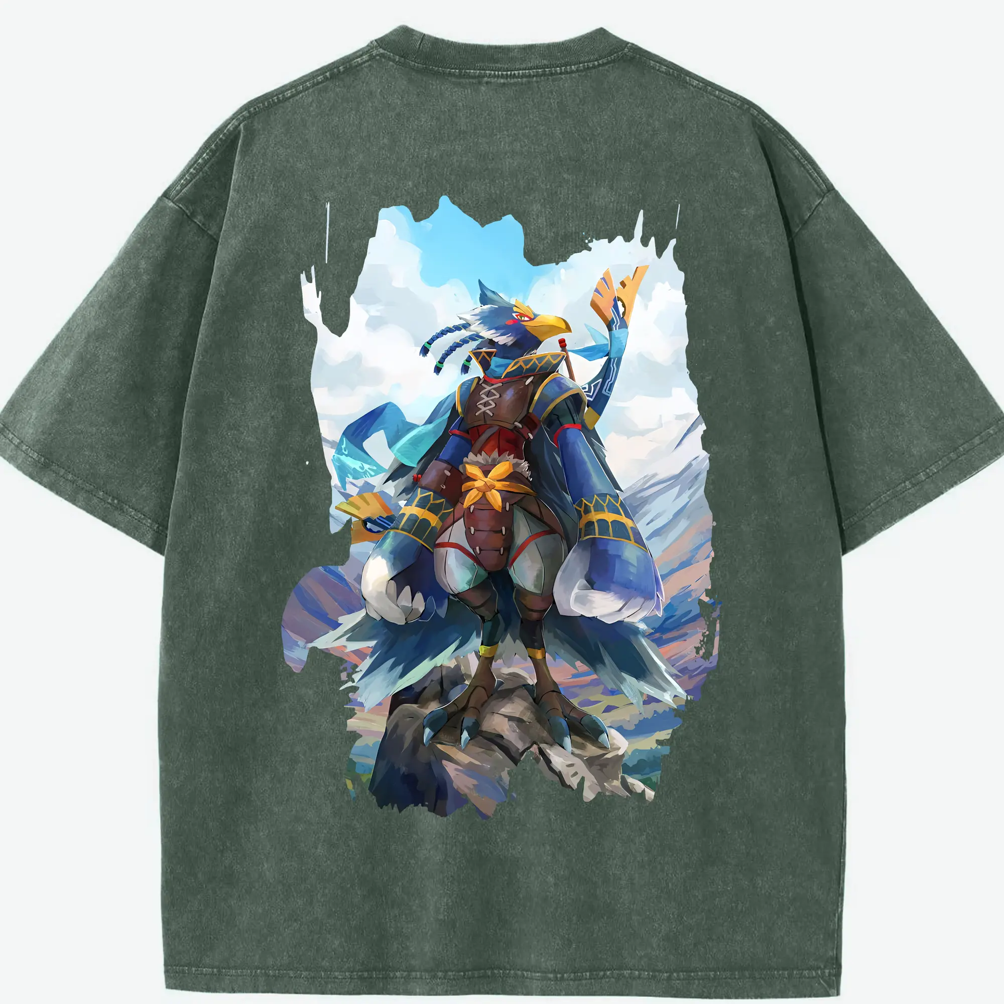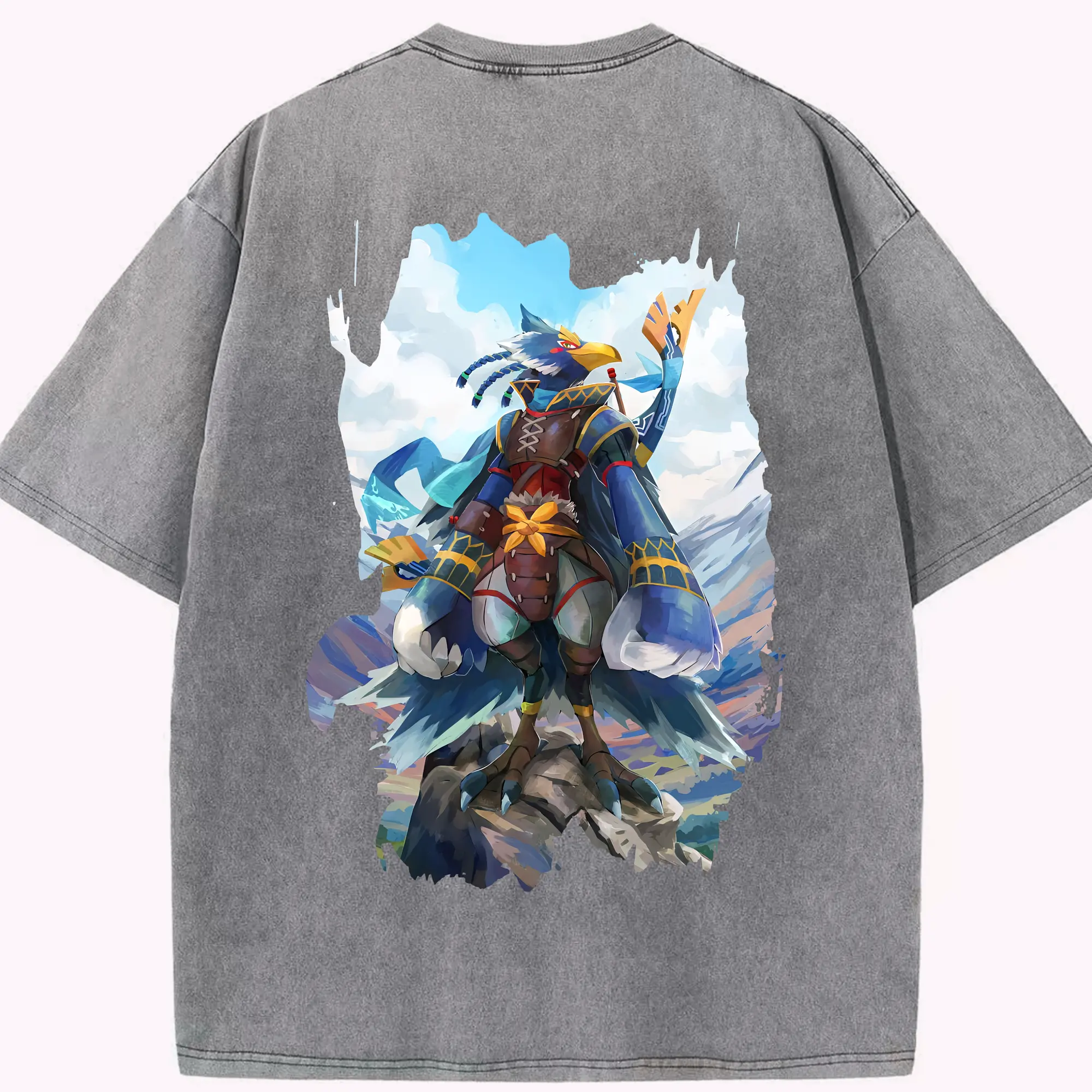 ゼルダの伝説 グッズ,Revali - 綿100% ヴィンテージ風 半袖Tシャツ ・ フロントプリント ・ 柔らか肌触り ・ 通気性 快適 ・ スポーツ カジュアル 外出用