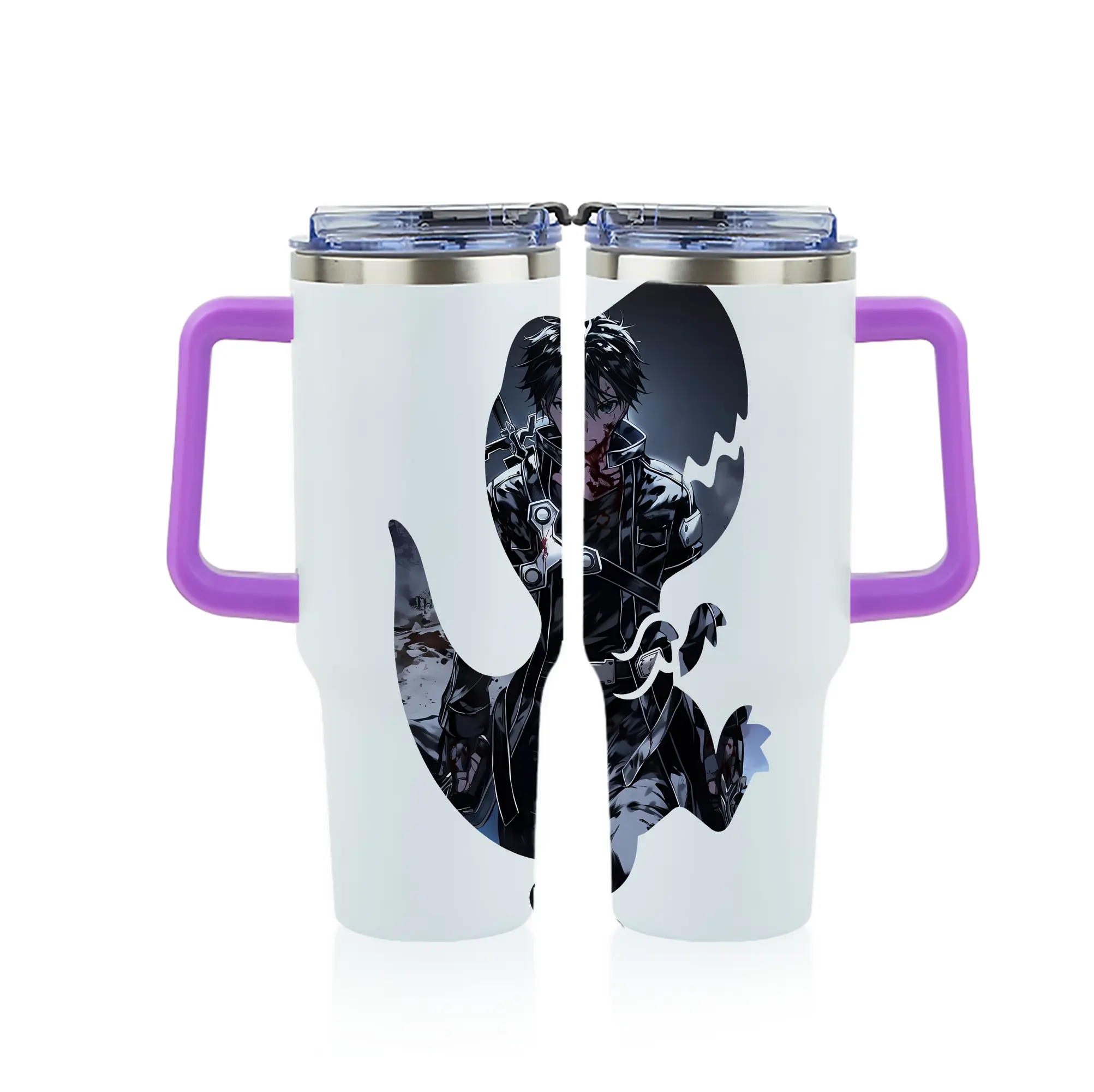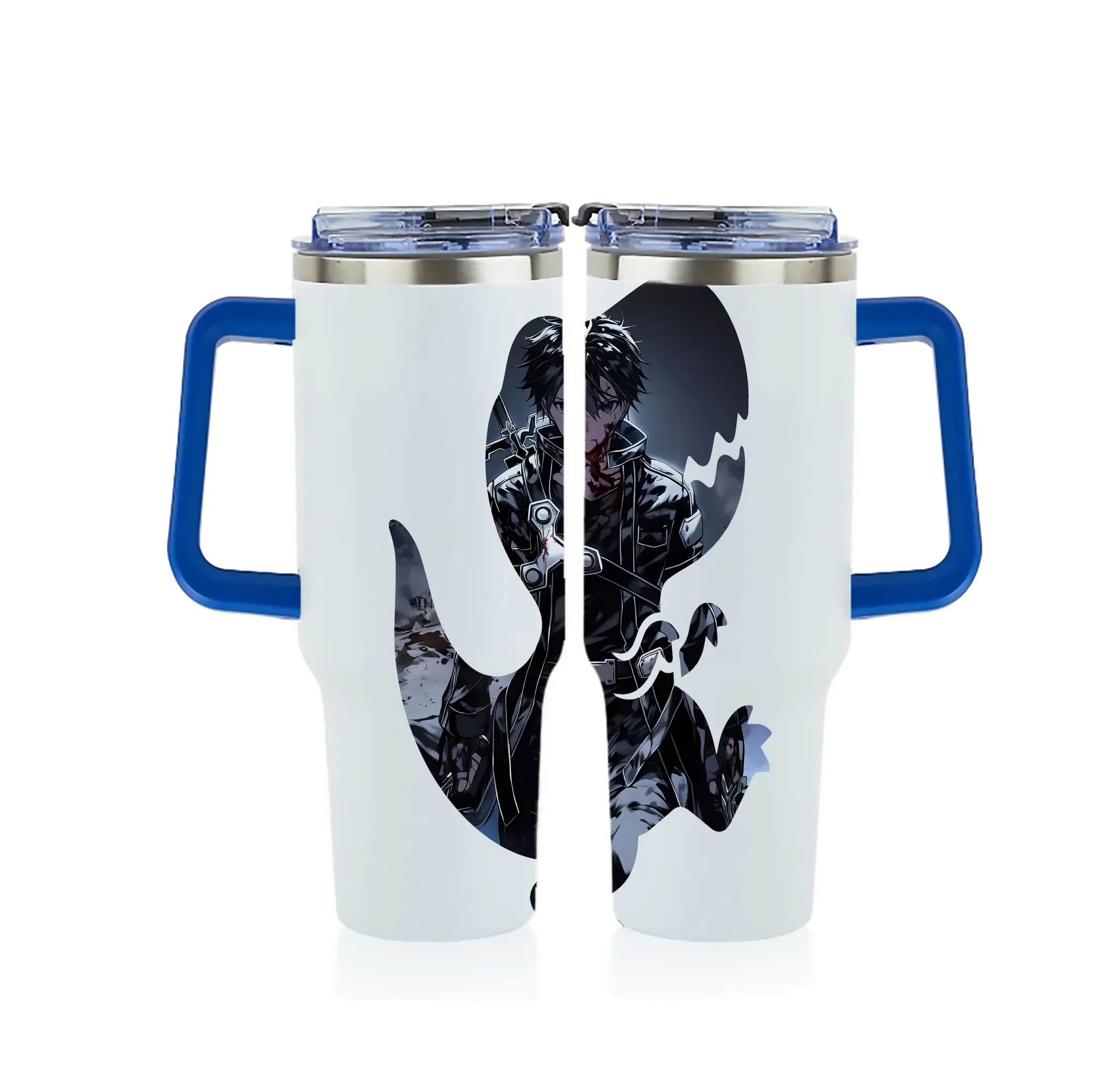 ソードアートオンライン グッズ キリト - 1200mL フルプリント車用タンブラー ・ 304ステンレス 内側 ・ 201ステンレス 外側 ・ 保温 保冷 ・ 通勤 ドライブ アウトドア用