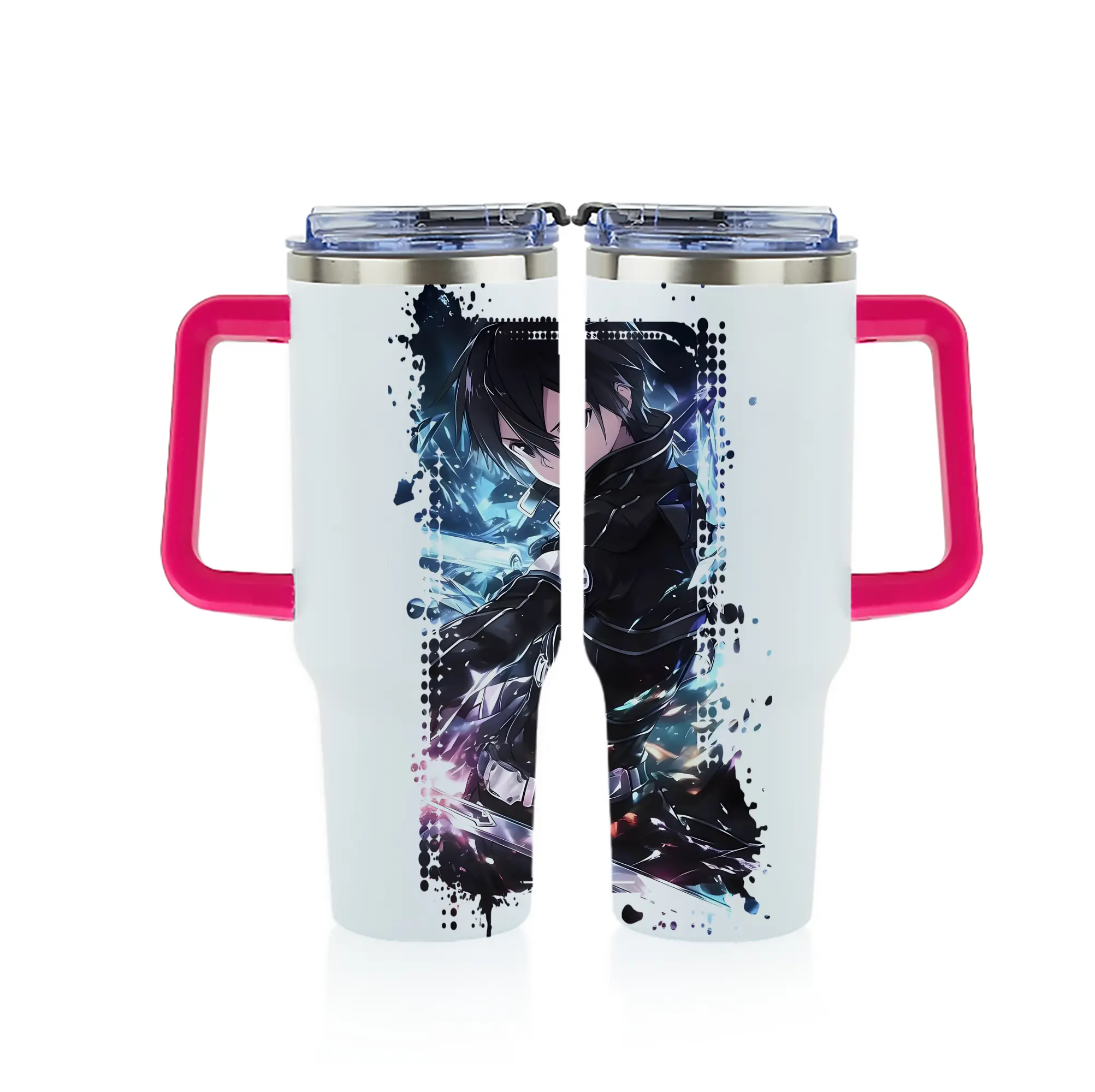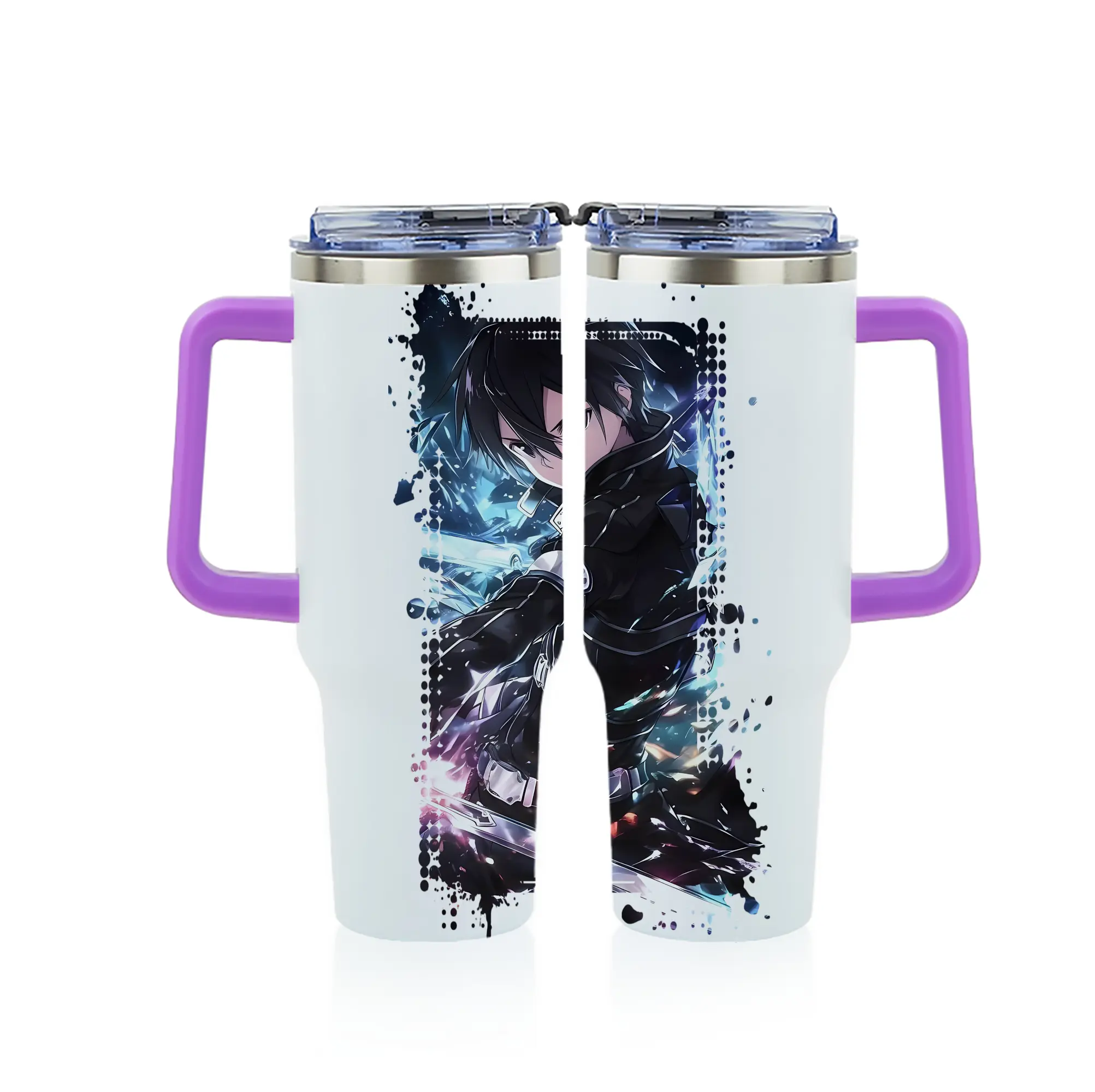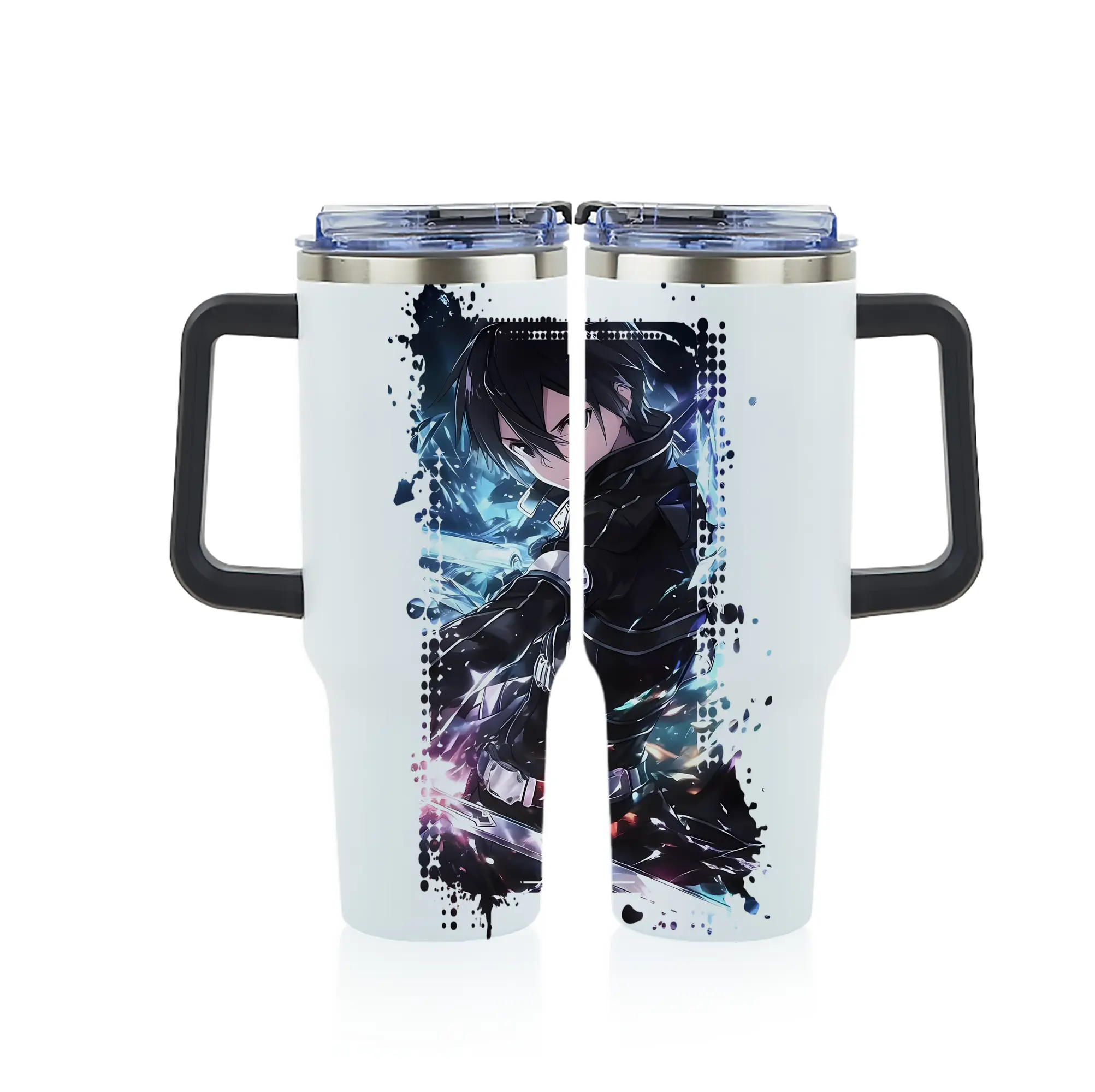 ソードアートオンライン グッズ キリト - 1200mL フルプリント車用タンブラー ・ 304ステンレス 内側 ・ 201ステンレス 外側 ・ 保温 保冷 ・ 通勤 ドライブ アウトドア用
