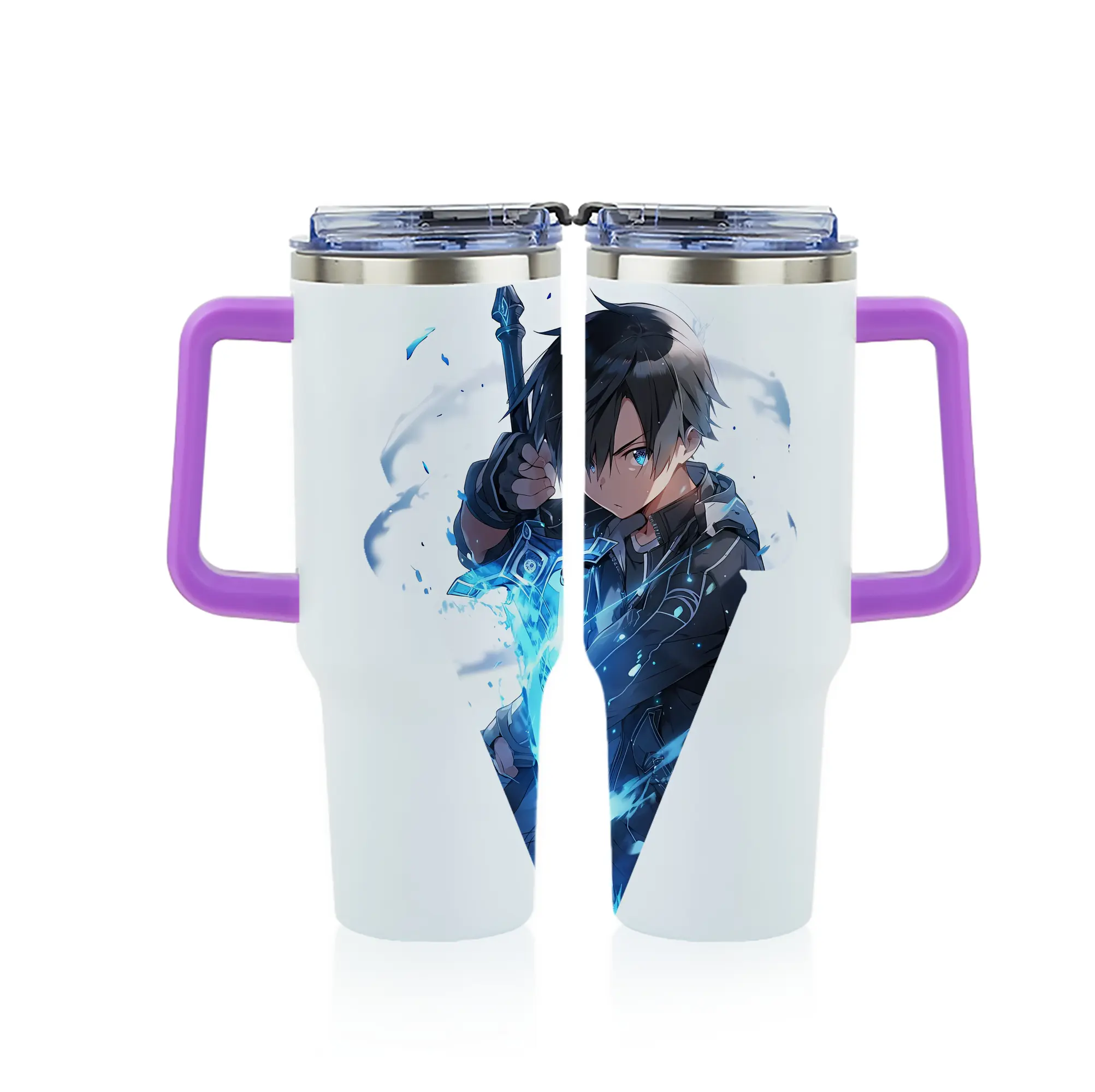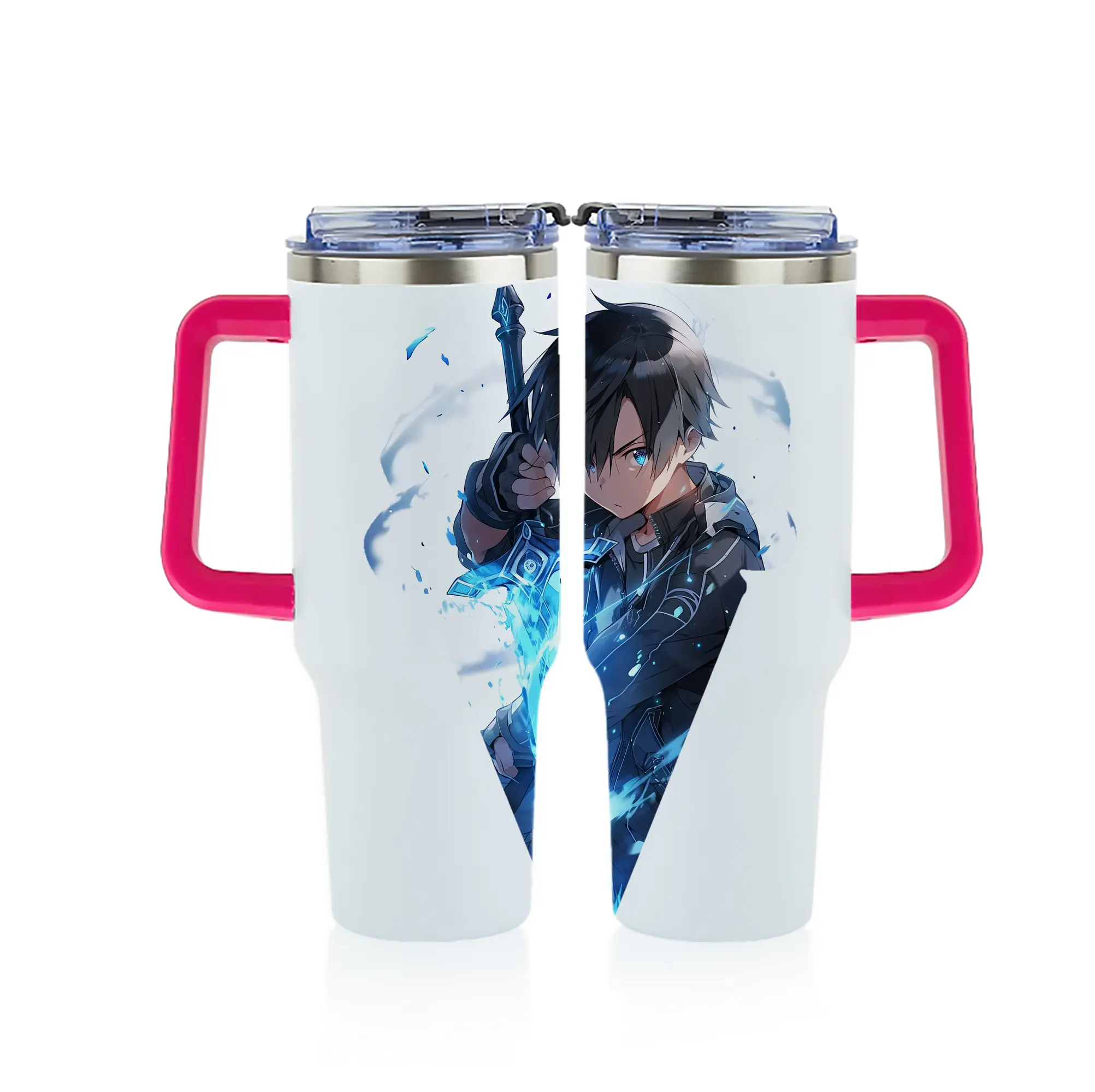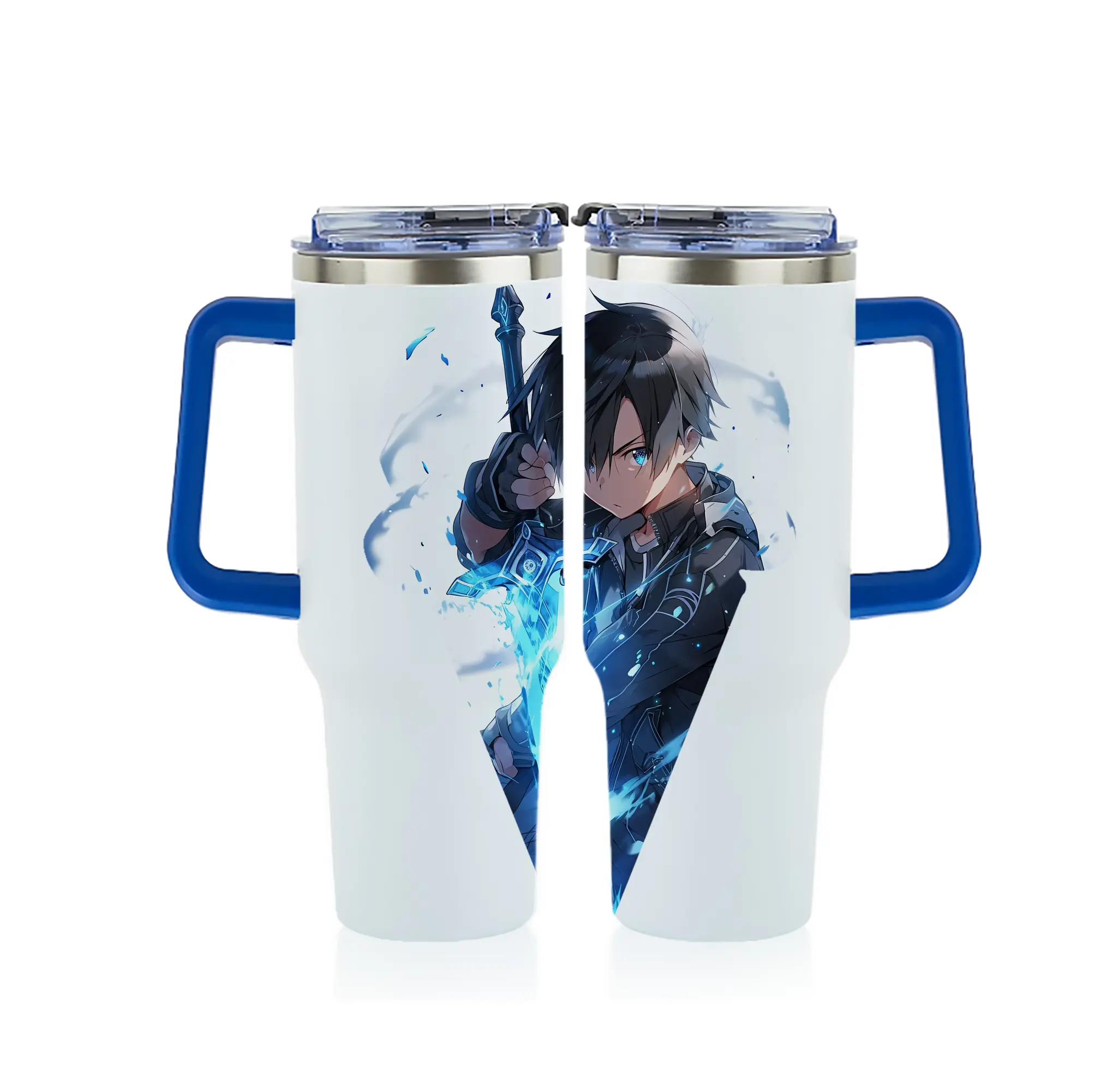 ソードアートオンライン グッズ キリト - 1200mL フルプリント車用タンブラー ・ 304ステンレス 内側 ・ 201ステンレス 外側 ・ 保温 保冷 ・ 通勤 ドライブ アウトドア用