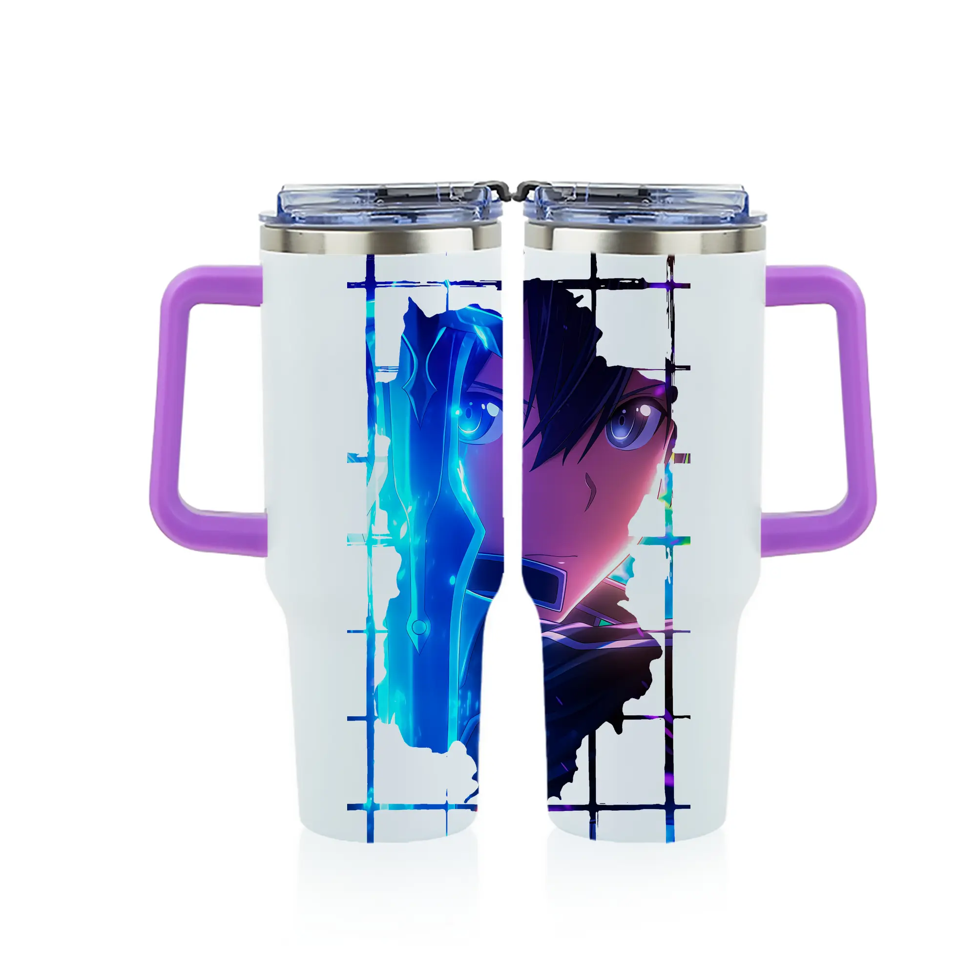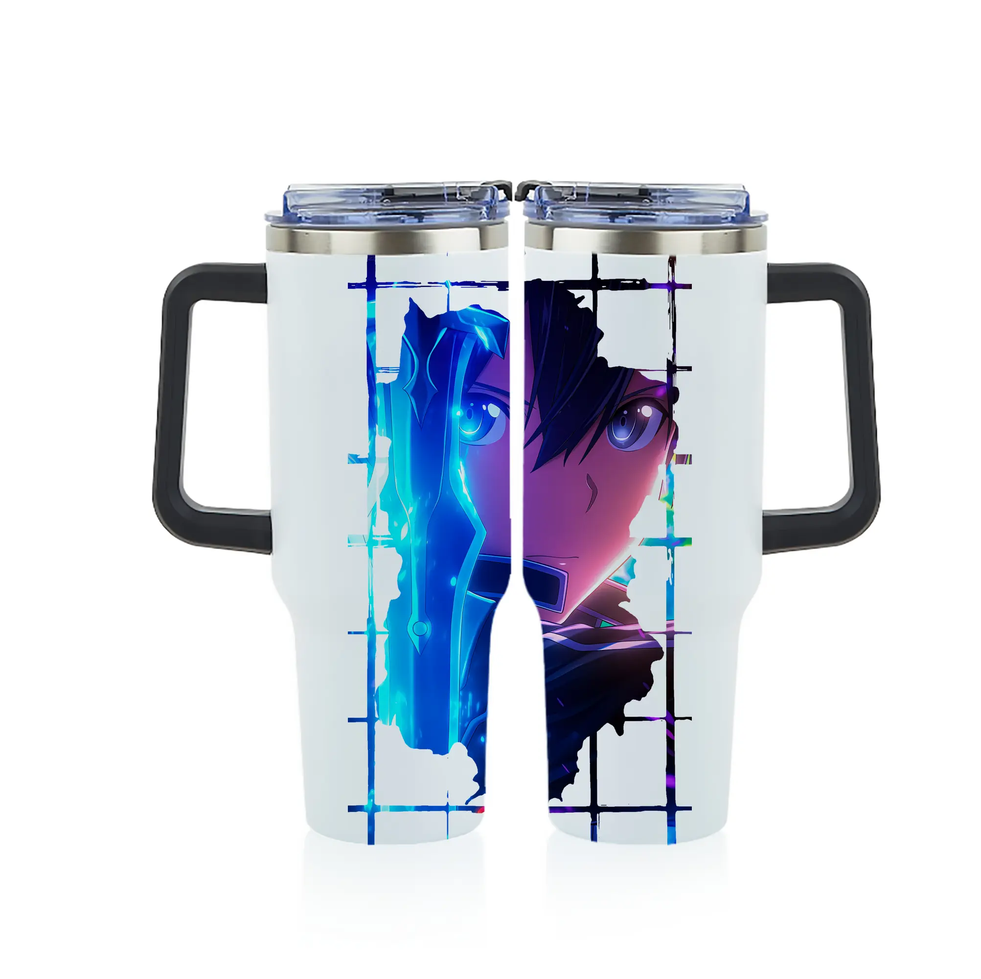 ソードアートオンライン グッズ キリト - 1200mL フルプリント車用タンブラー ・ 304ステンレス 内側 ・ 201ステンレス 外側 ・ 保温 保冷 ・ 通勤 ドライブ アウトドア用