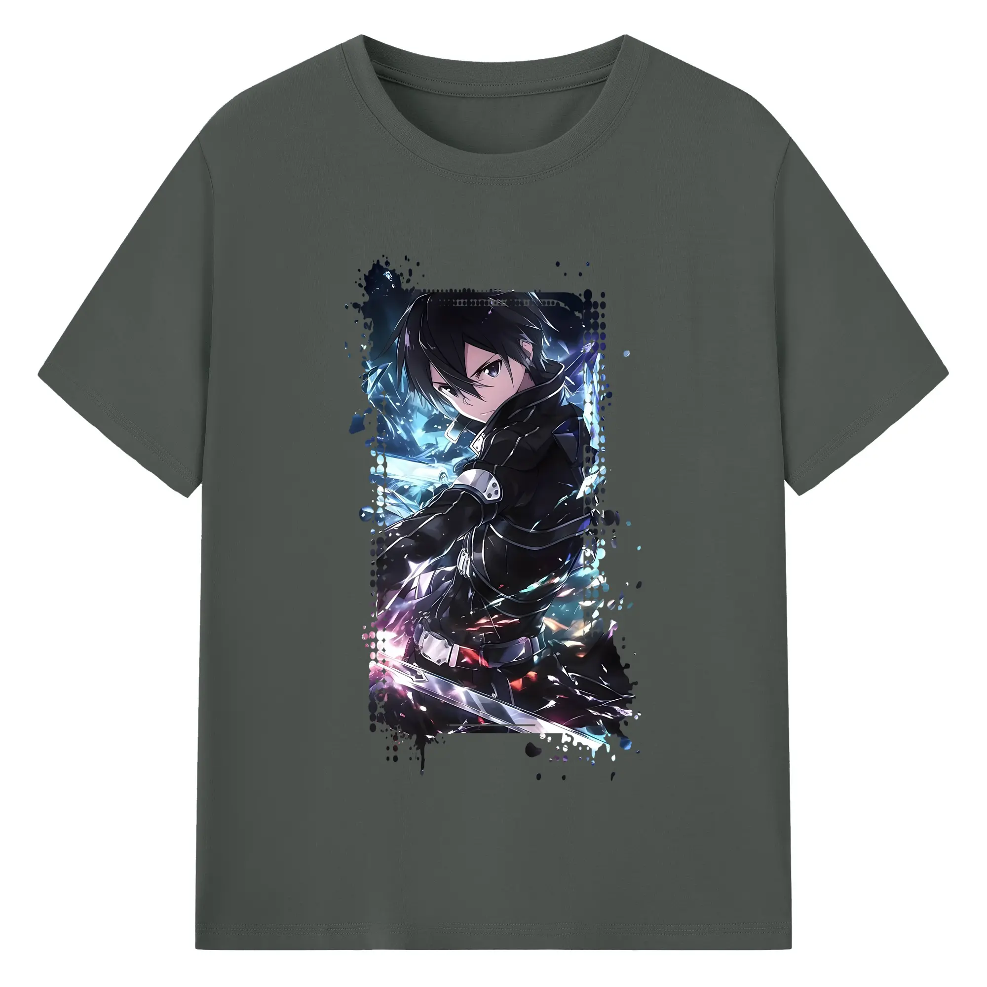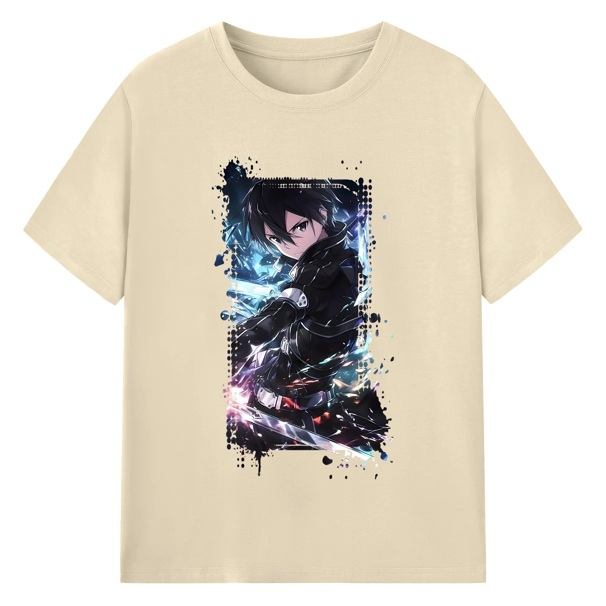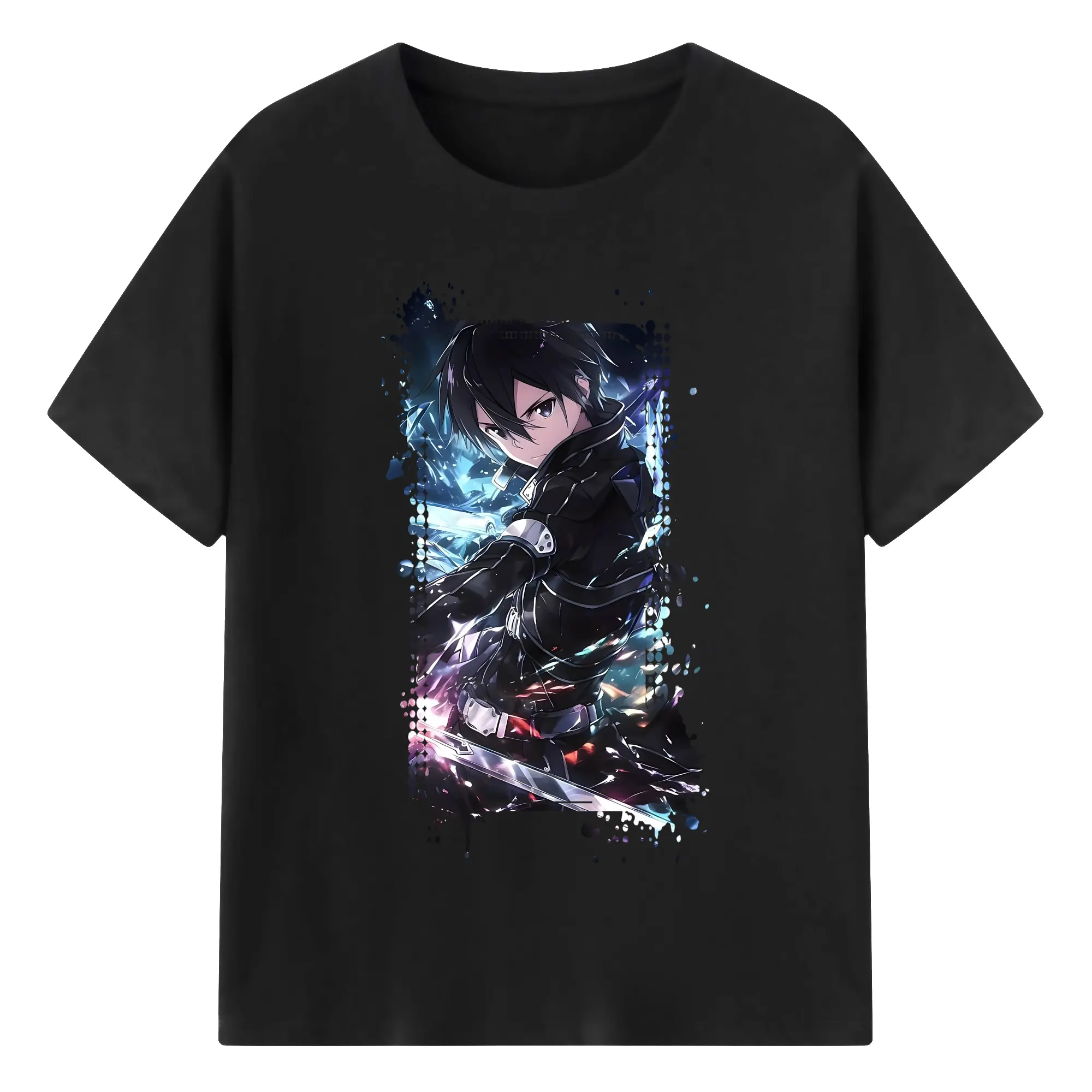ソードアートオンライン グッズ キリト - 綿100% 半袖Tシャツ ・ フロントプリント ・ 快適 通気性 ・ 日常使い 散歩 スポーツ用