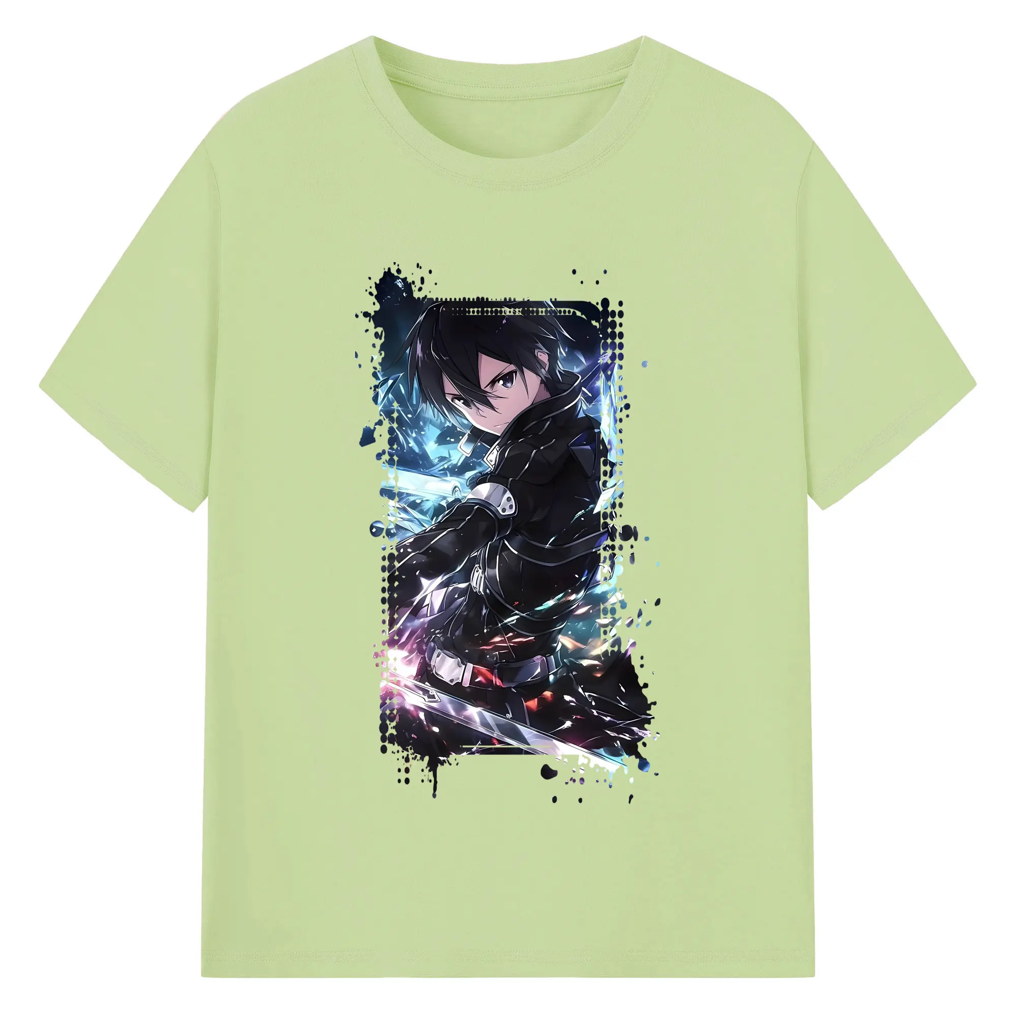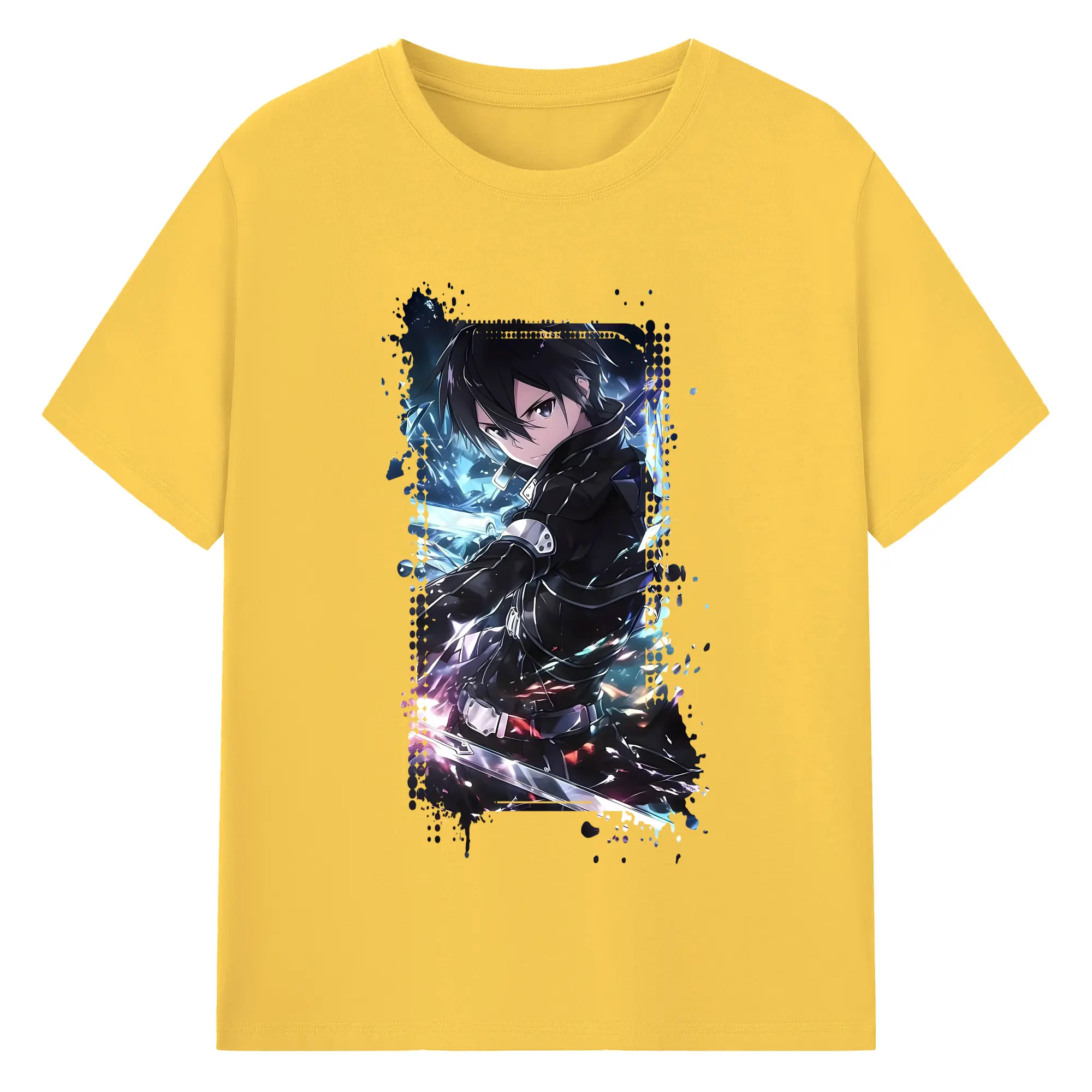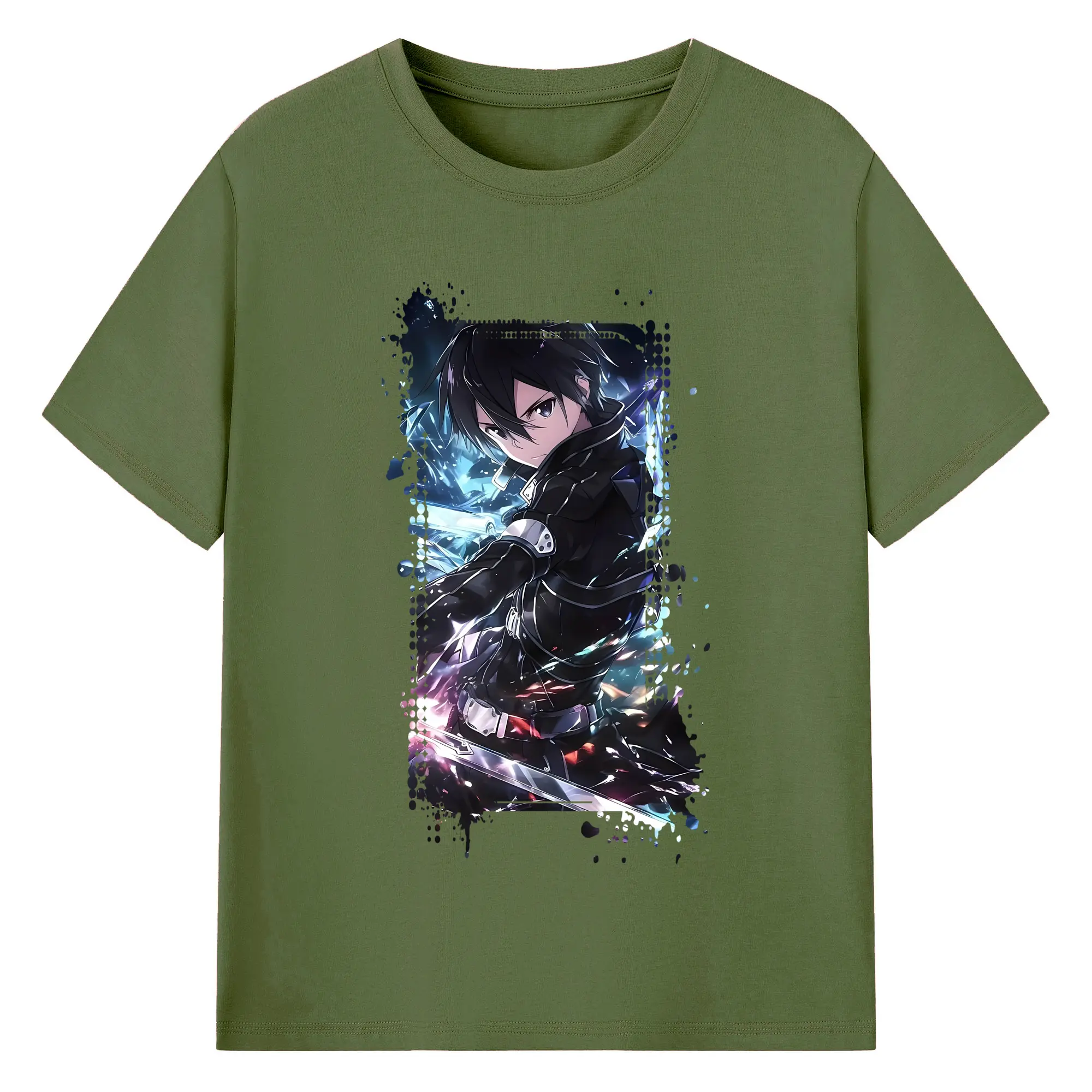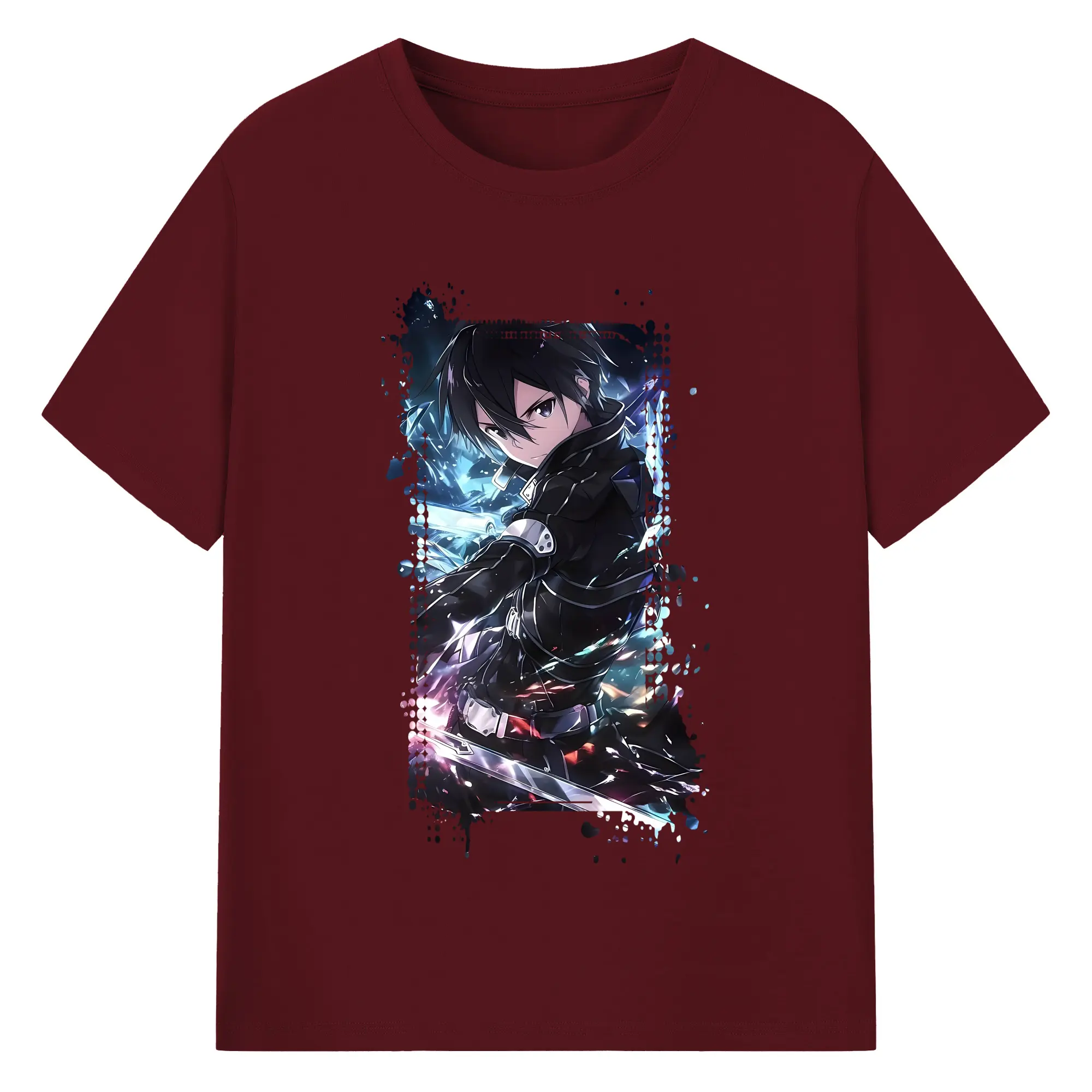 ソードアートオンライン グッズ キリト - 綿100% 半袖Tシャツ ・ フロントプリント ・ 快適 通気性 ・ 日常使い 散歩 スポーツ用