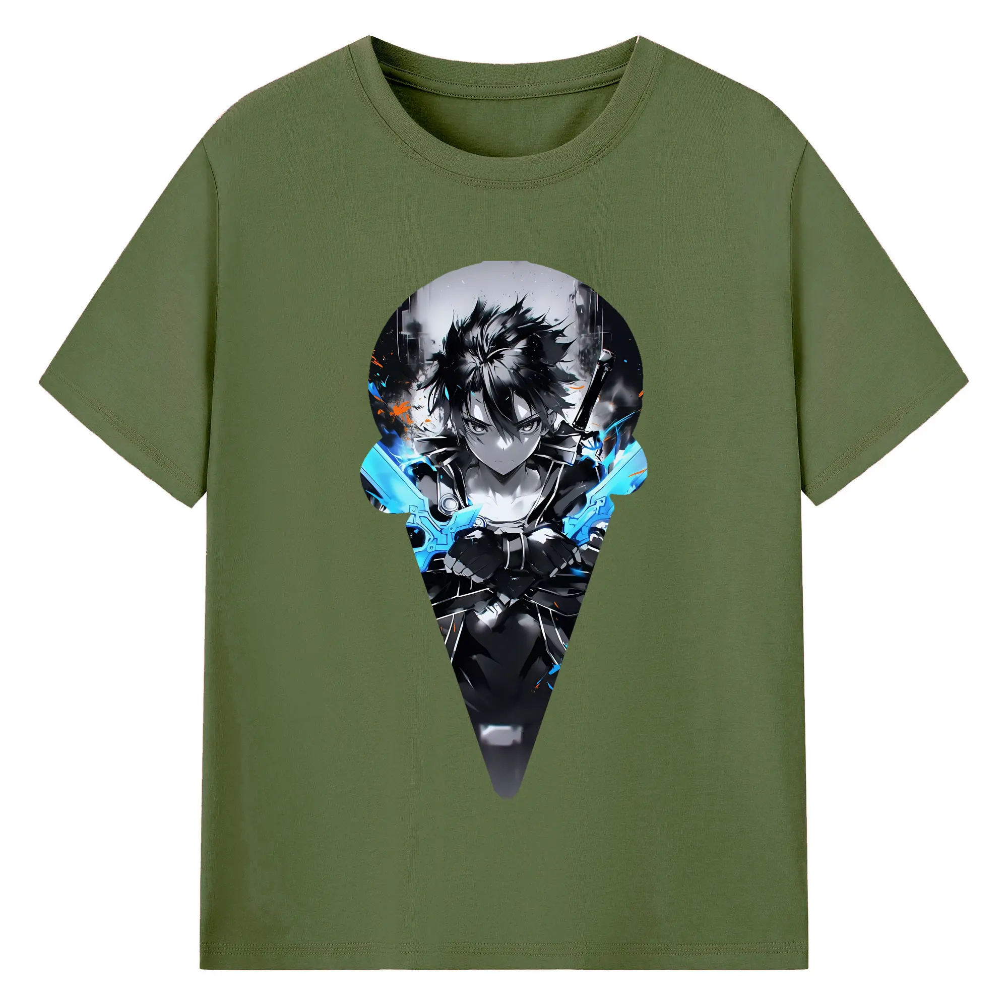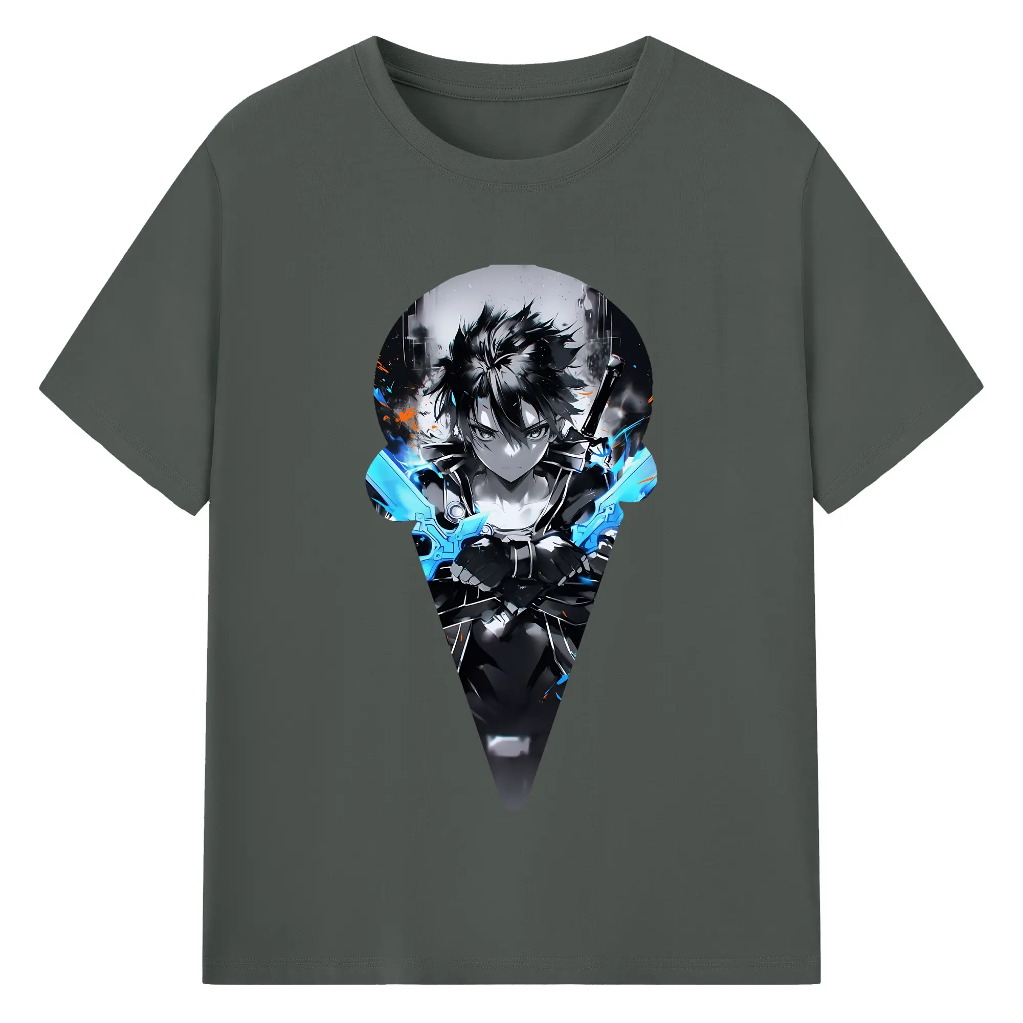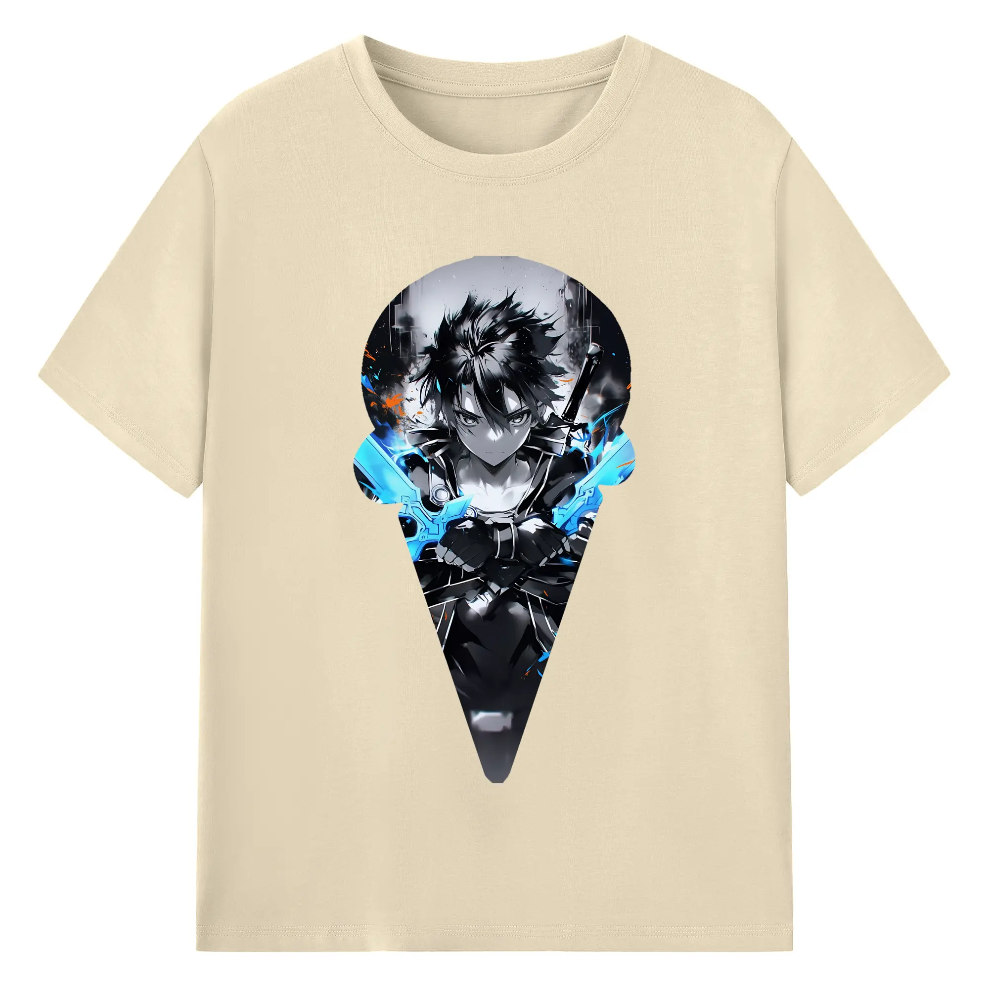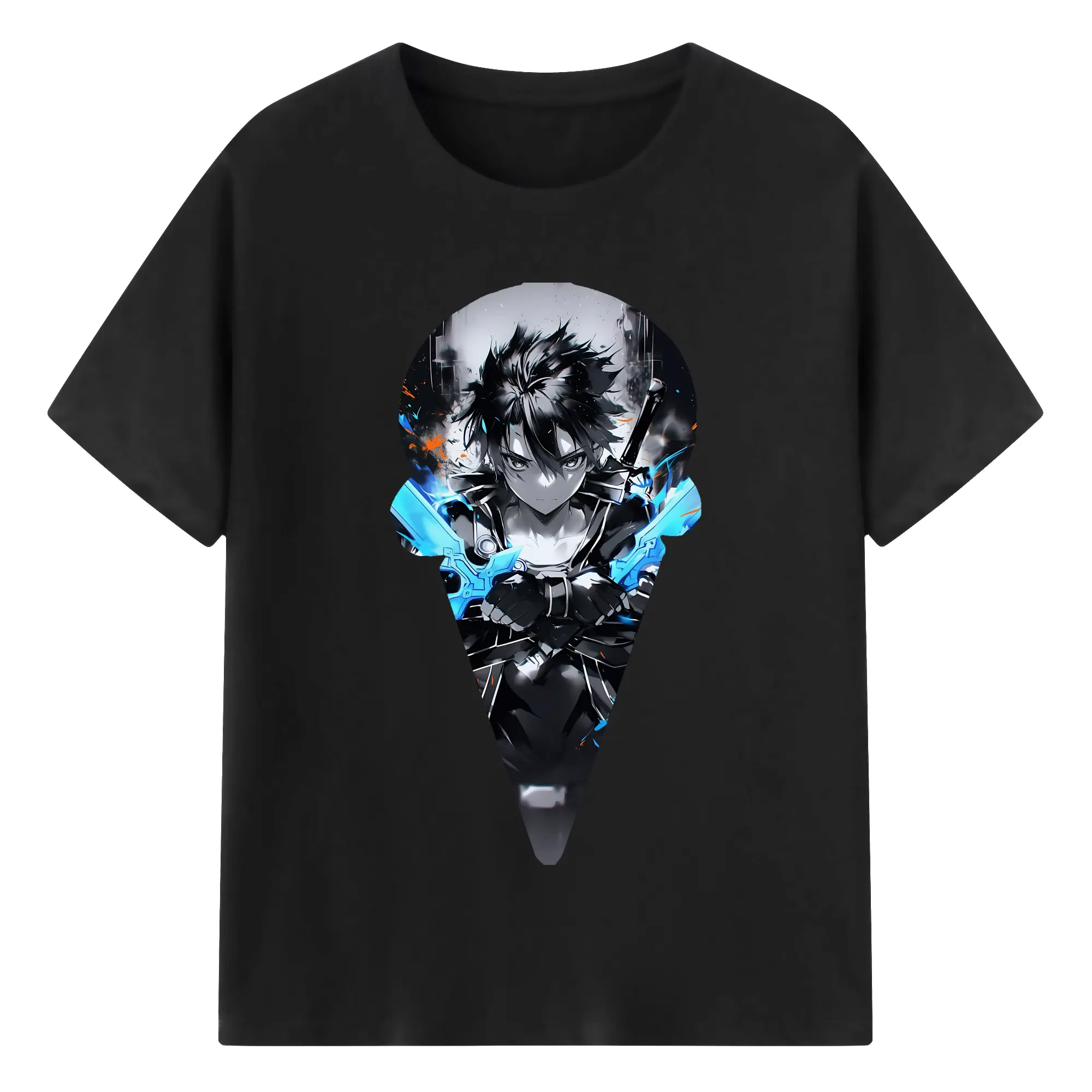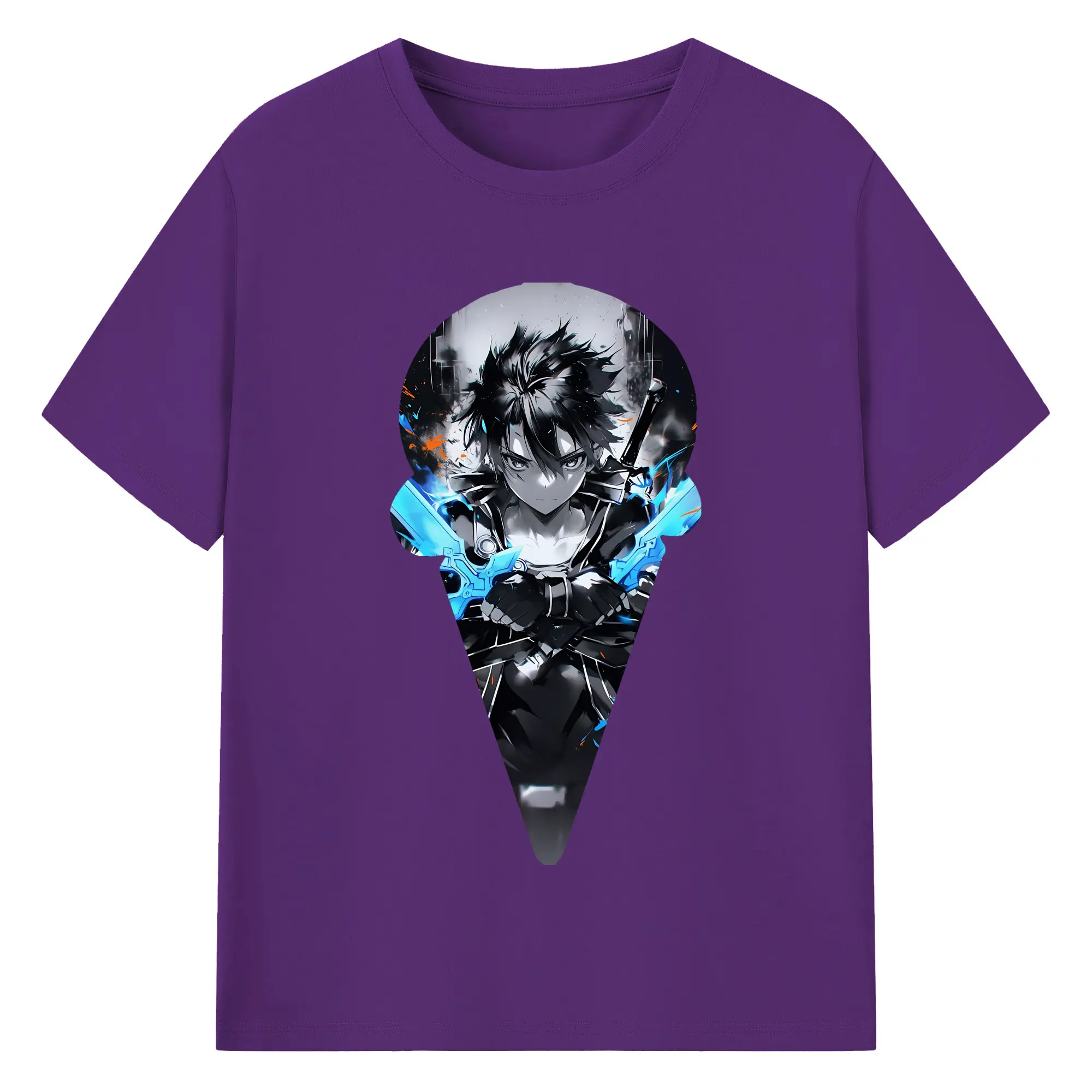 ソードアートオンライン グッズ キリト - 綿100% 半袖Tシャツ ・ バックプリント ・ 快適 通気性 ・ 日常使い 散歩 スポーツ用