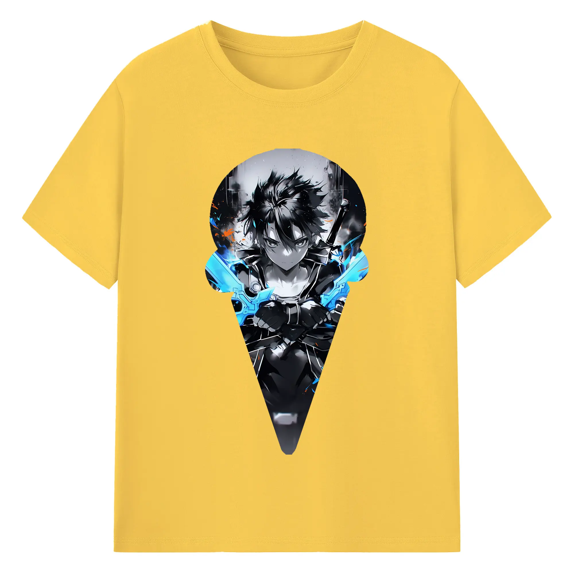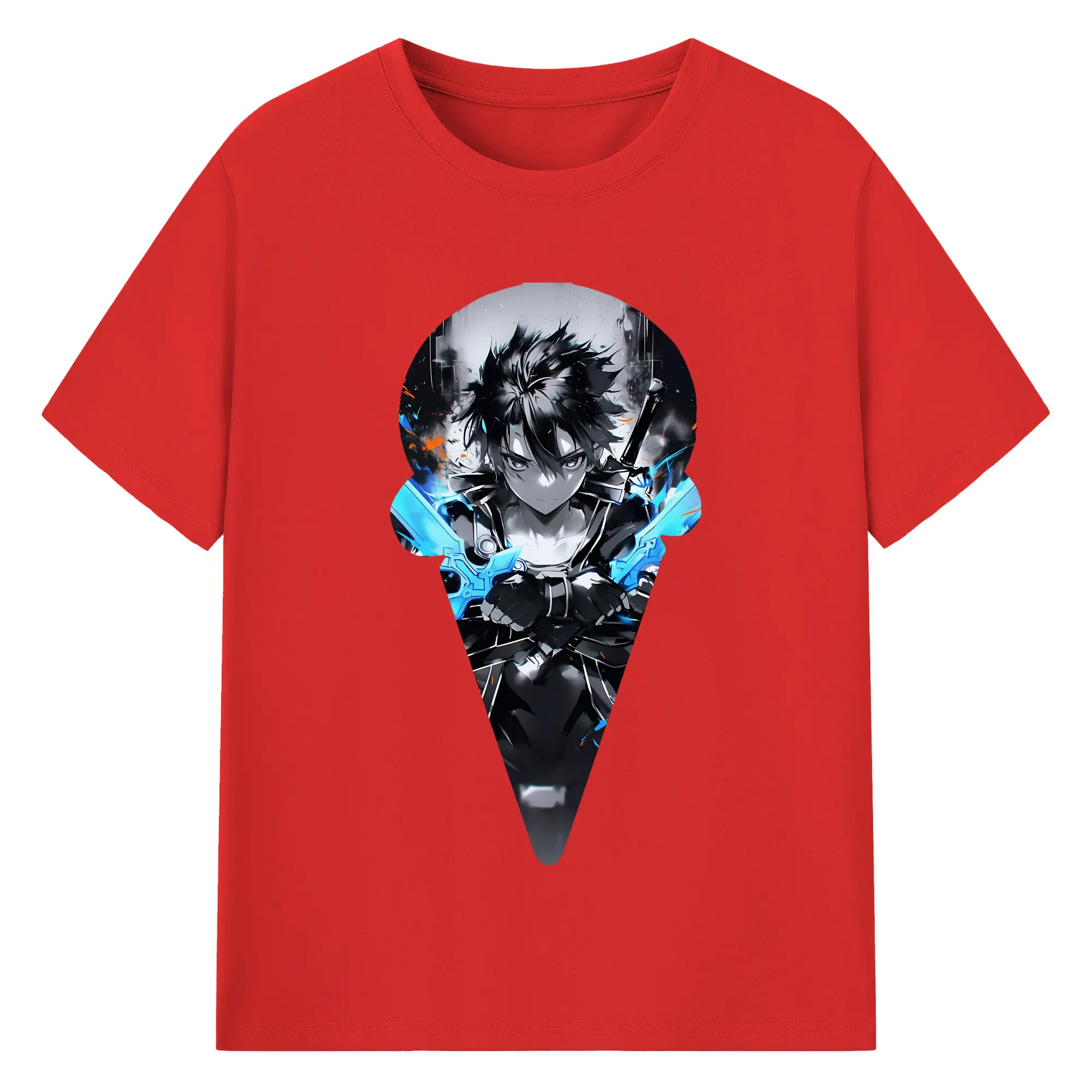 ソードアートオンライン グッズ キリト - 綿100% キッズTシャツ ・ フロントプリント ・ 快適 通気性 ・ スポーツ カジュアル 散歩用