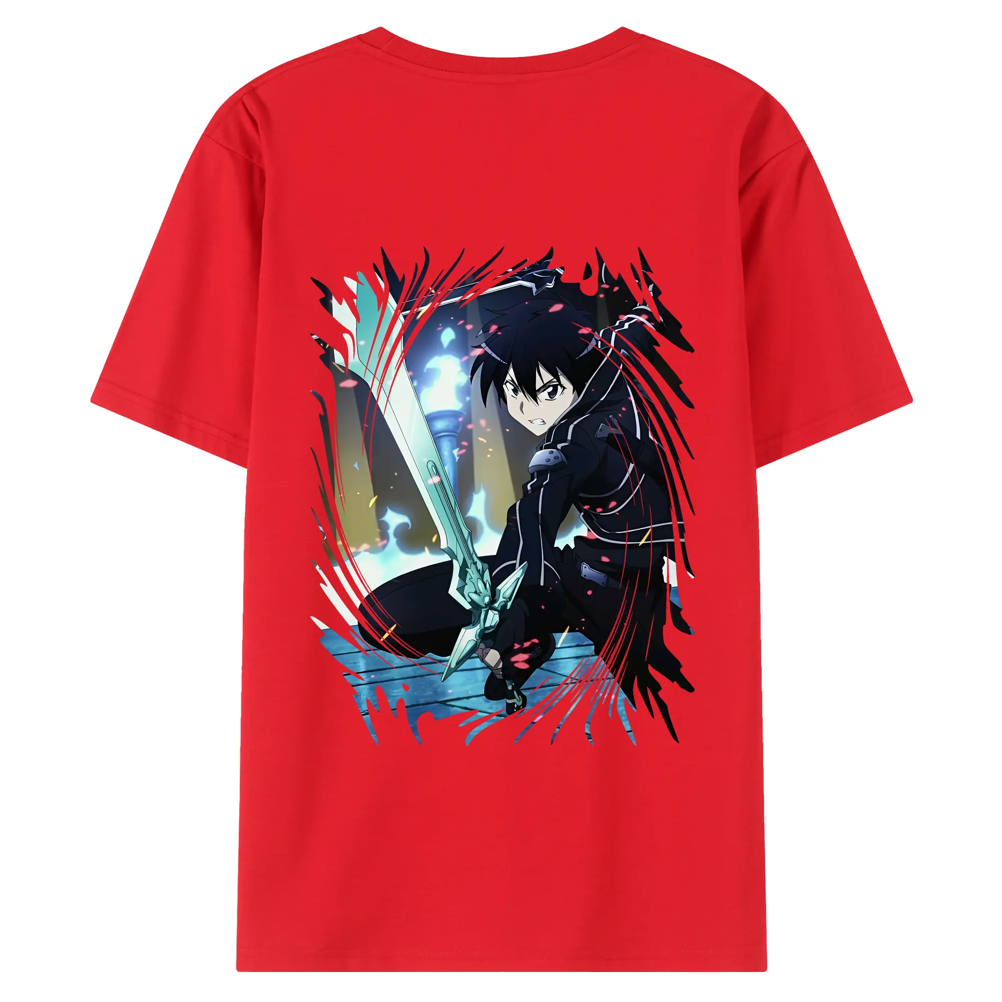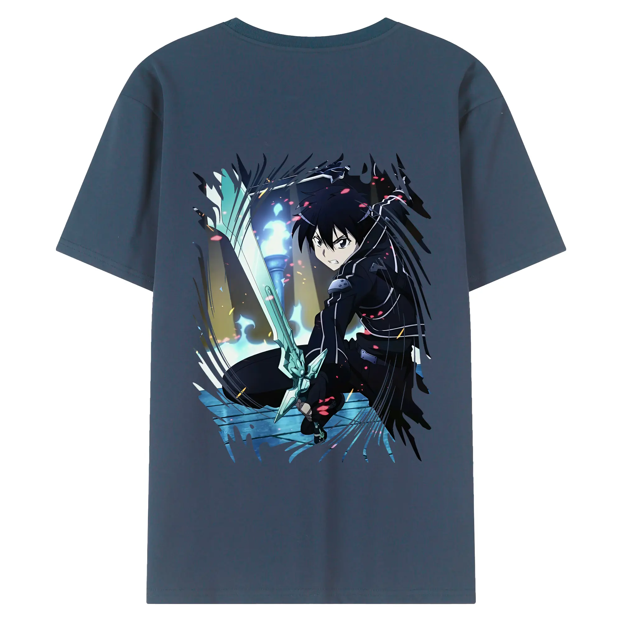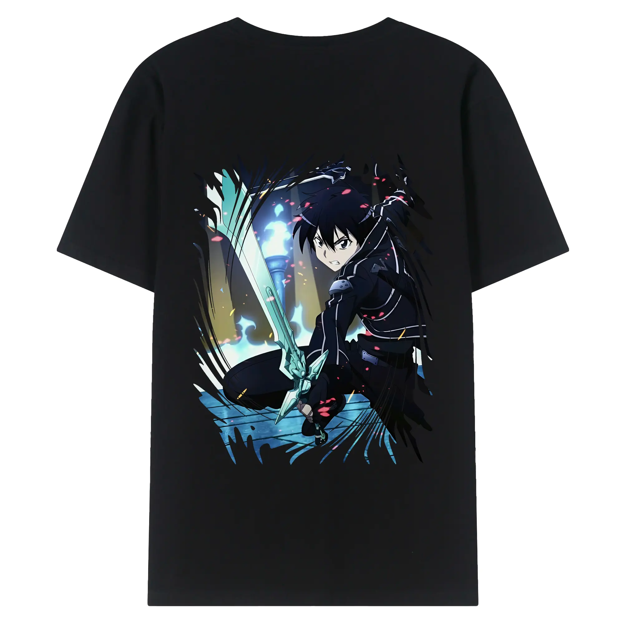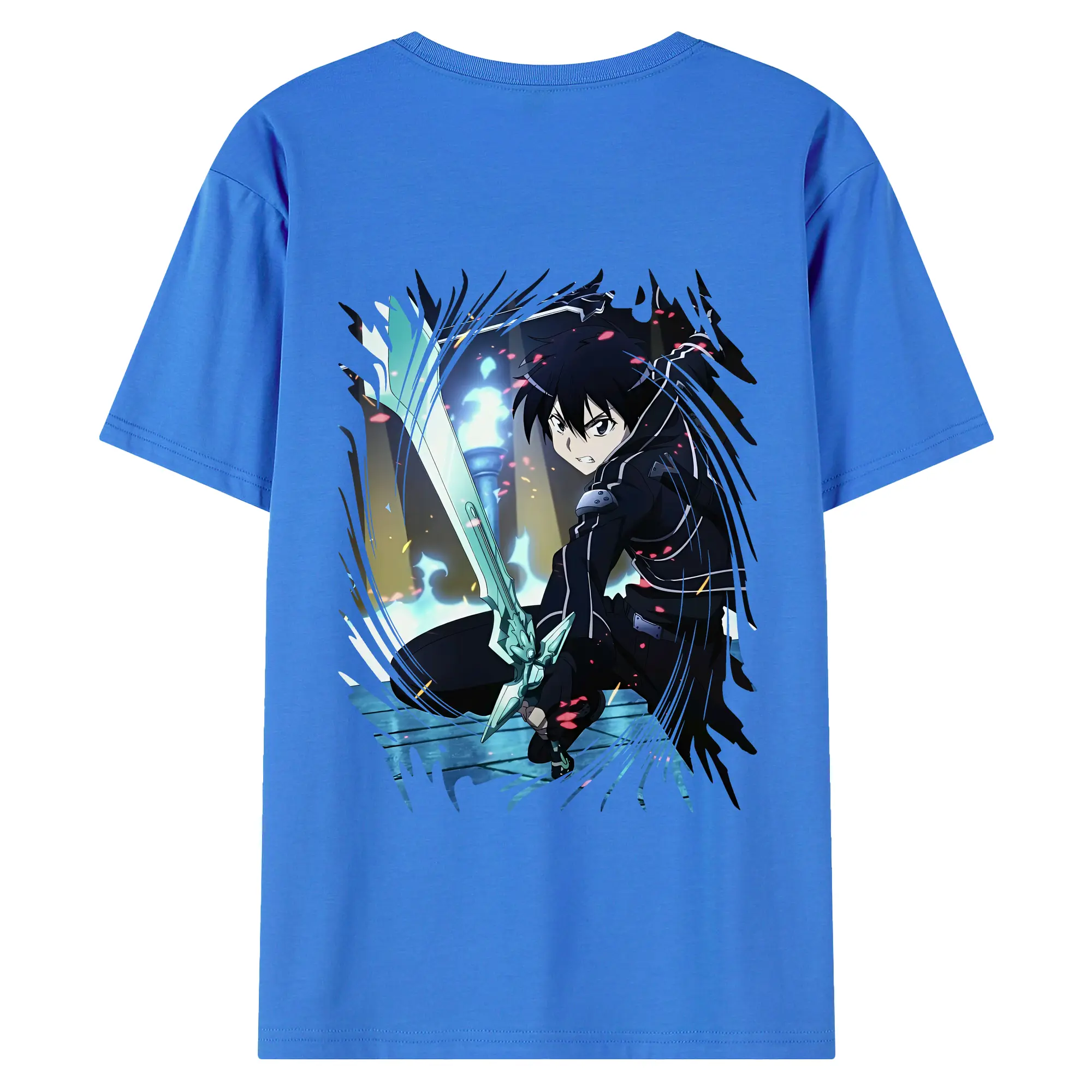 ソードアートオンライン グッズ キリト - 綿100% 半袖Tシャツ ・ フロントプリント ・ 快適 通気性 ・ 日常使い 散歩 スポーツ用