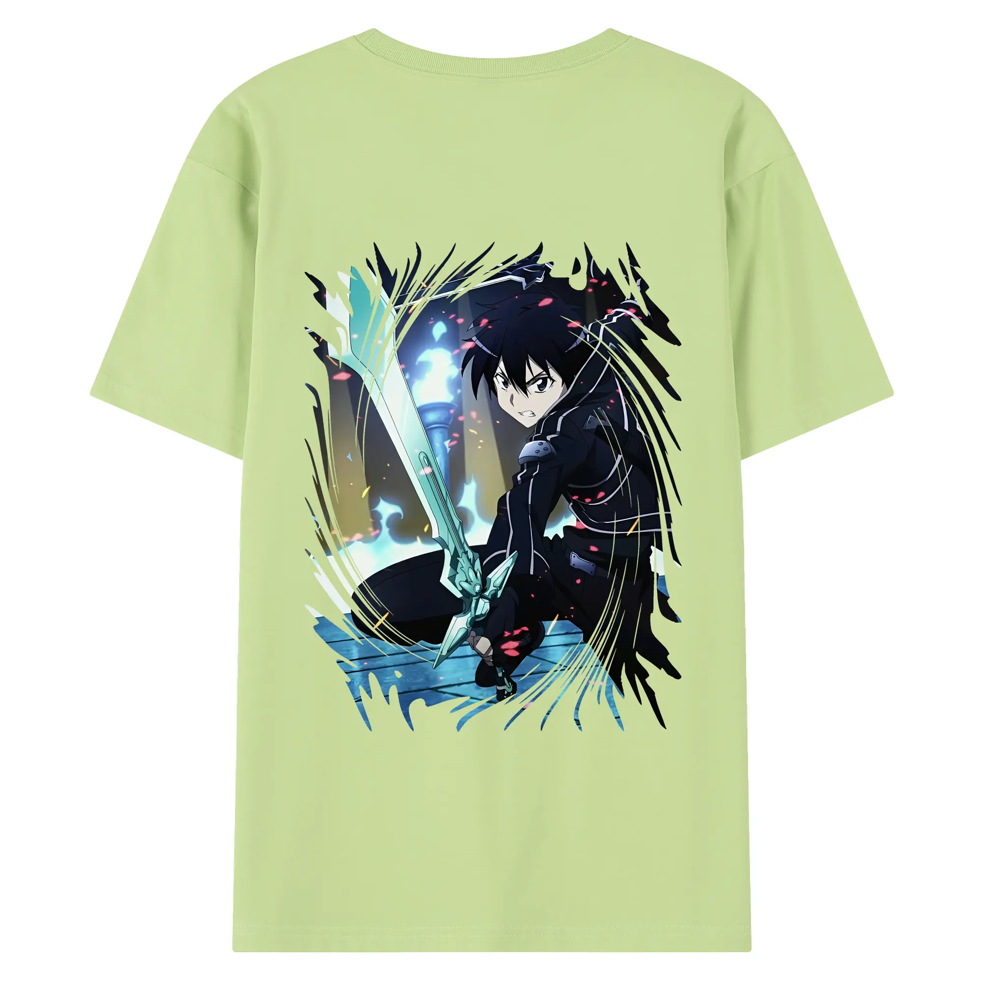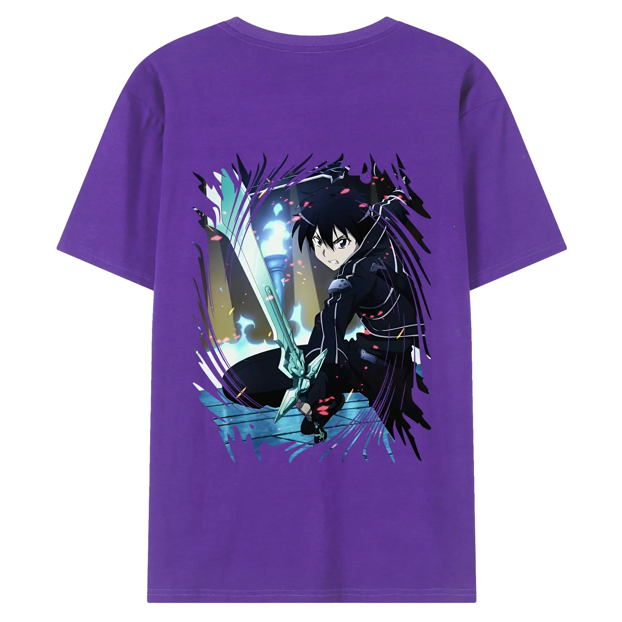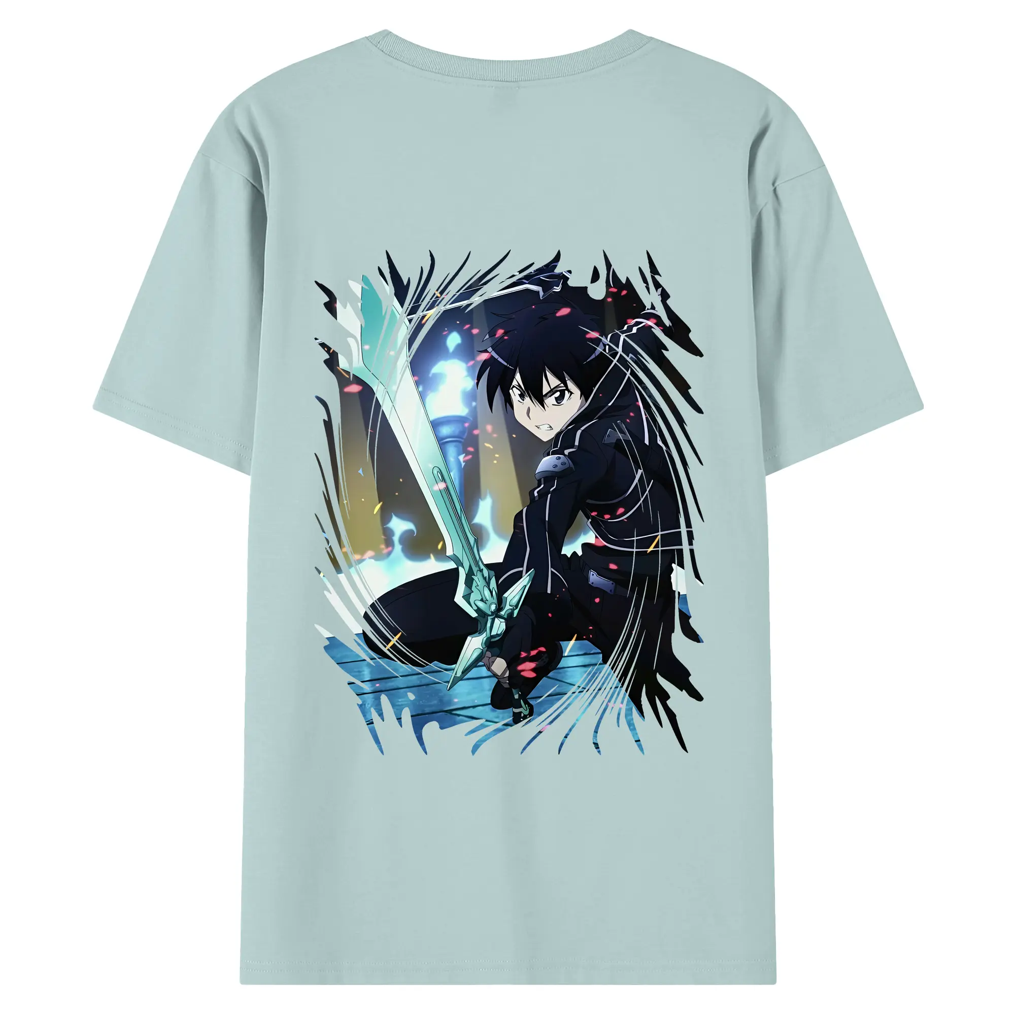 ソードアートオンライン グッズ キリト - 綿100% 半袖Tシャツ ・ フロントプリント ・ 快適 通気性 ・ 日常使い 散歩 スポーツ用