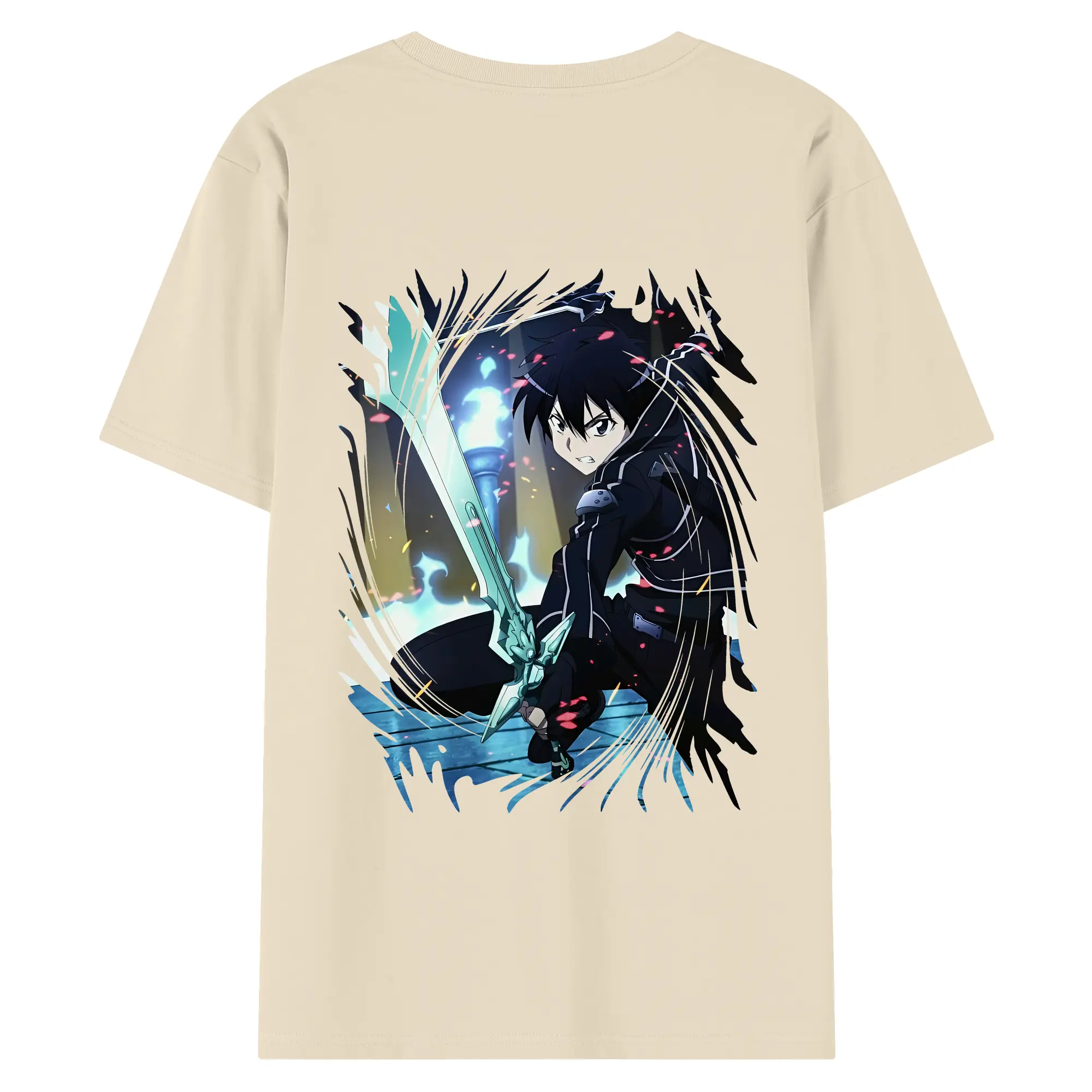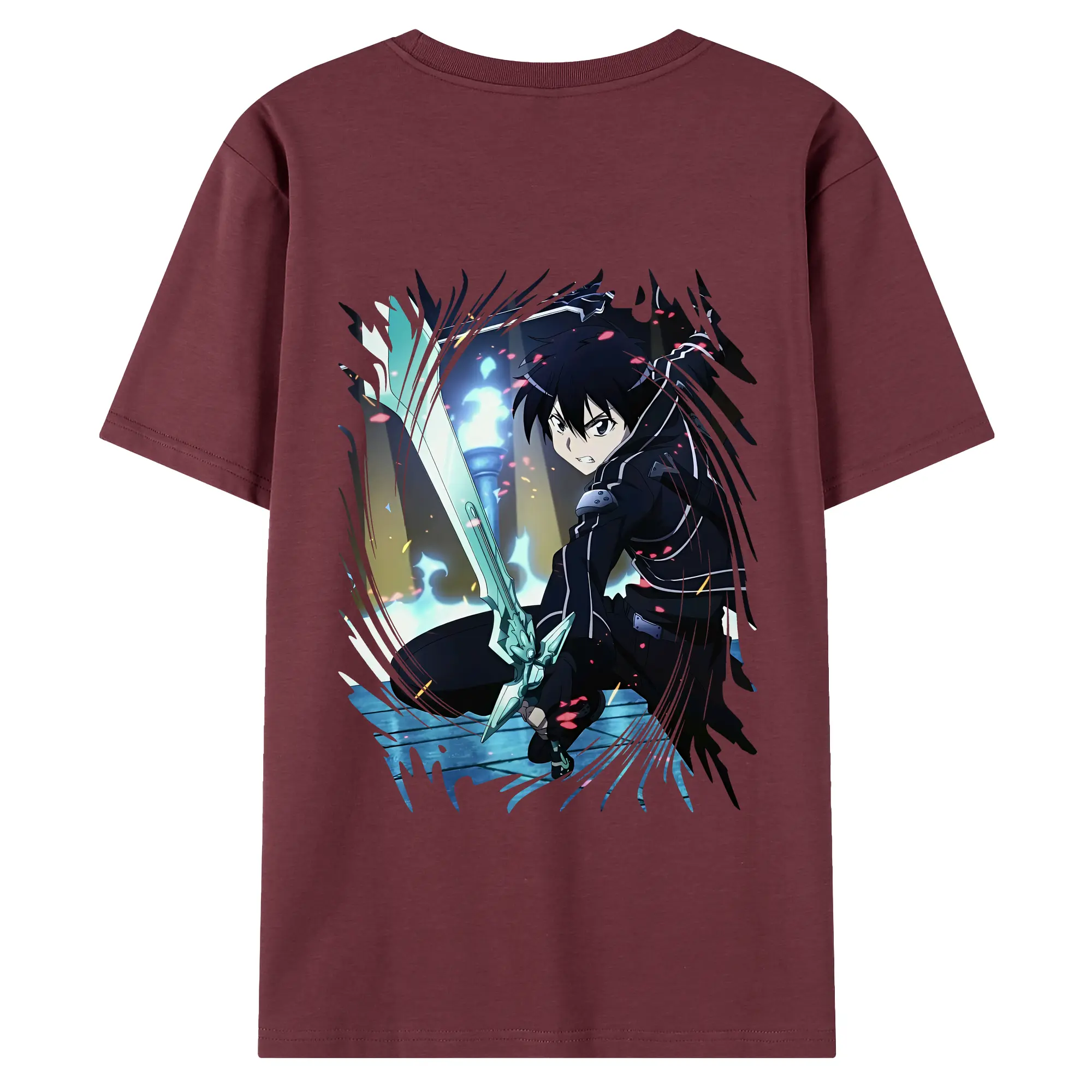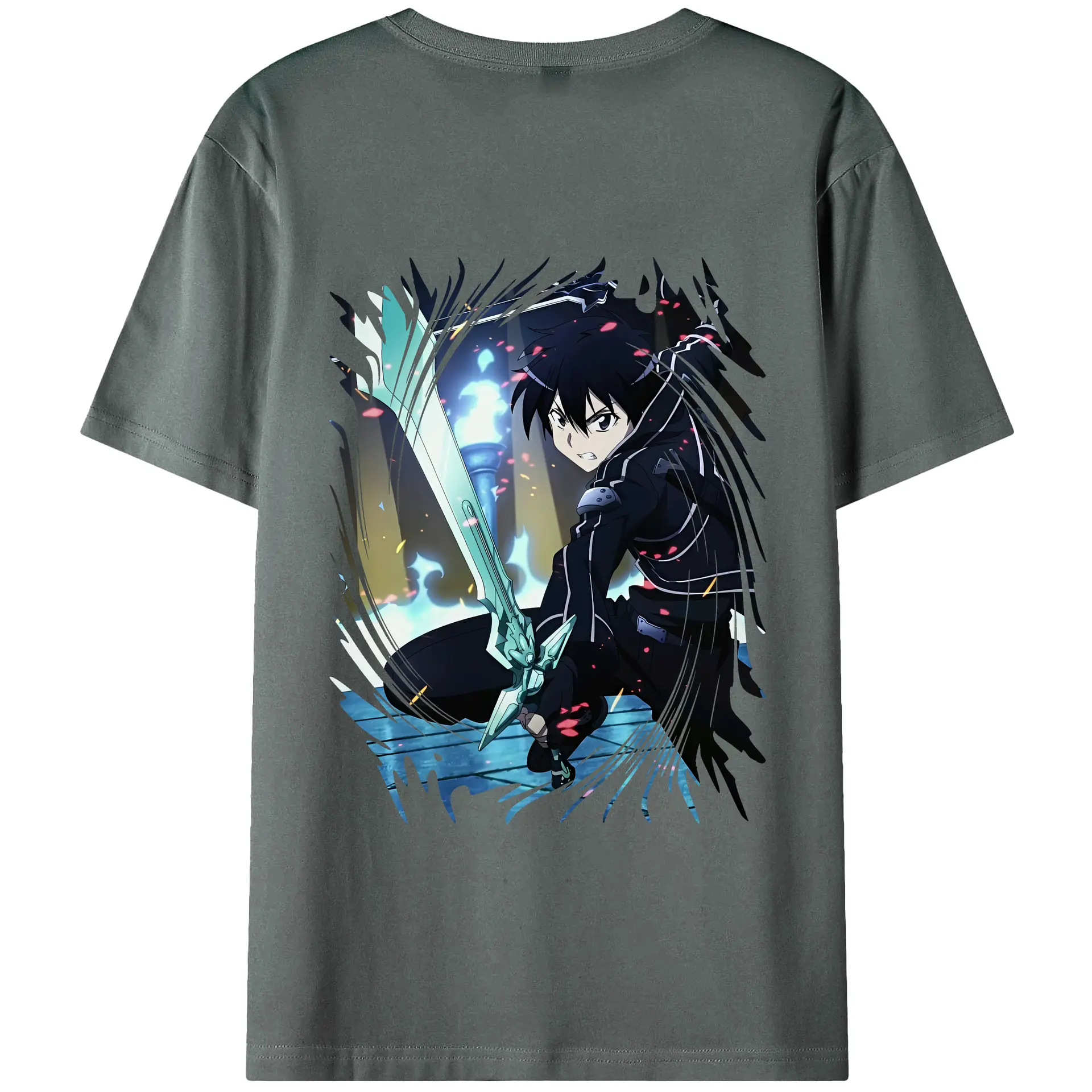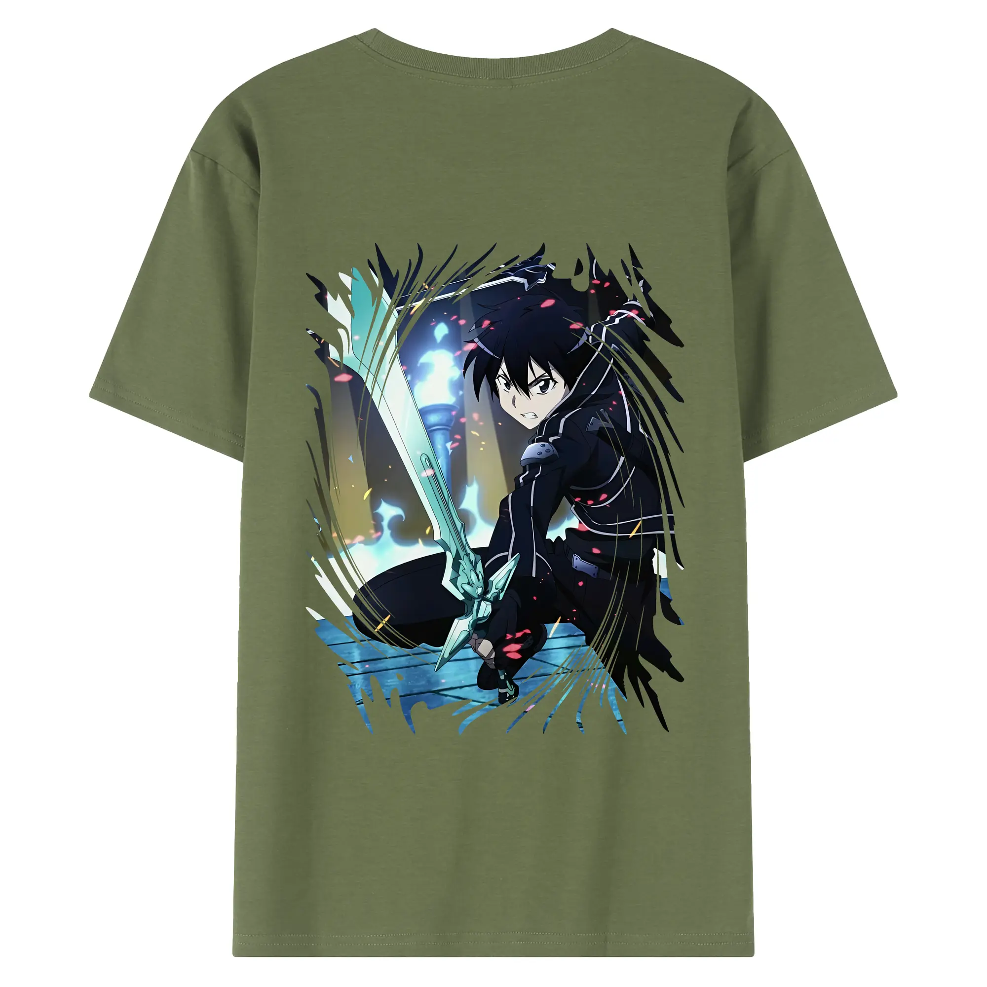 ソードアートオンライン グッズ キリト - 綿100% 半袖Tシャツ ・ フロントプリント ・ 快適 通気性 ・ 日常使い 散歩 スポーツ用