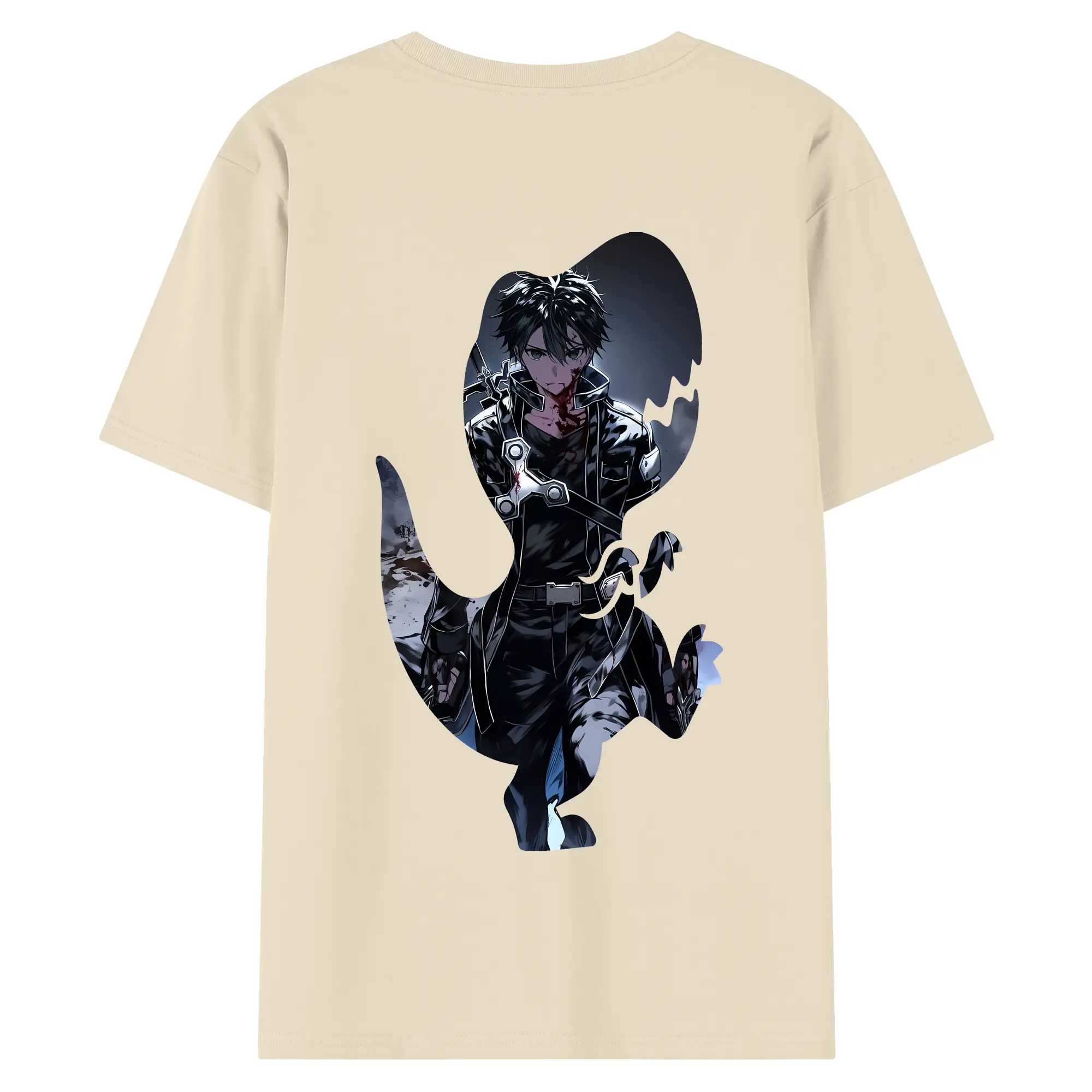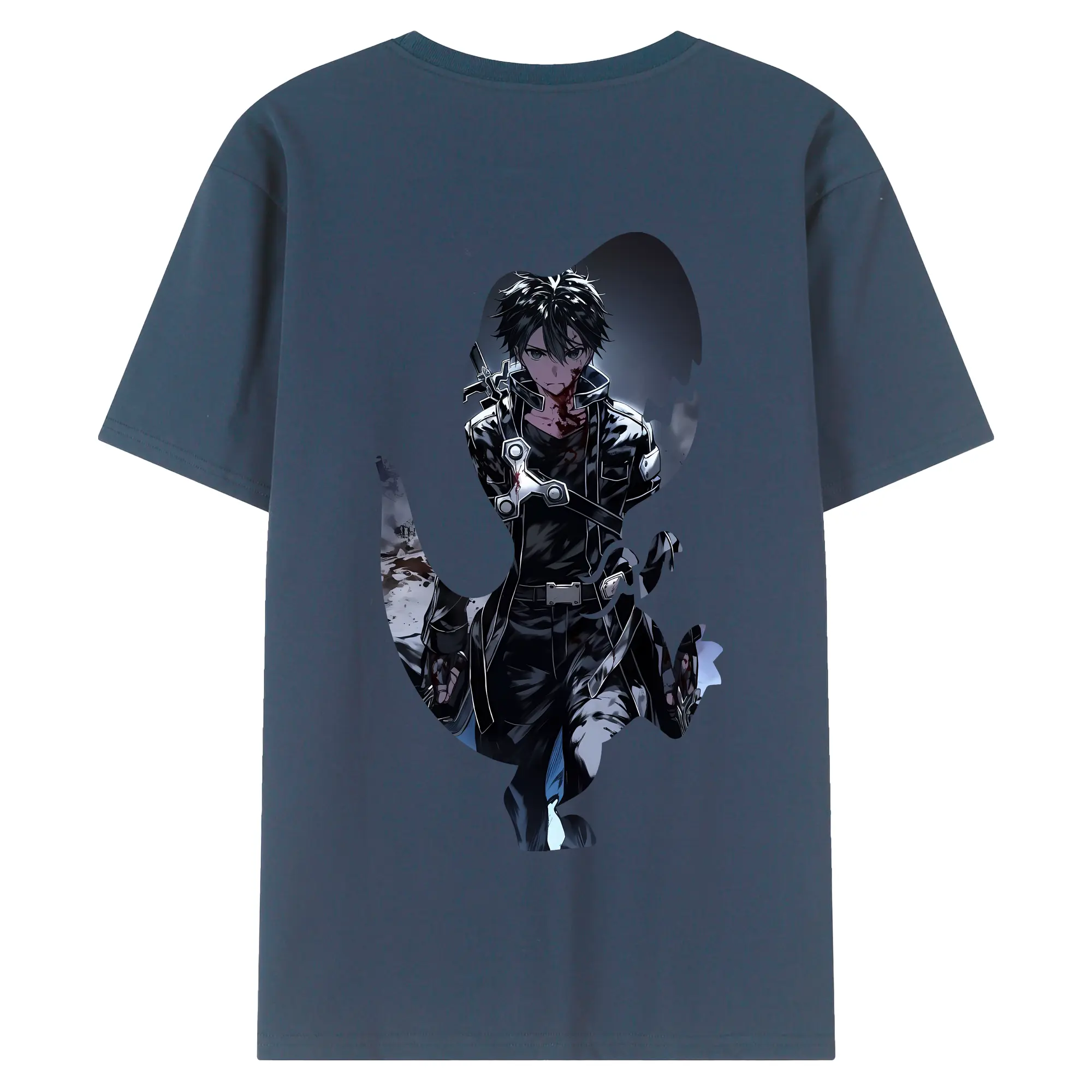 ソードアートオンライン グッズ キリト - 綿100% ヴィンテージ風 半袖Tシャツ ・ 背面プリント ・ 柔らか肌触り ・ 通気性 快適 ・ スポーツ カジュアル 外出用