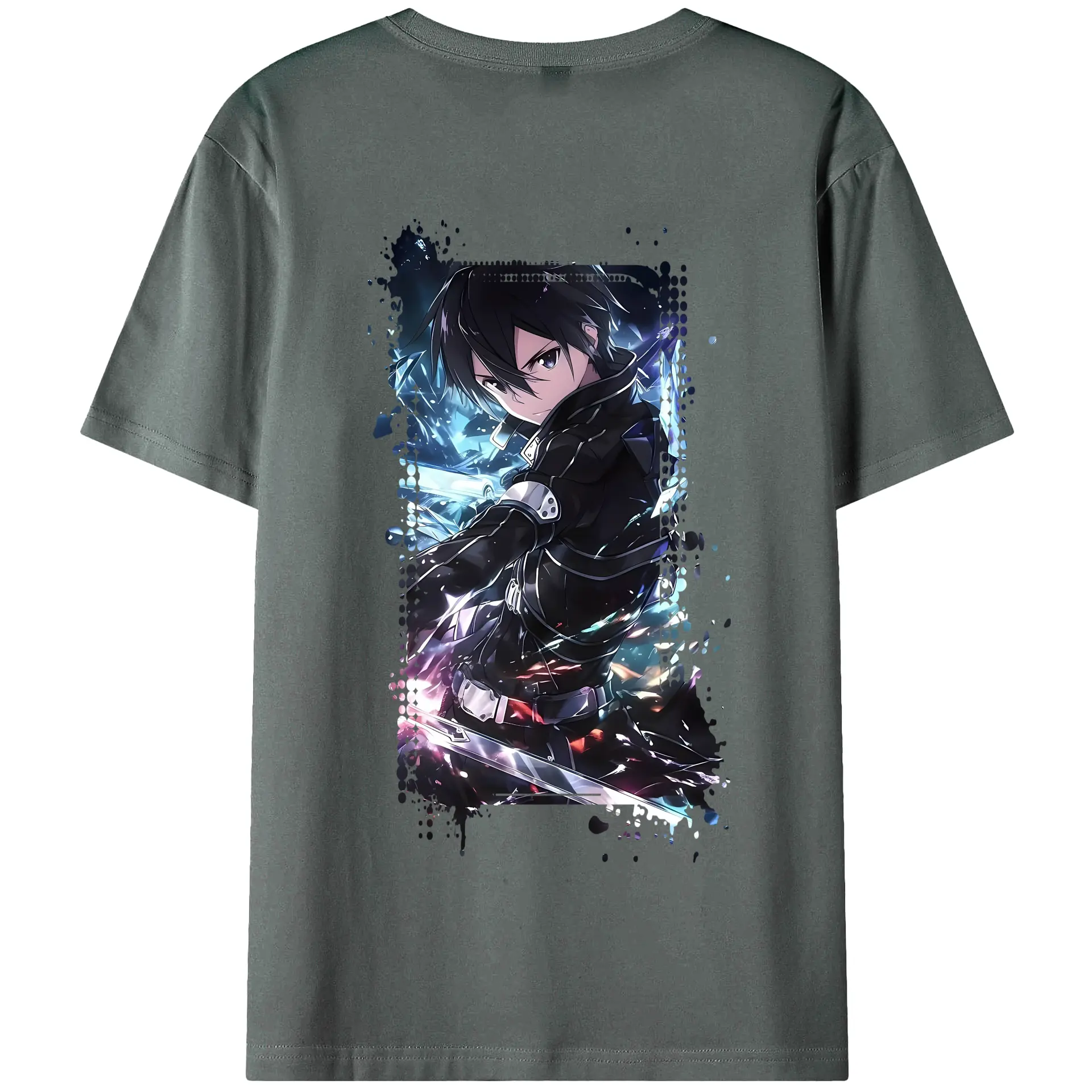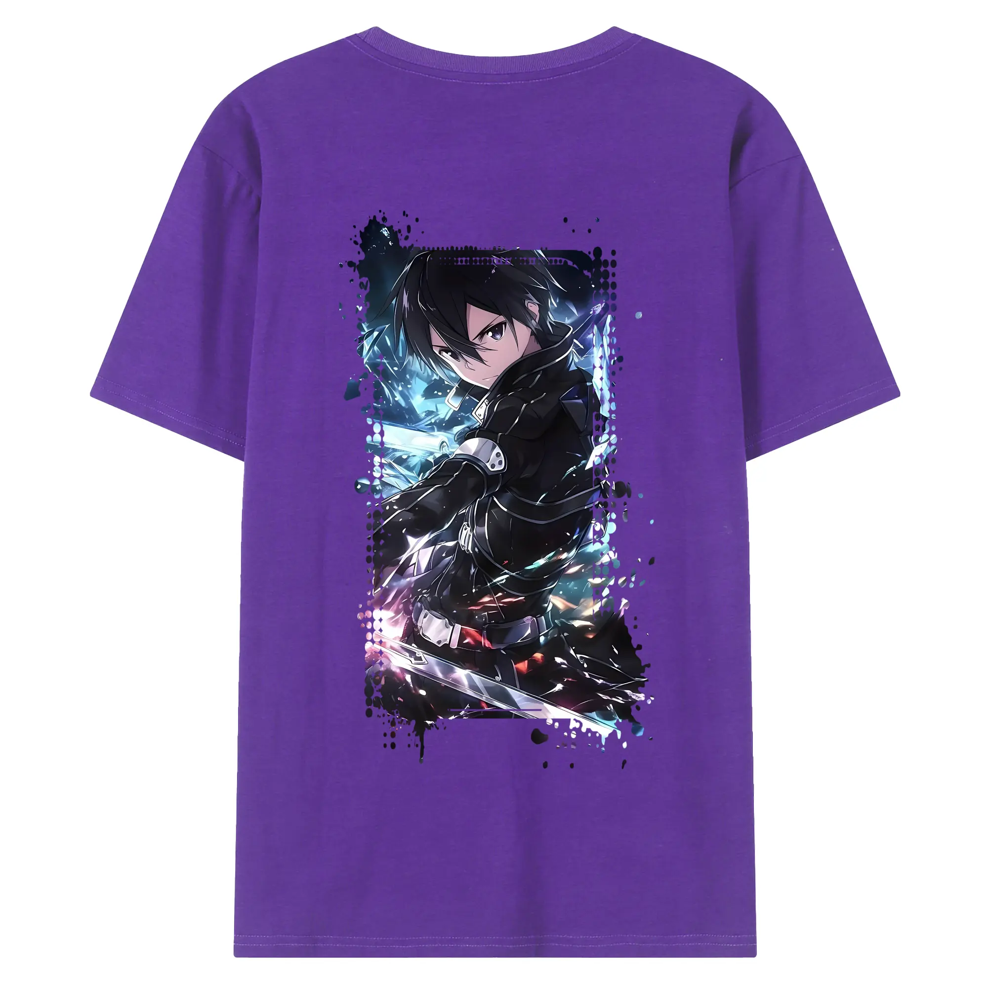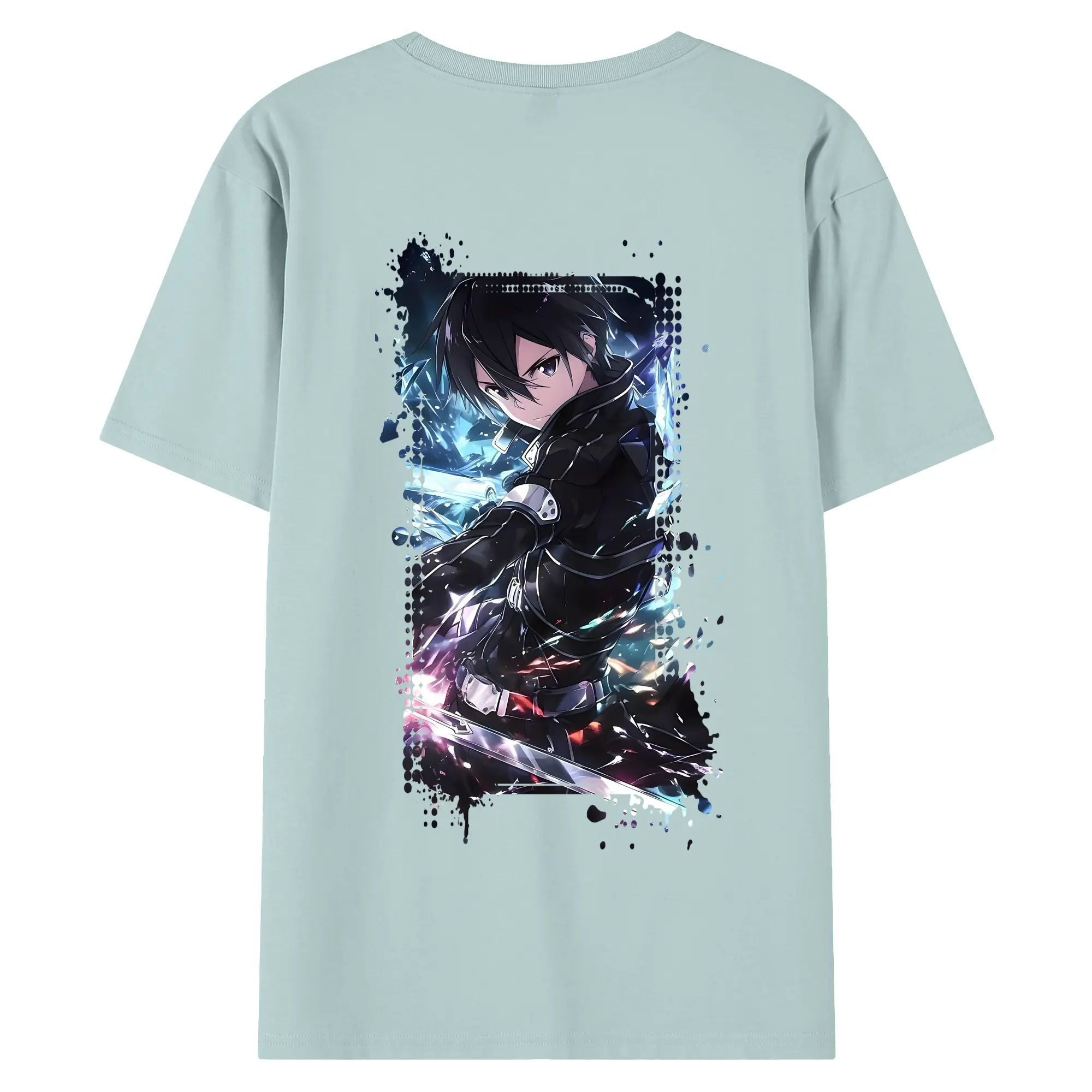 ソードアートオンライン グッズ キリト - 綿100% 半袖Tシャツ ・ フロントプリント ・ 快適 通気性 ・ 日常使い 散歩 スポーツ用