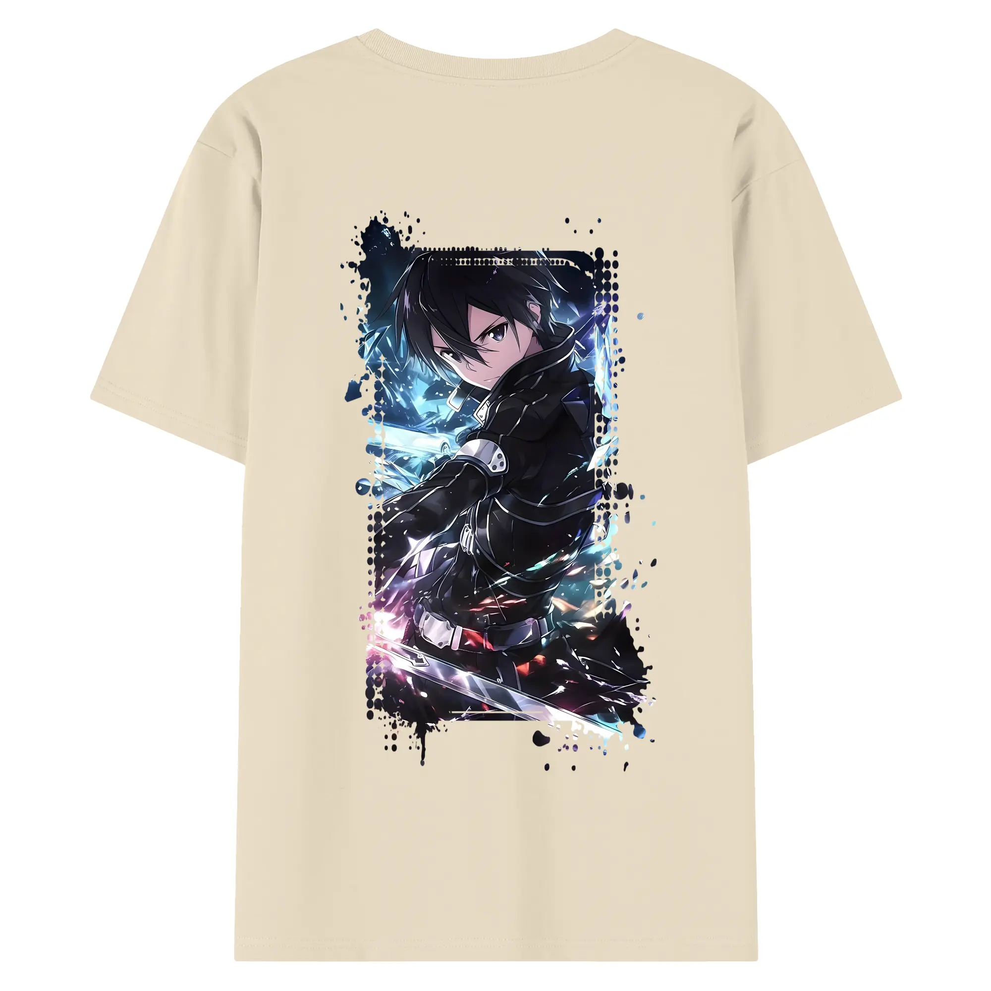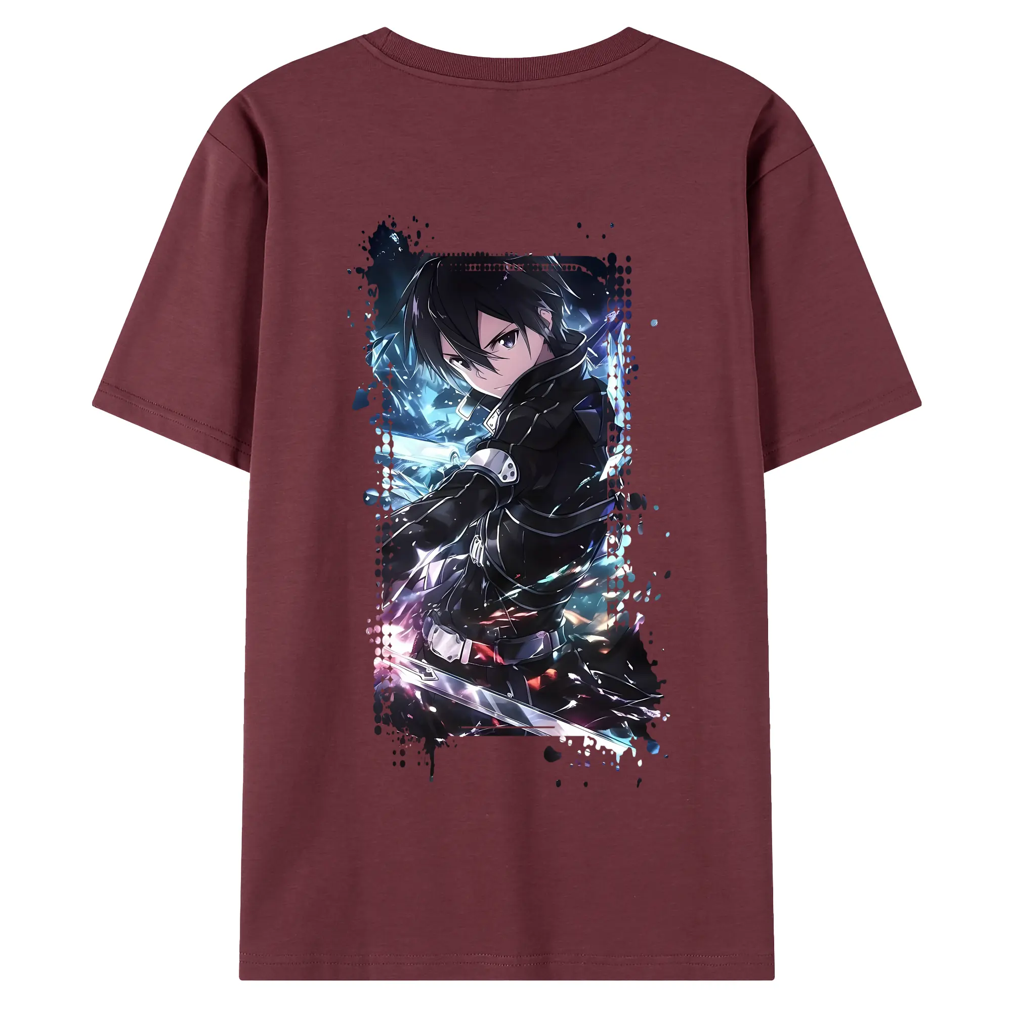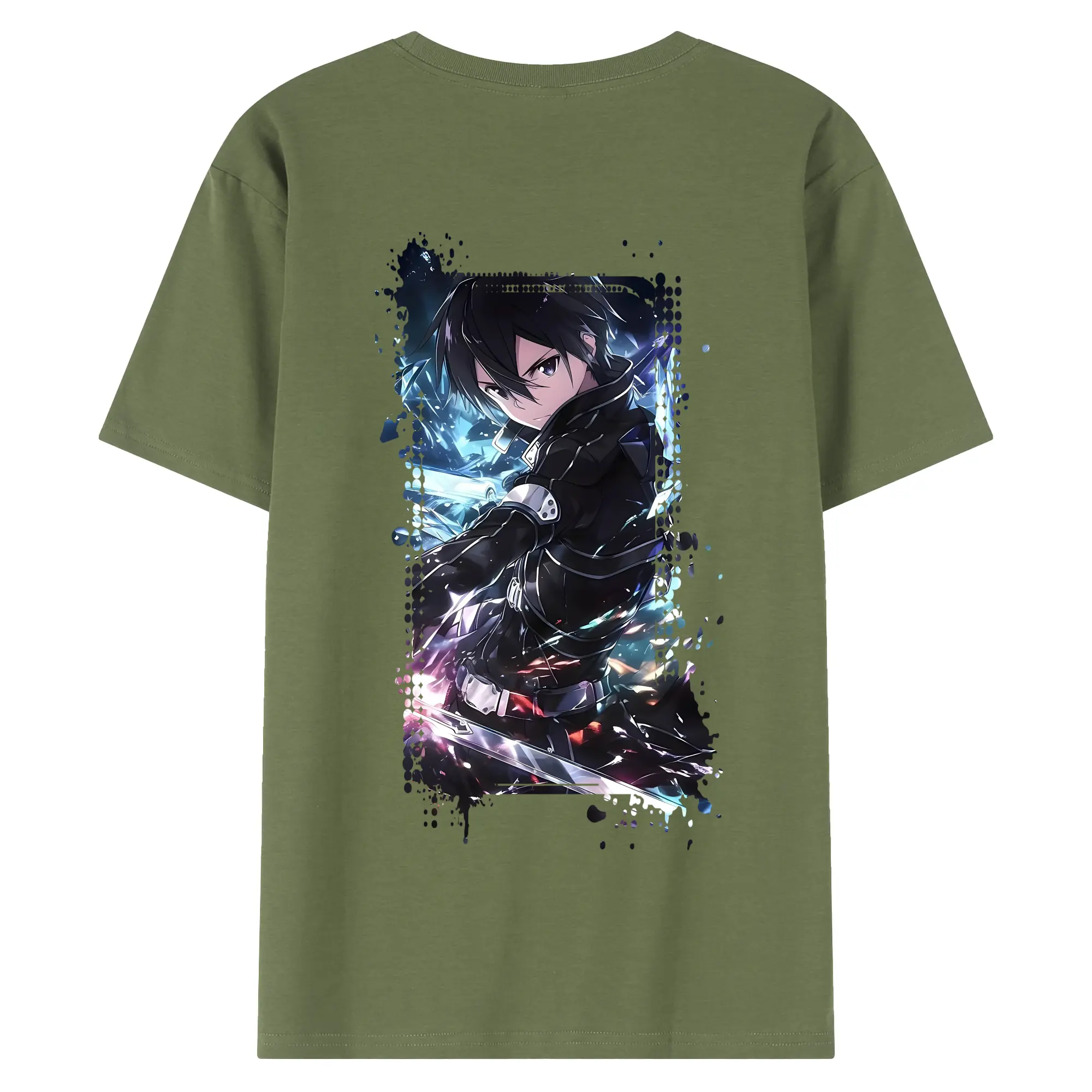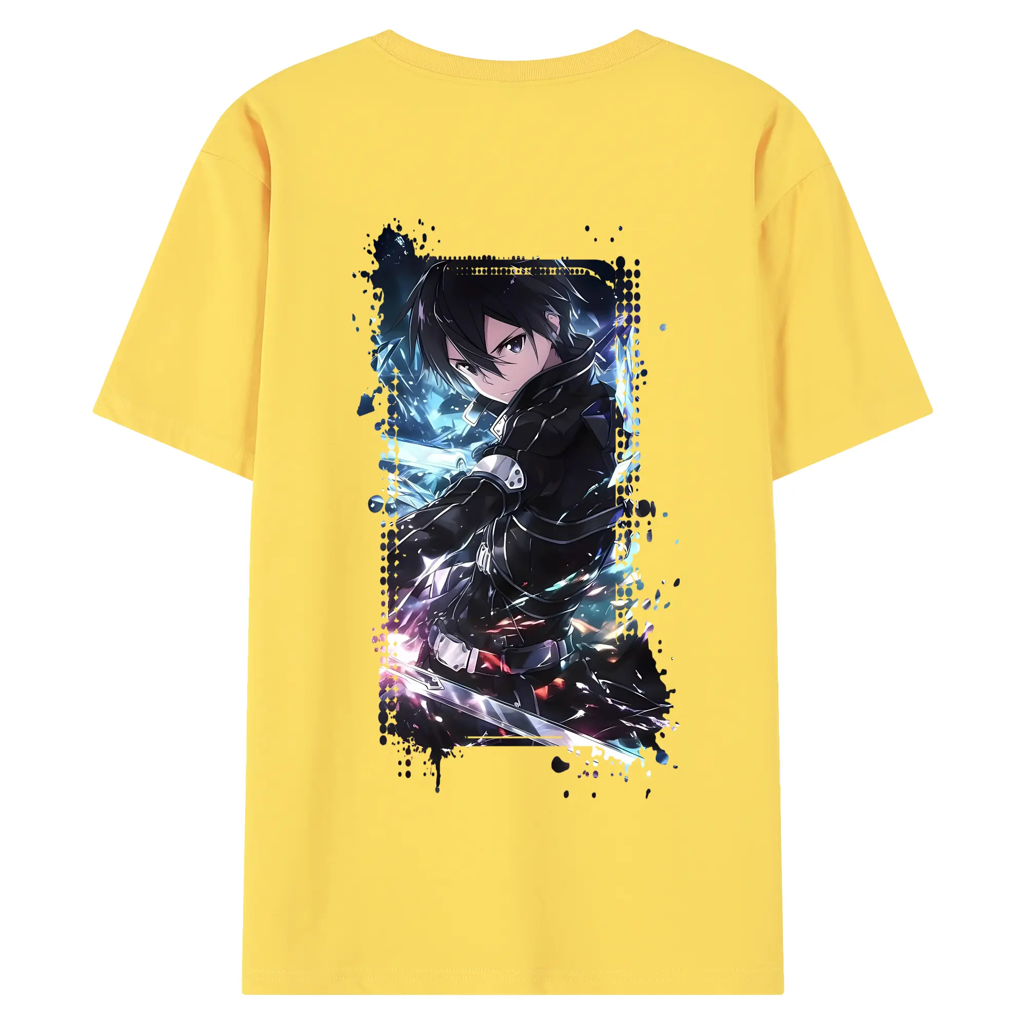 ソードアートオンライン グッズ キリト - 綿100% 半袖Tシャツ ・ フロントプリント ・ 快適 通気性 ・ 日常使い 散歩 スポーツ用