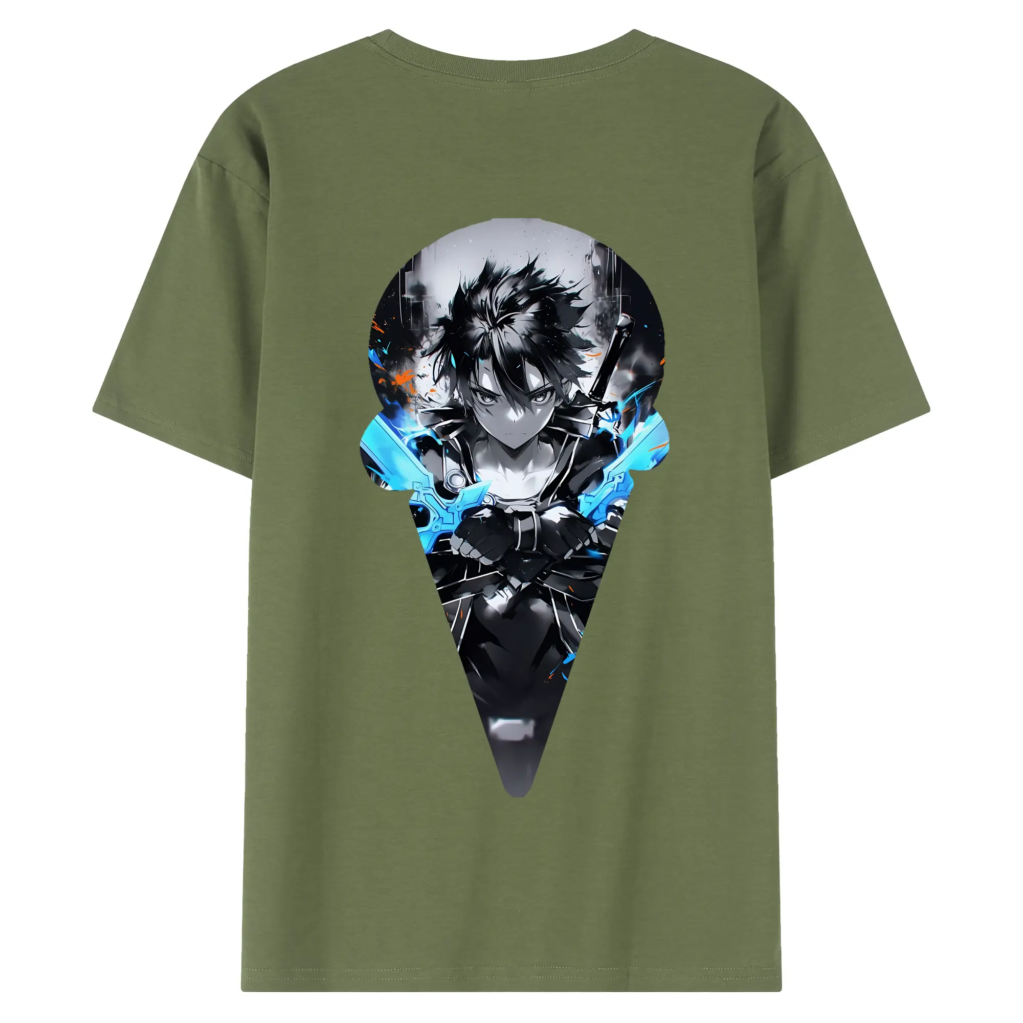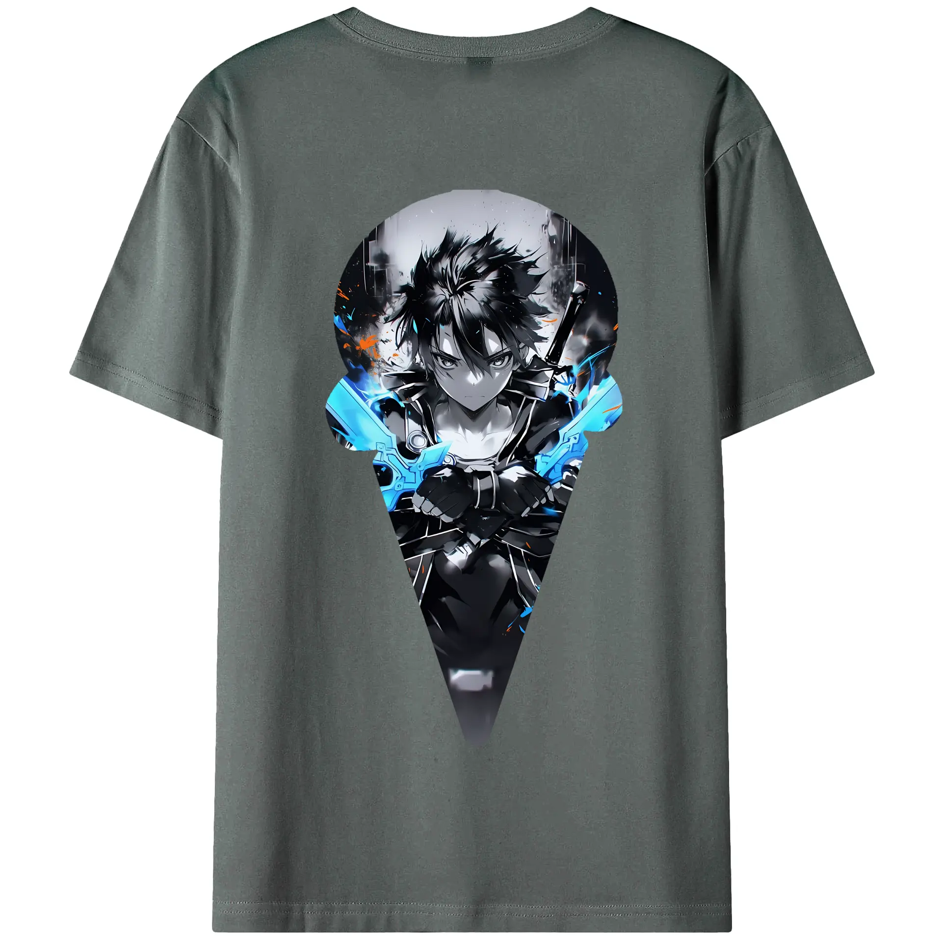 ソードアートオンライン グッズ キリト - 綿100% 半袖Tシャツ ・ フロントプリント ・ 快適 通気性 ・ 日常使い 散歩 スポーツ用