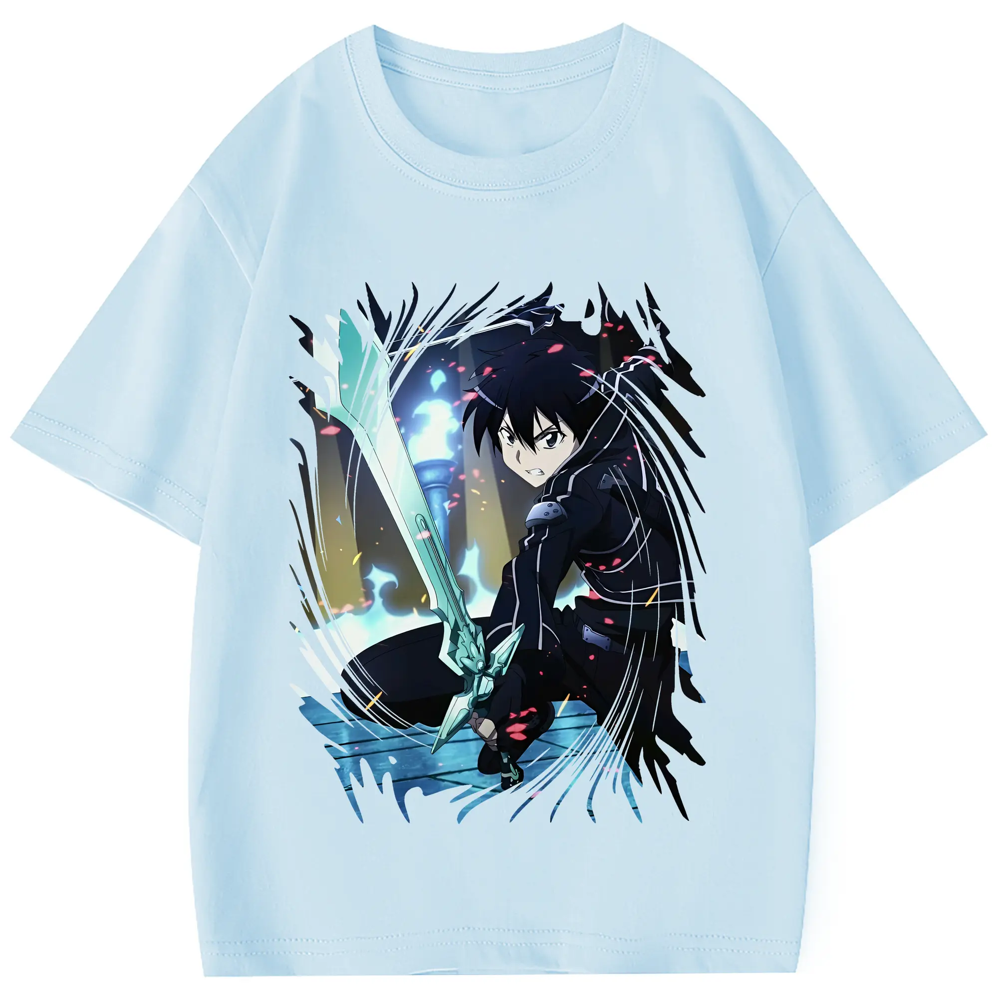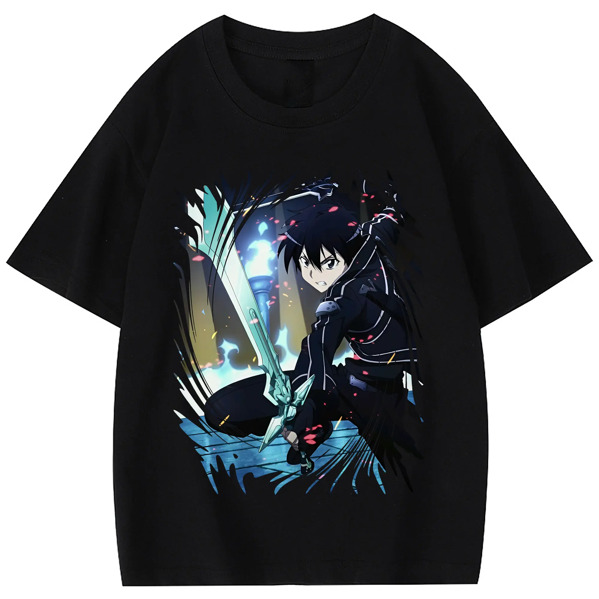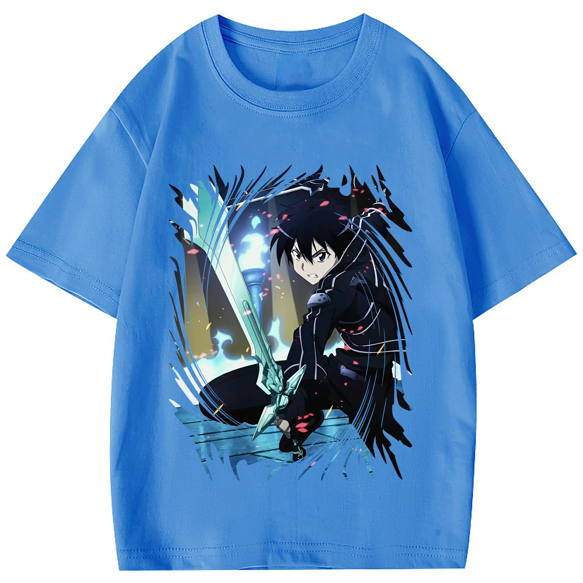 ソードアートオンライン グッズ キリト - 綿100% 半袖Tシャツ ・ フロントプリント ・ 快適 通気性 ・ 日常使い 散歩 スポーツ用
