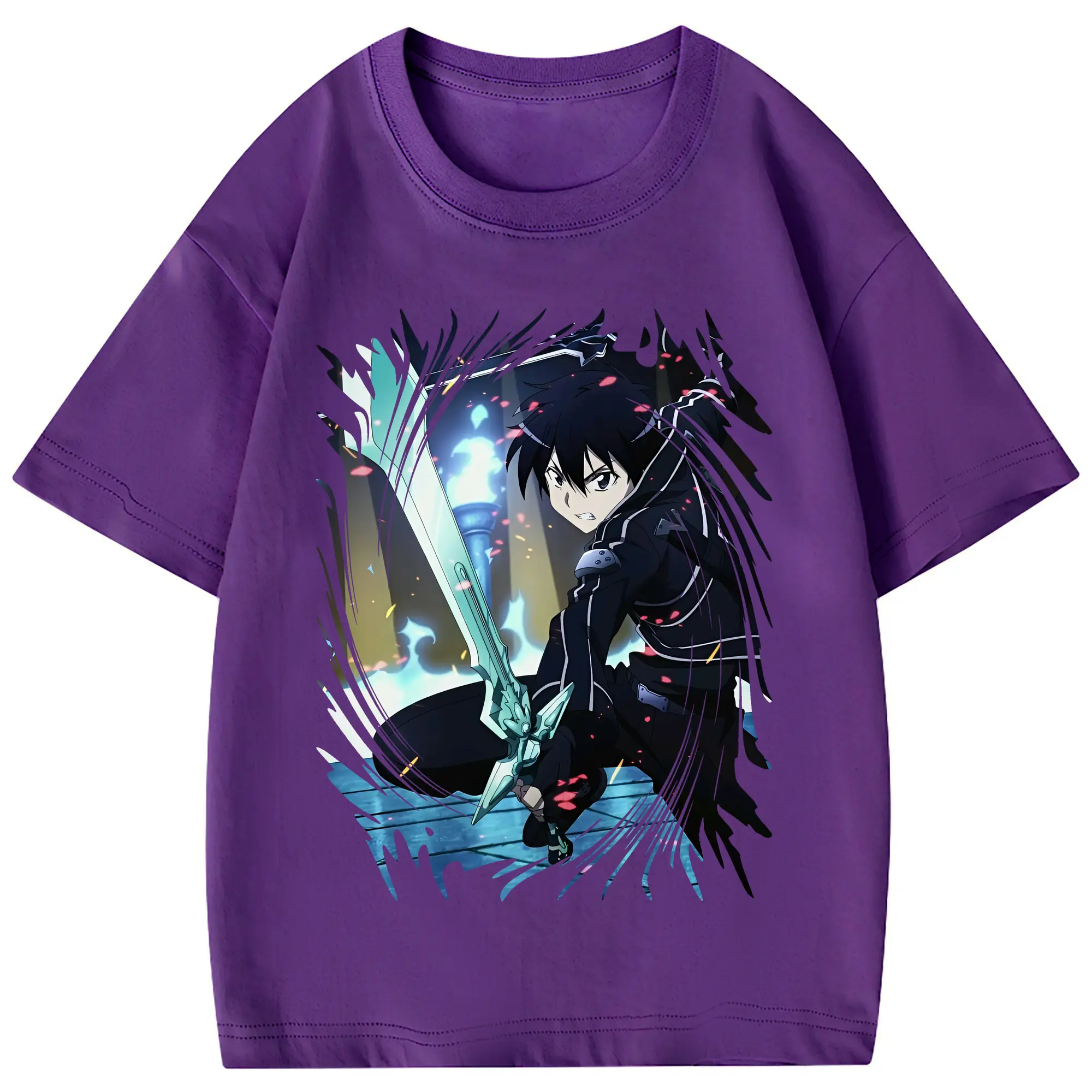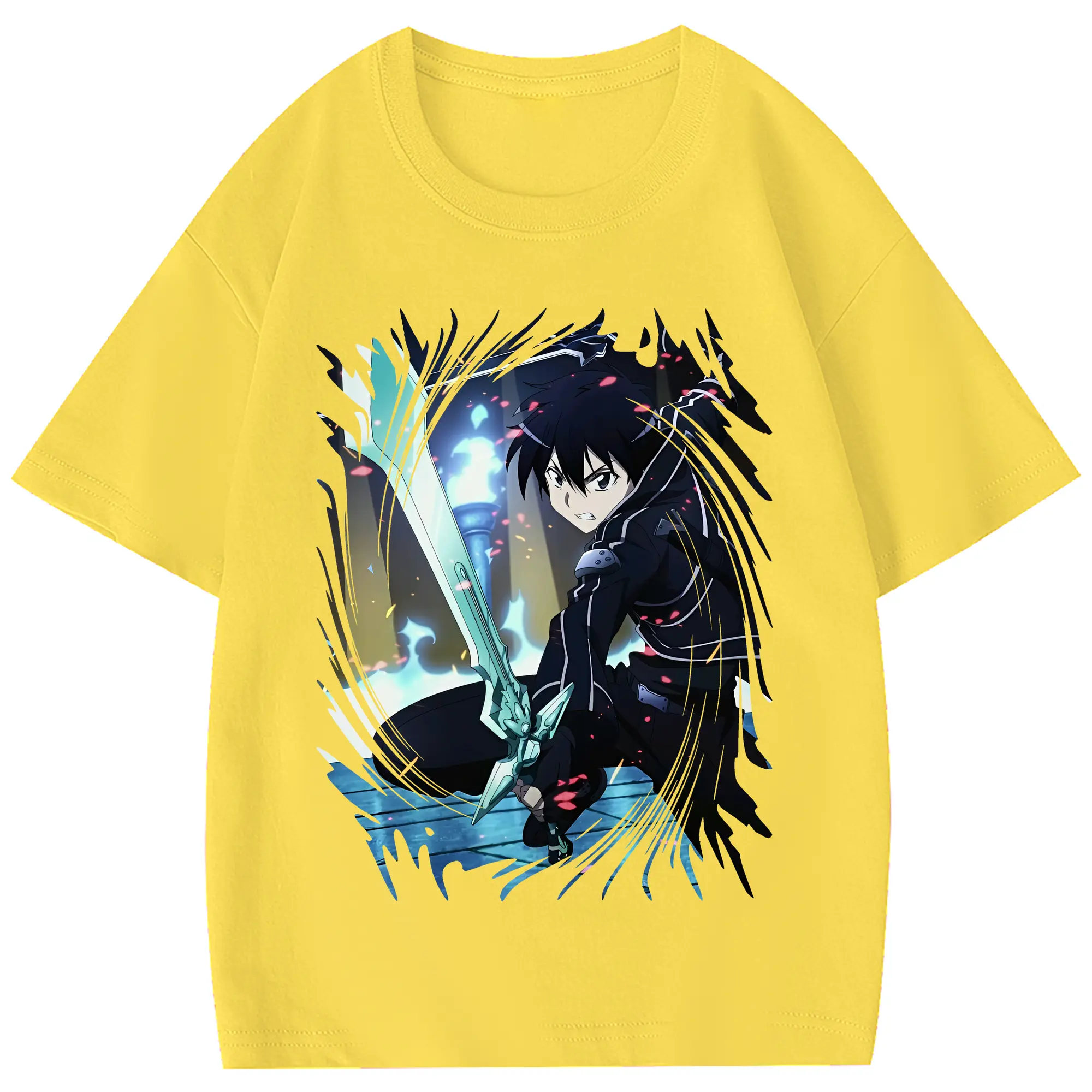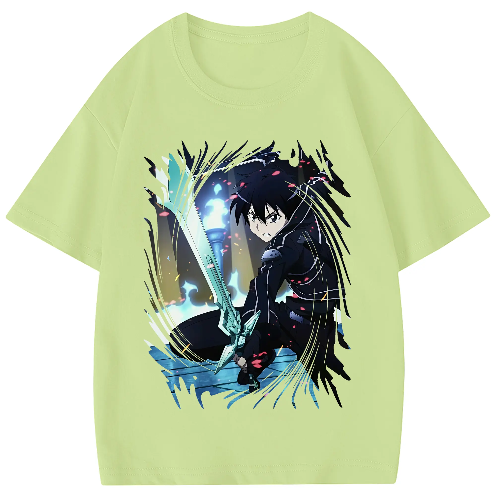 ソードアートオンライン グッズ キリト - 綿100% 半袖Tシャツ ・ フロントプリント ・ 快適 通気性 ・ 日常使い 散歩 スポーツ用