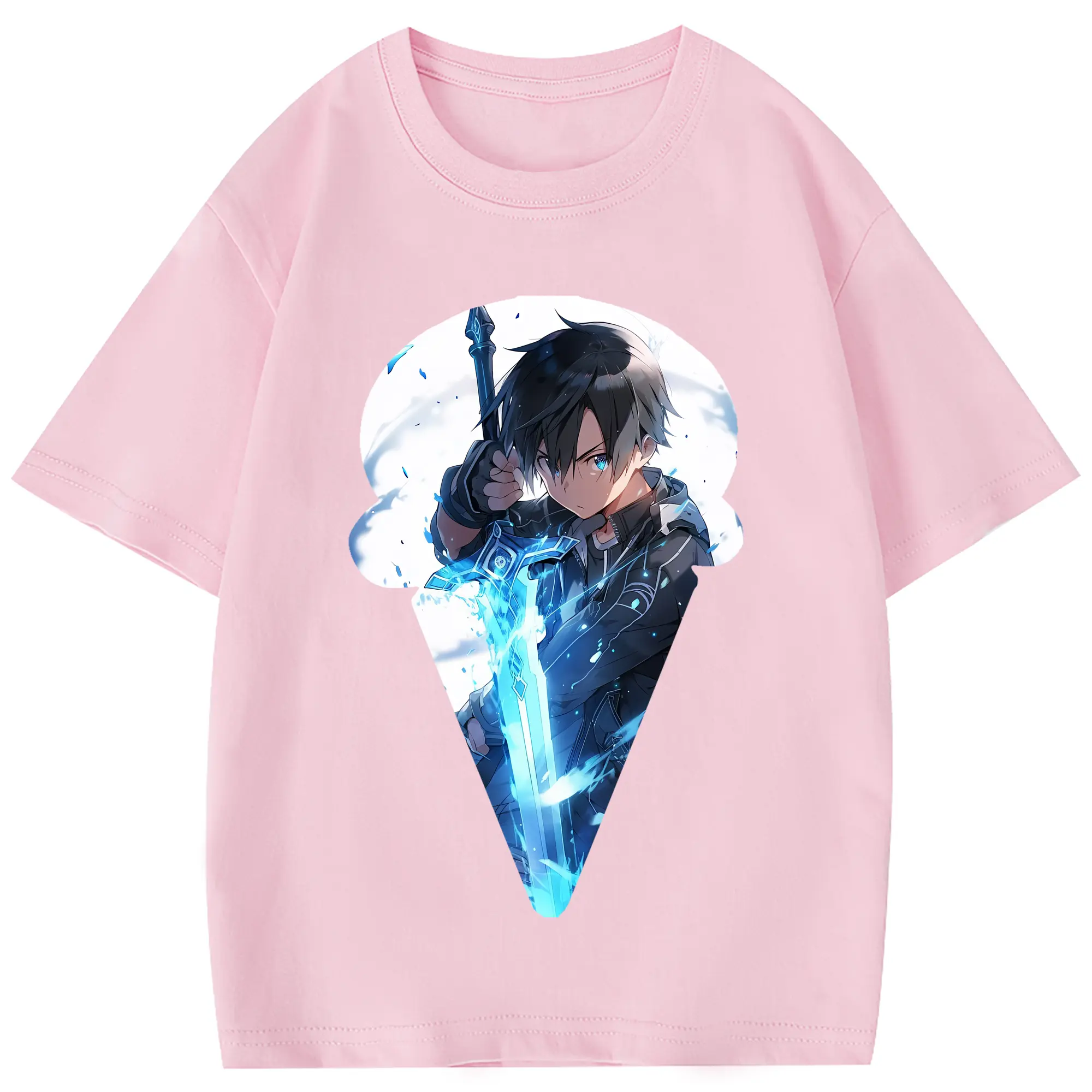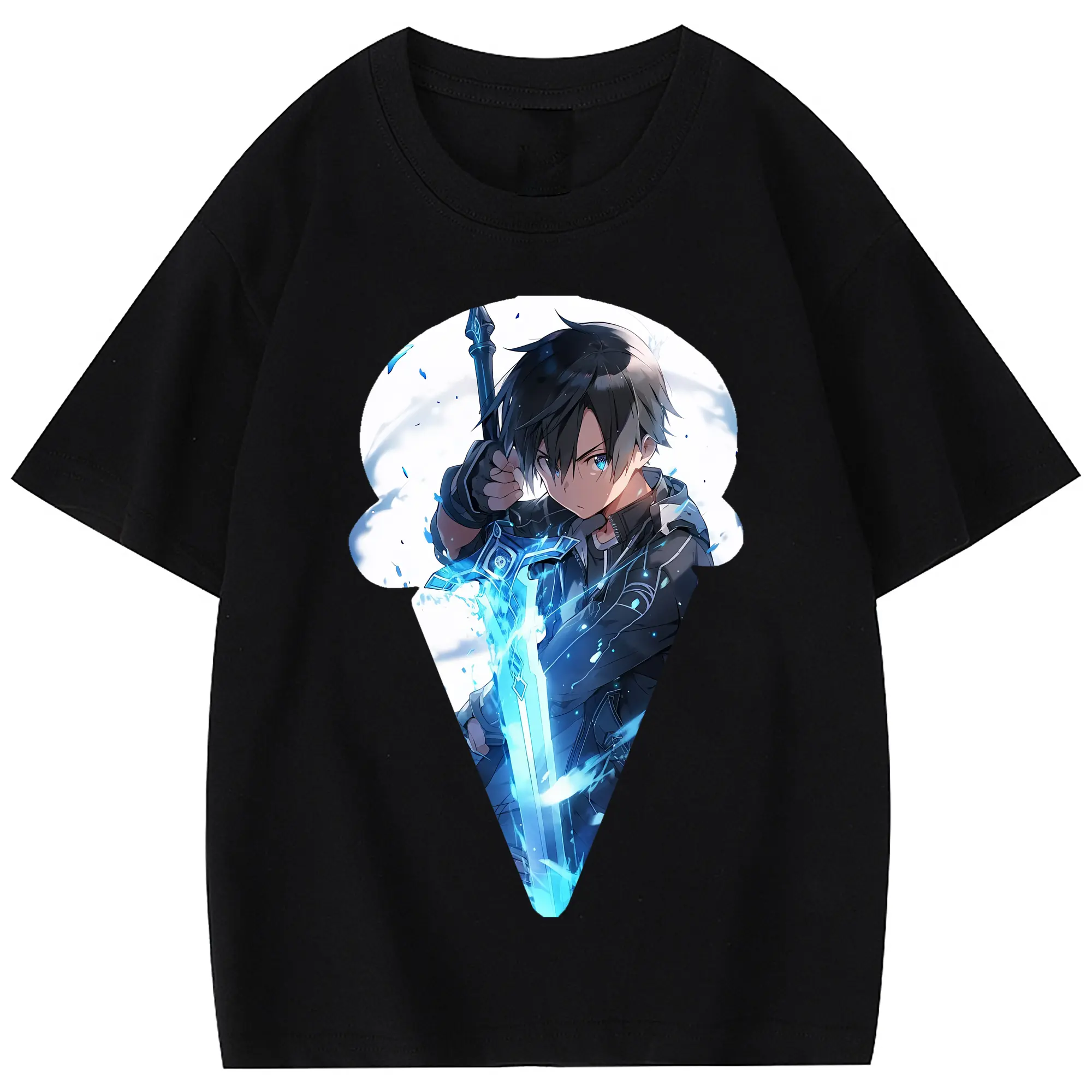ソードアートオンライン グッズ キリト - 綿100% 半袖Tシャツ ・ フロントプリント ・ 快適 通気性 ・ 日常使い 散歩 スポーツ用