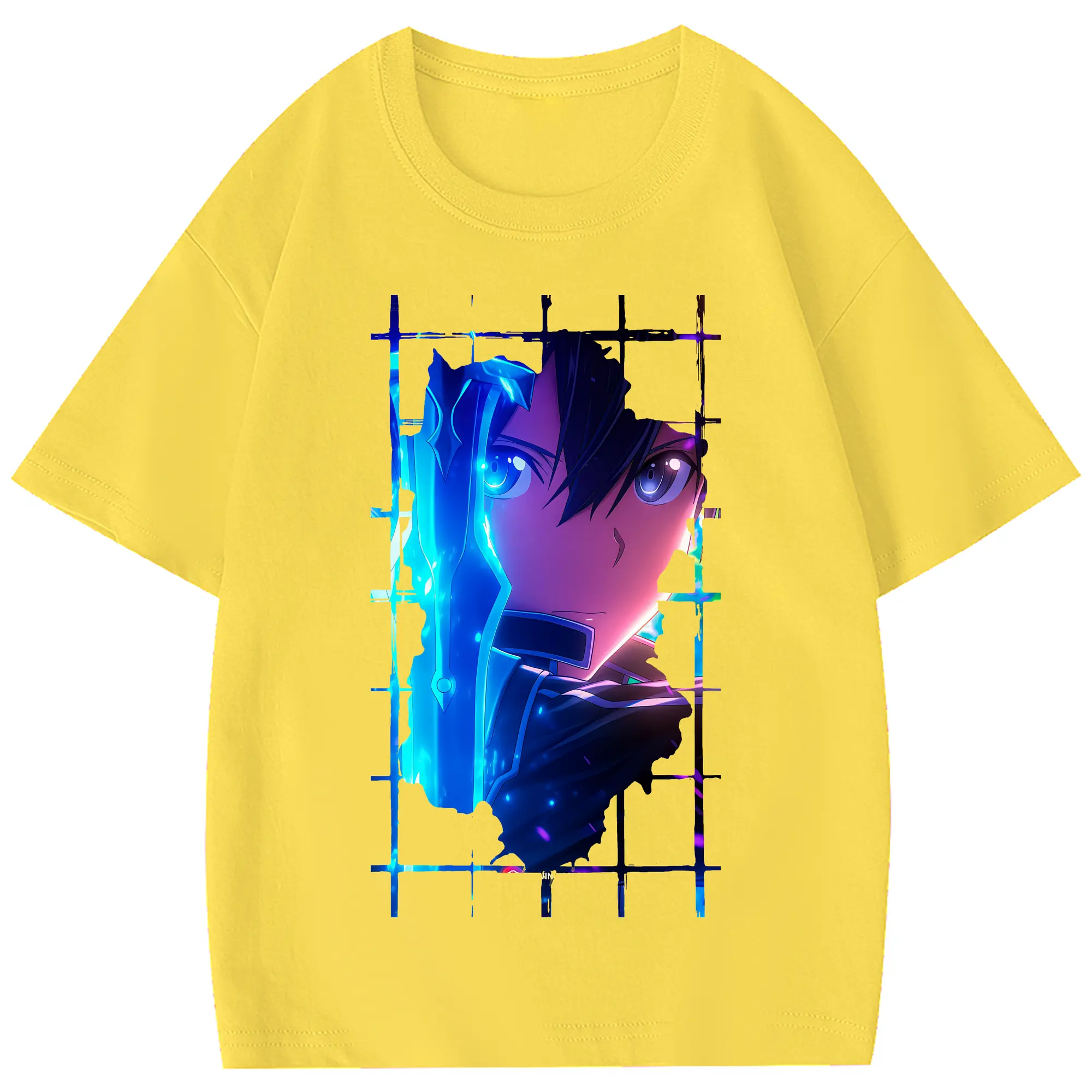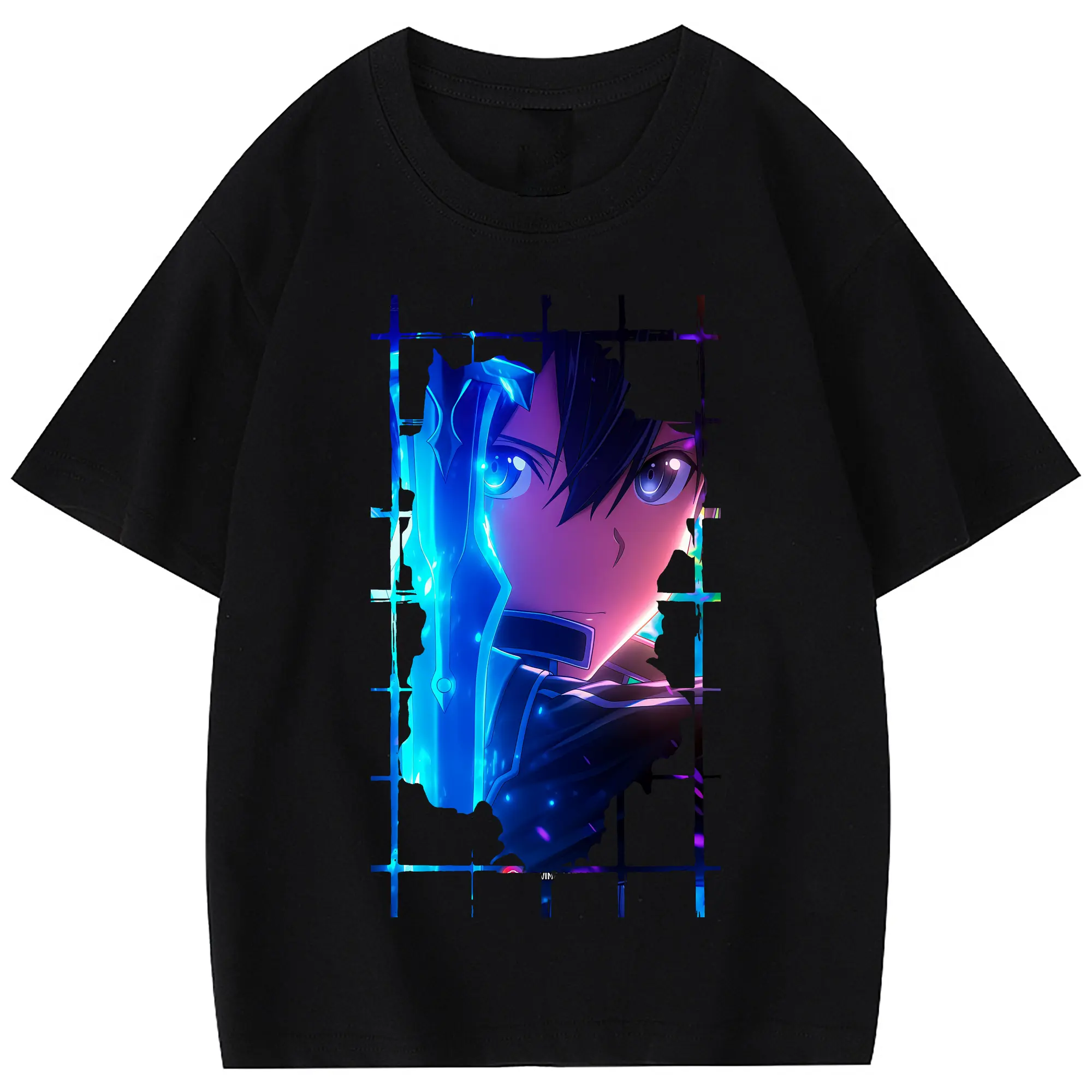 ソードアートオンライン グッズ キリト - 綿100% 半袖Tシャツ ・ フロントプリント ・ 快適 通気性 ・ 日常使い 散歩 スポーツ用