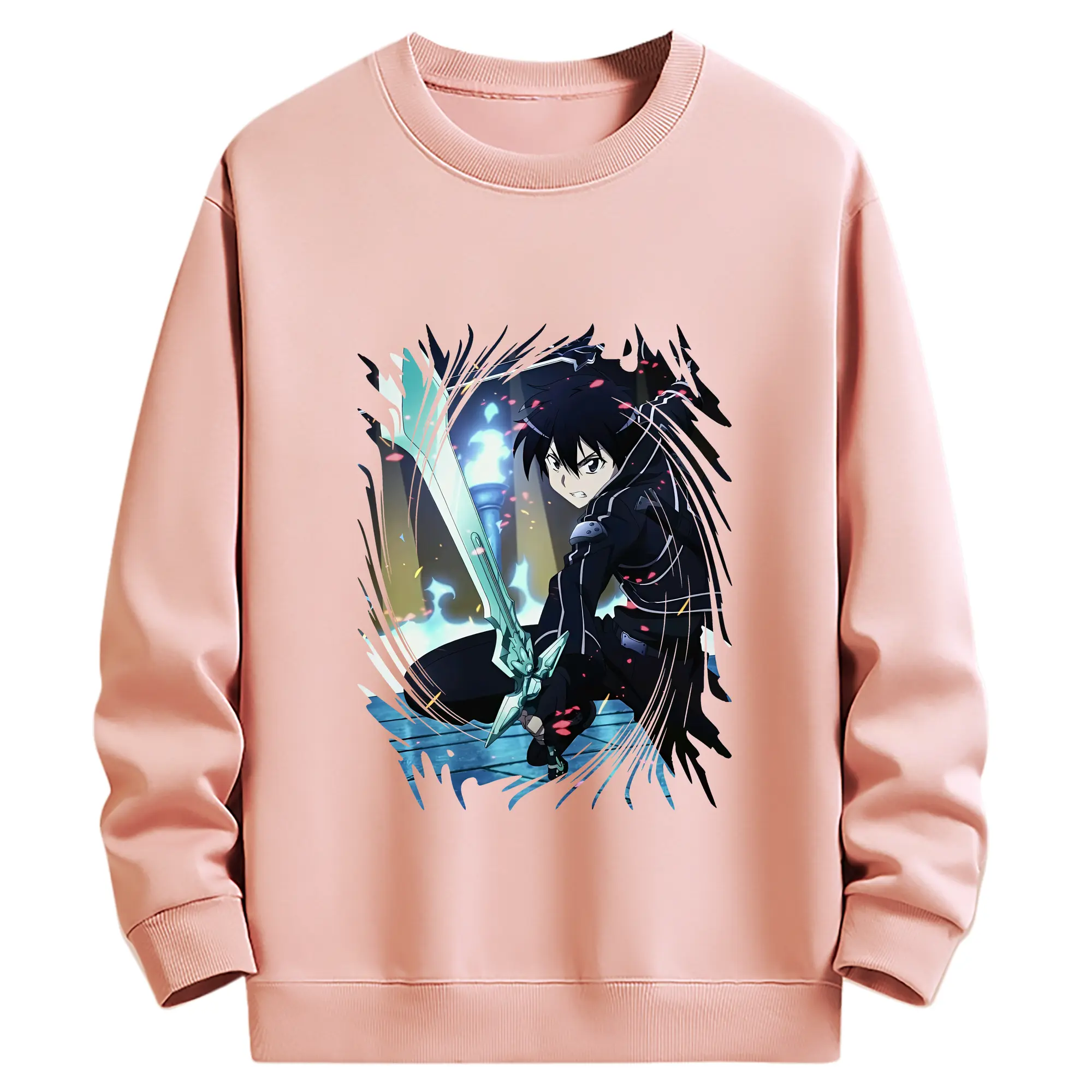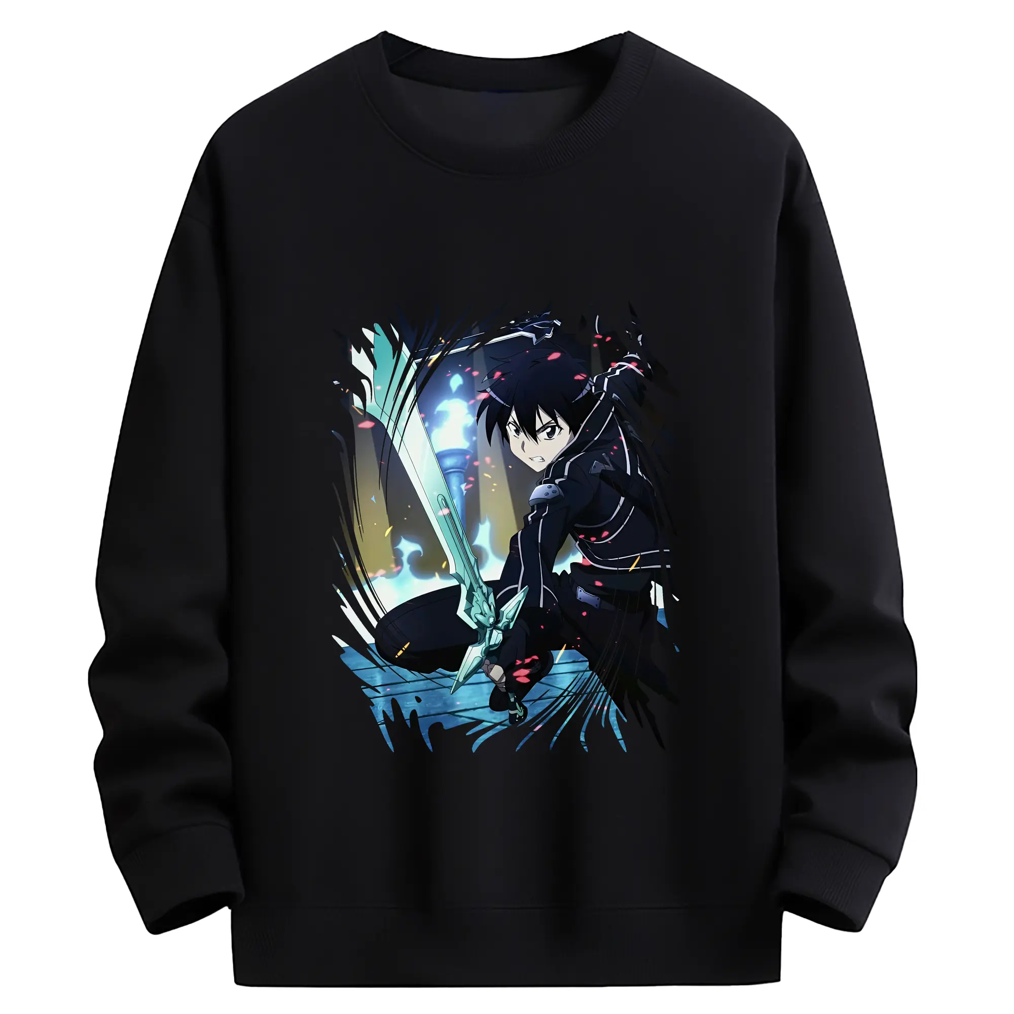 ソードアートオンライン グッズ キリト - 薄手 クルーネック スウェット 裏毛260g · ポリエステル 春秋向け カジュアル 男女兼用 · トレーナー デイリー スポーツ 散歩に最適