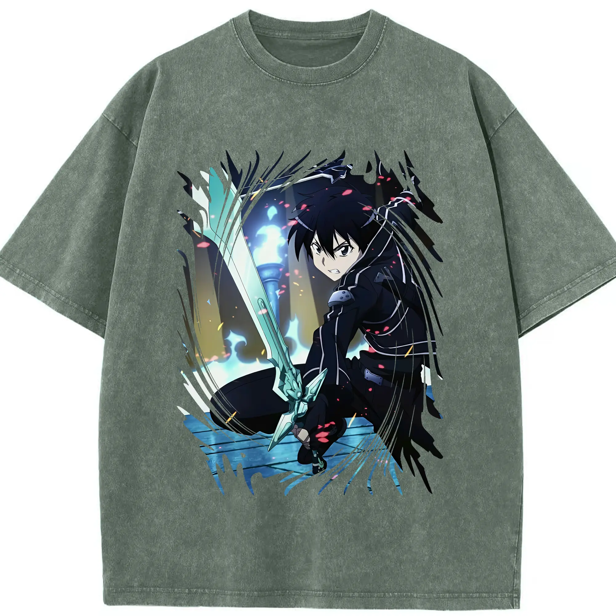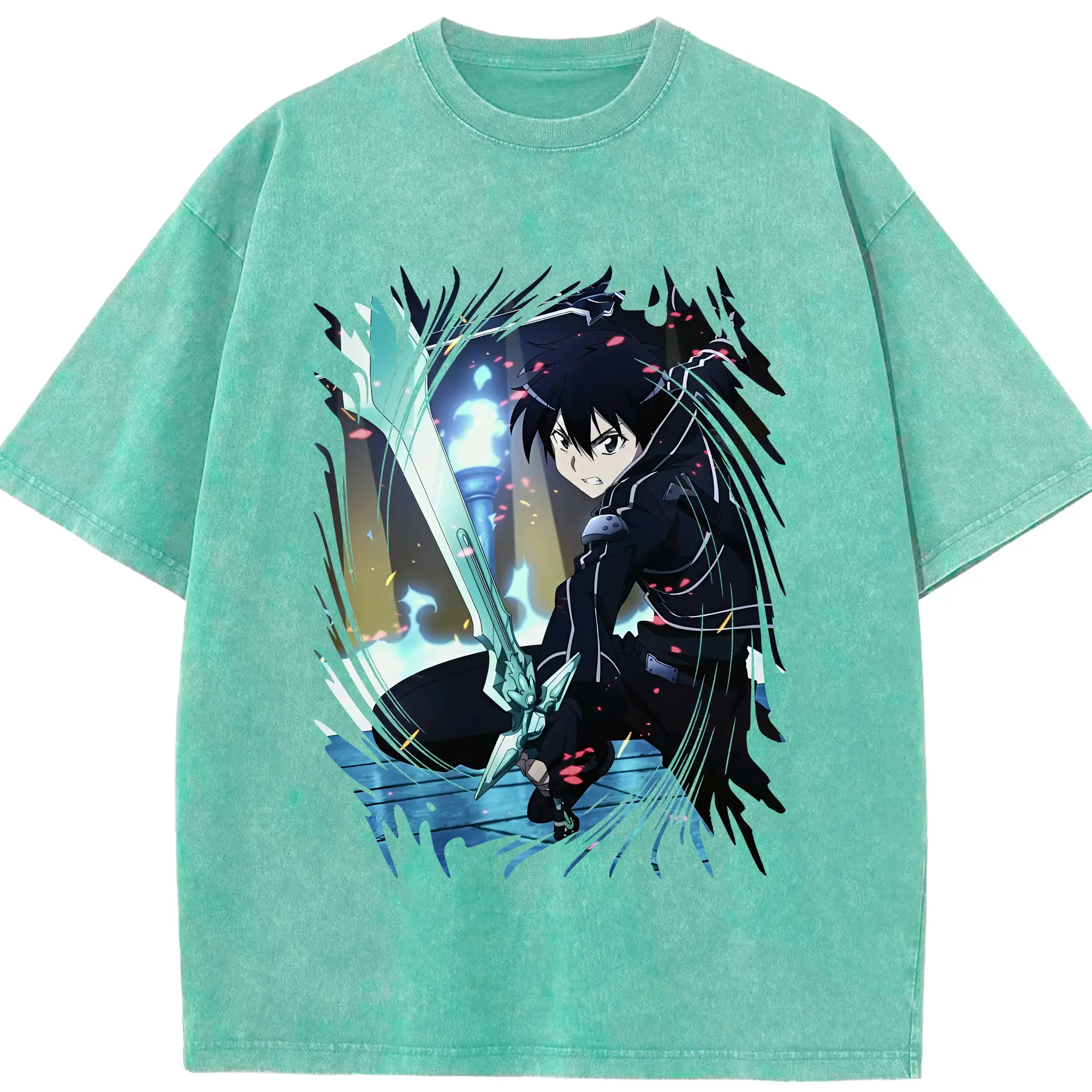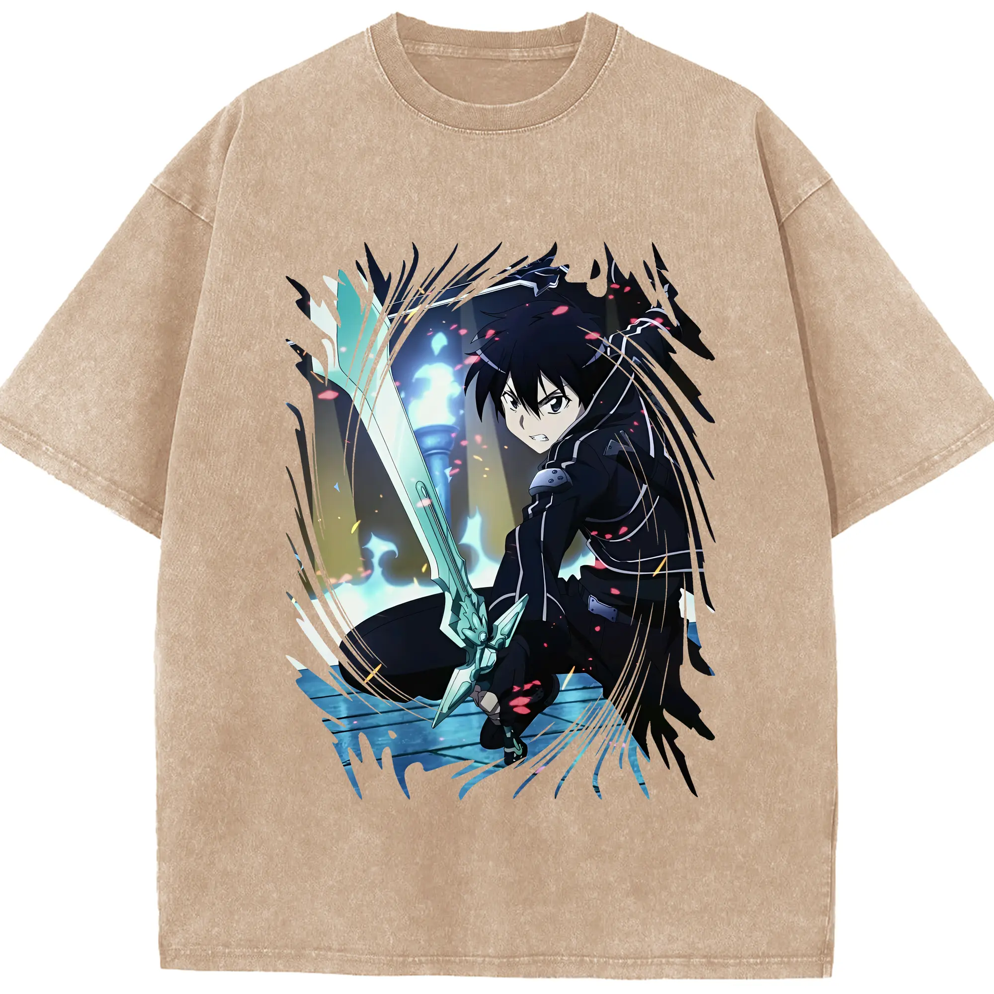 ソードアートオンライン グッズ キリト - 綿100% ヴィンテージ風 半袖Tシャツ ・ 背面プリント ・ 柔らか肌触り ・ 通気性 快適 ・ スポーツ カジュアル 外出用
