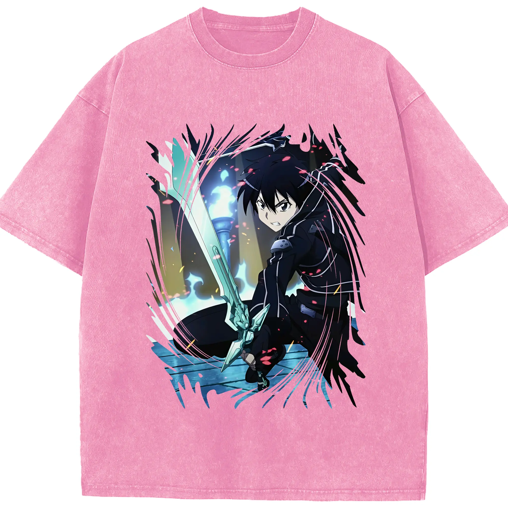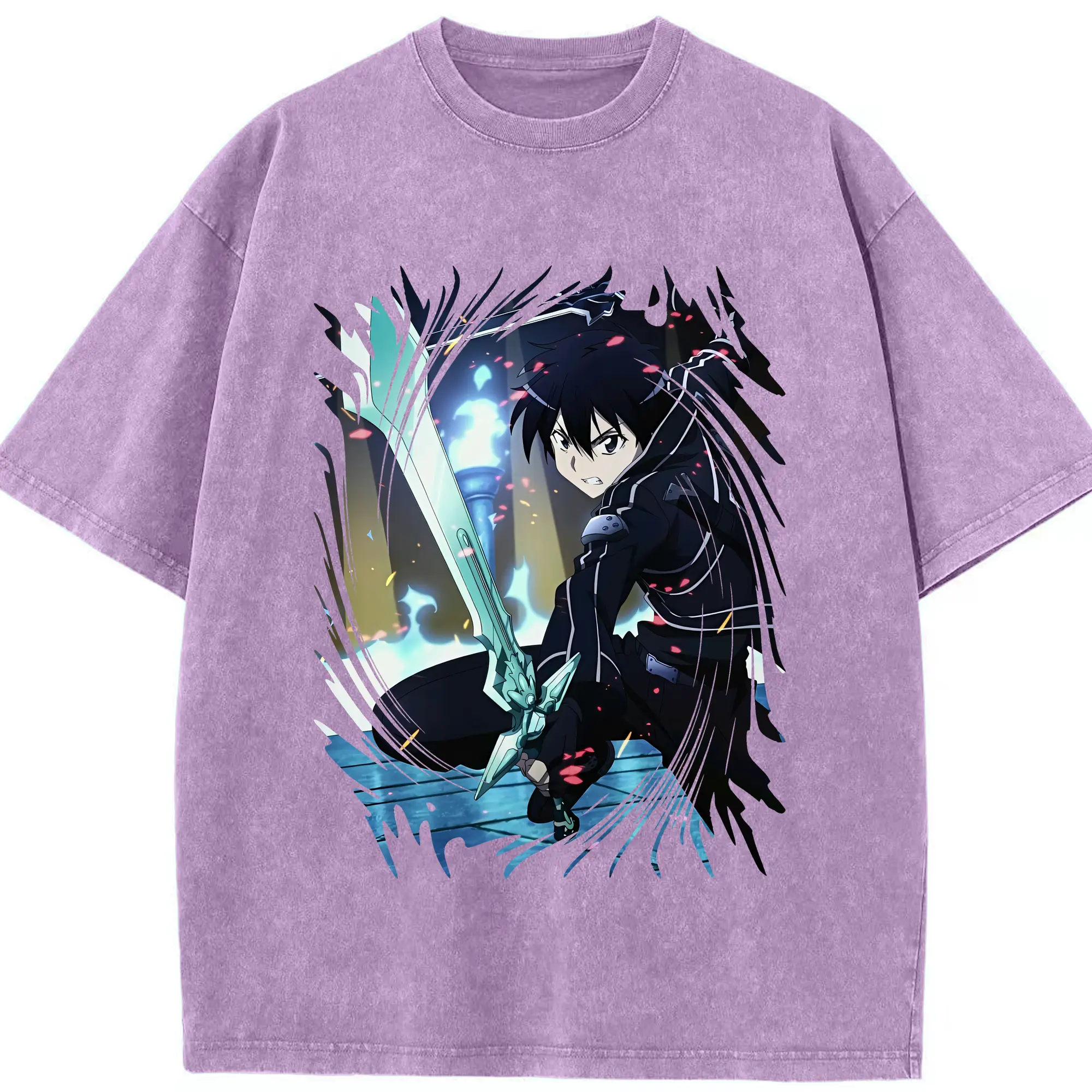 ソードアートオンライン グッズ キリト - 綿100% 半袖Tシャツ ・ フロントプリント ・ 快適 通気性 ・ 日常使い 散歩 スポーツ用